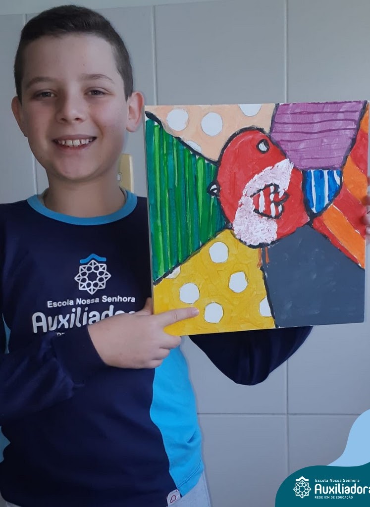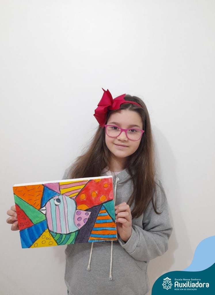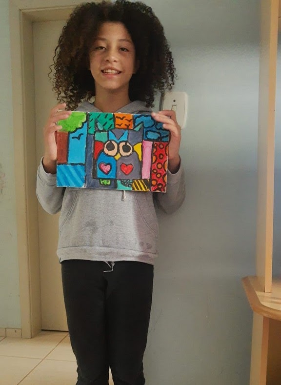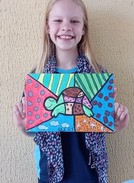 Cores, linhas, formas e muita criatividade são as principais características do artista Romero Britto. Os alunos não pouparam esforços para deixar suas obras surpreendentes e nos presenteiam com esses lindos registros.