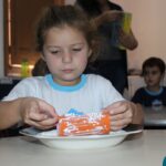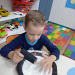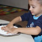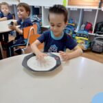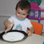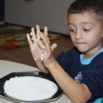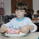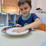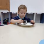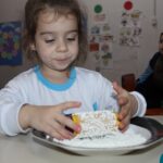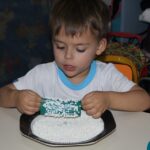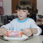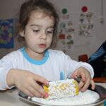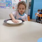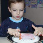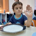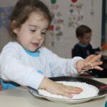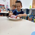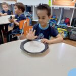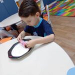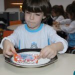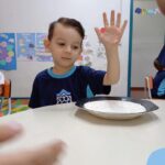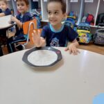 O Maternal 2 C, em registro a história “Maria vai com as outras”, construiu suas “Marias”. Essa atividade foi desenvolvida com o intuito de trabalhar a concentração, motricidade fina e o sensorial das crianças, que se divertiram muito com a colagem das bolinhas de sagu.