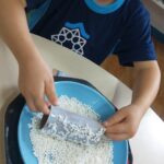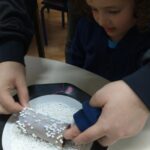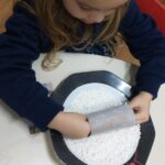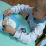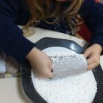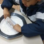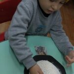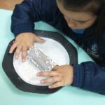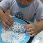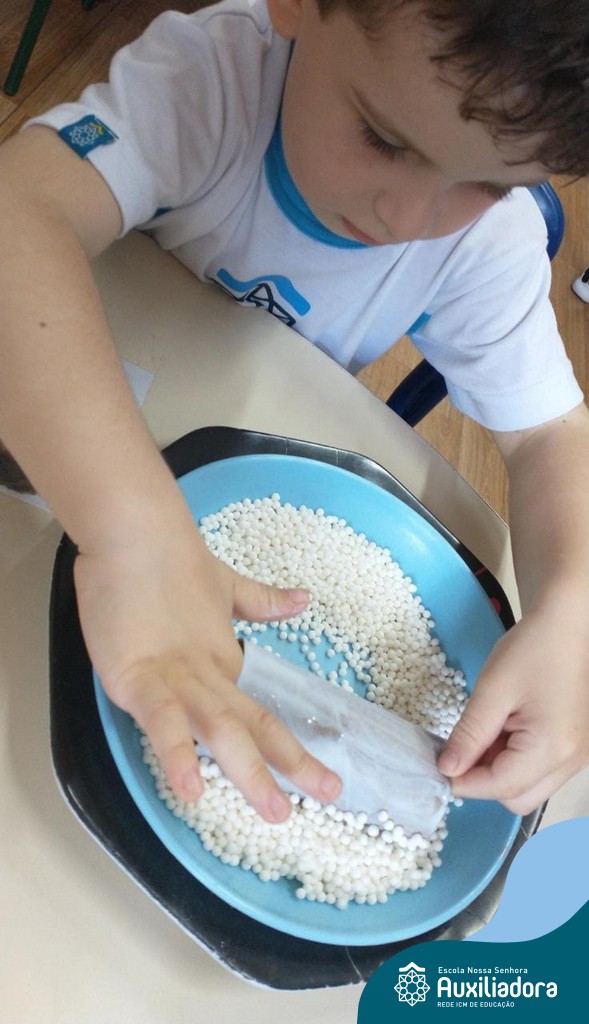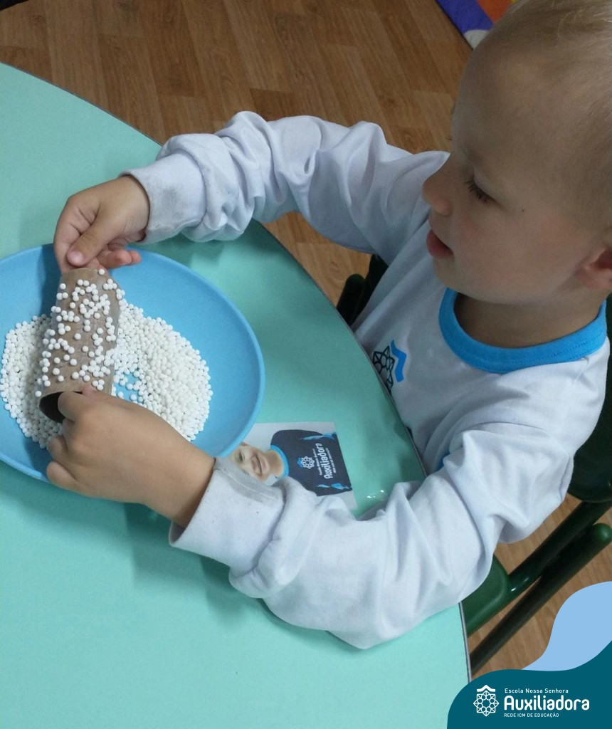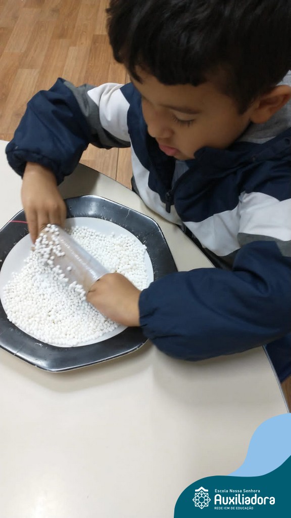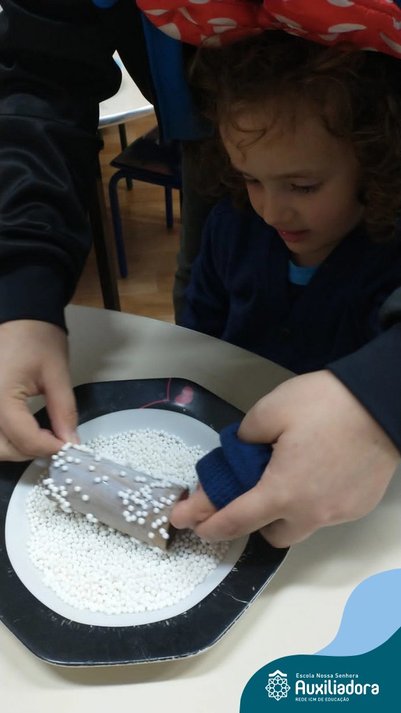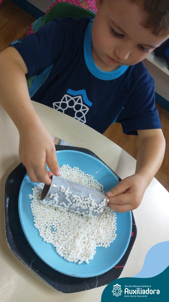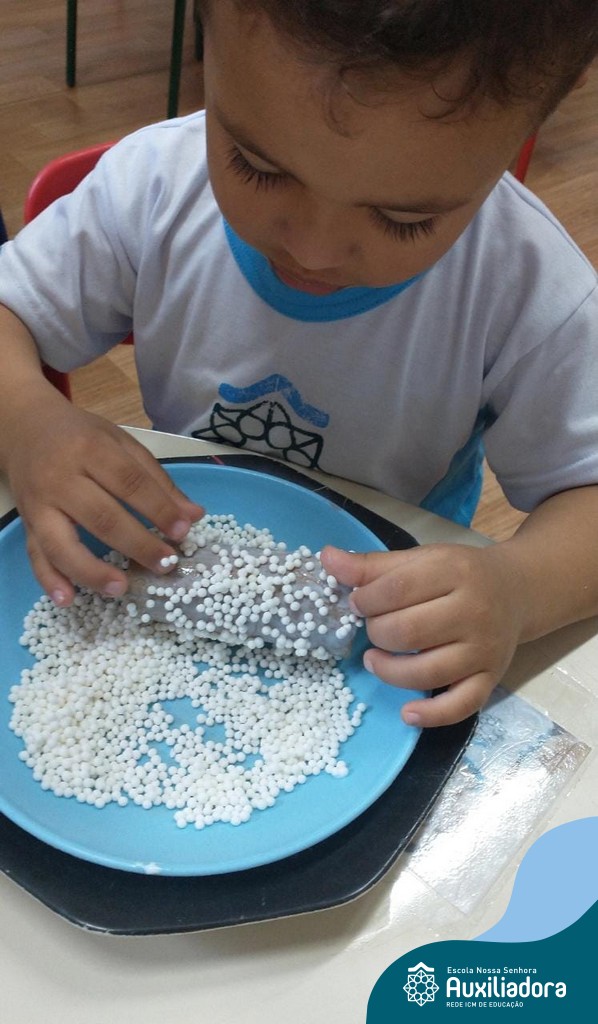 O Maternal 2 C, em registro a história “Maria vai com as outras”, construiu suas “Marias”. Essa atividade foi desenvolvida com o intuito de trabalhar a concentração, motricidade fina e o sensorial das crianças, que se divertiram muito com a colagem das bolinhas de sagu.