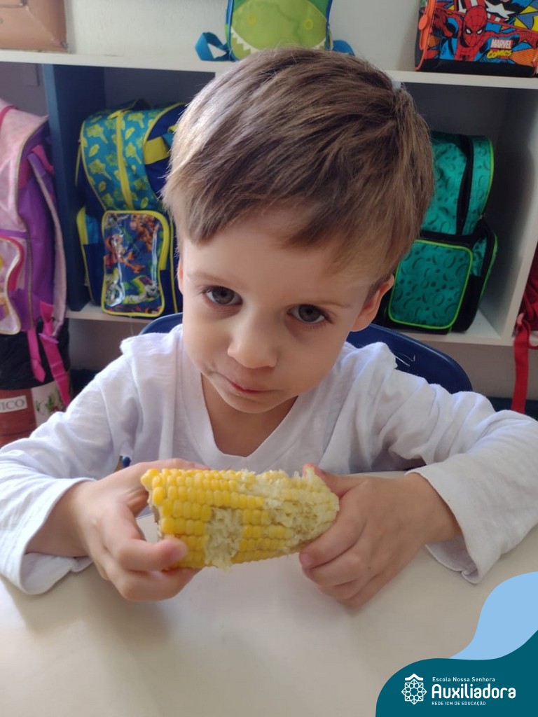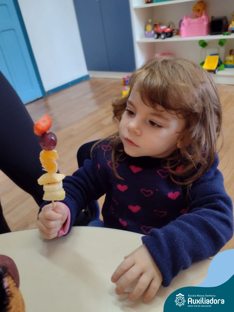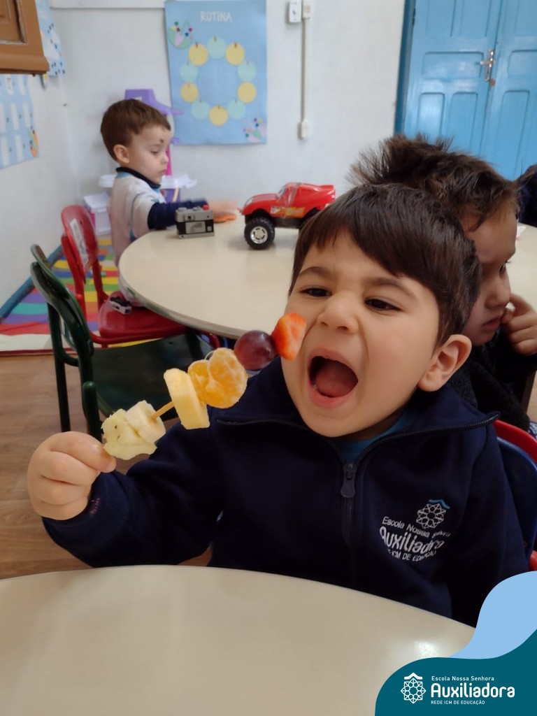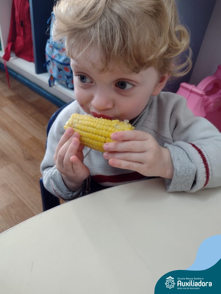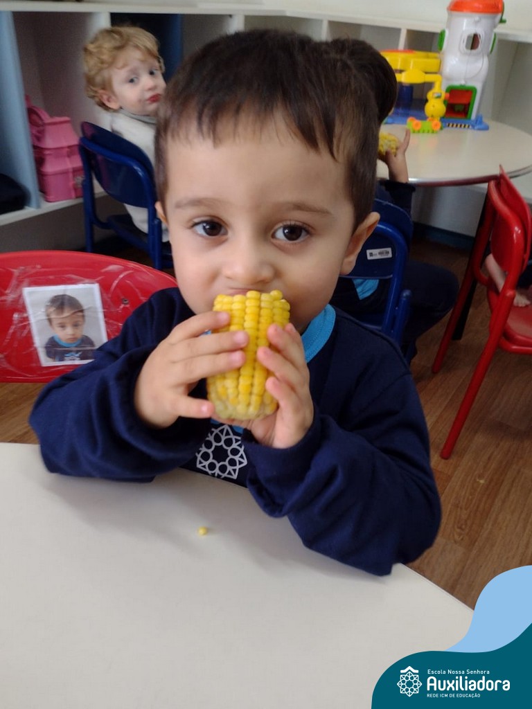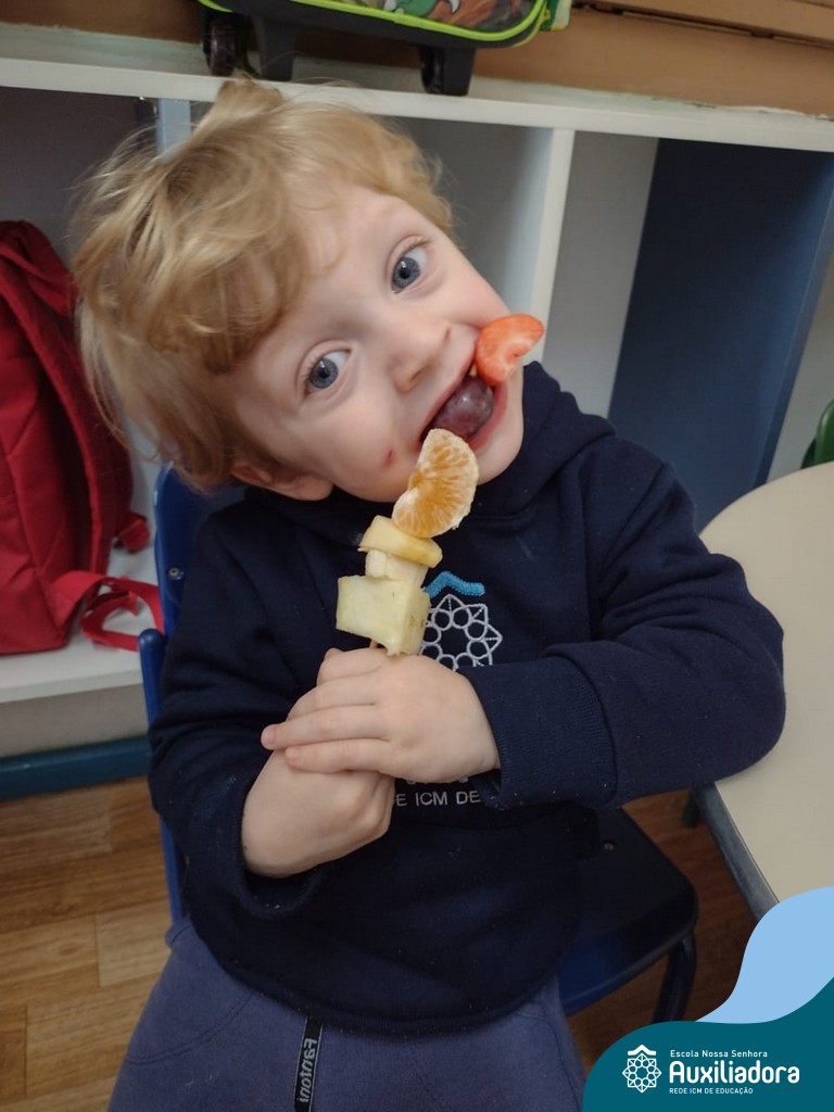 A turma do maternal 1 B trabalhou neste mês sobre a importância de mantermos uma alimentação saudável. A turminha desenvolveu diversas atividades interessantes voltadas a partir das histórias “A Cesta da Dona Maricota” e a “Galinha Ruiva”. Dentre as atividades destacamos: a confecção da Cesta da Dona Maricota, a degustação de milho verde e o espetinho de fruta. Confira as fotos!
