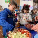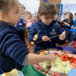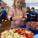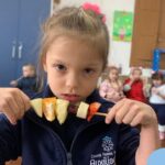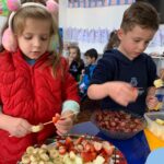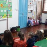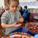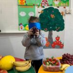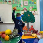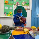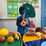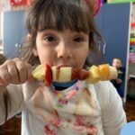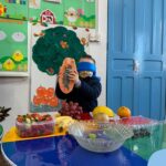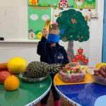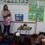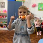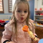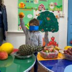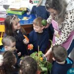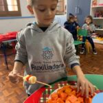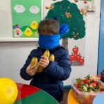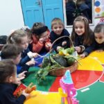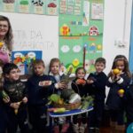 Alimentação Saudável. Que delícia! As crianças foram recepcionadas com uma novidade: A Cesta da Dona Maricota. A partir do contato direto com frutas, legumes e verduras as crianças puderam falar sobre seus gostos particulares e provar outros sabores que são importantes para nossa saúde!