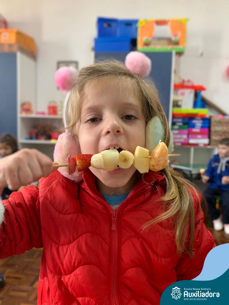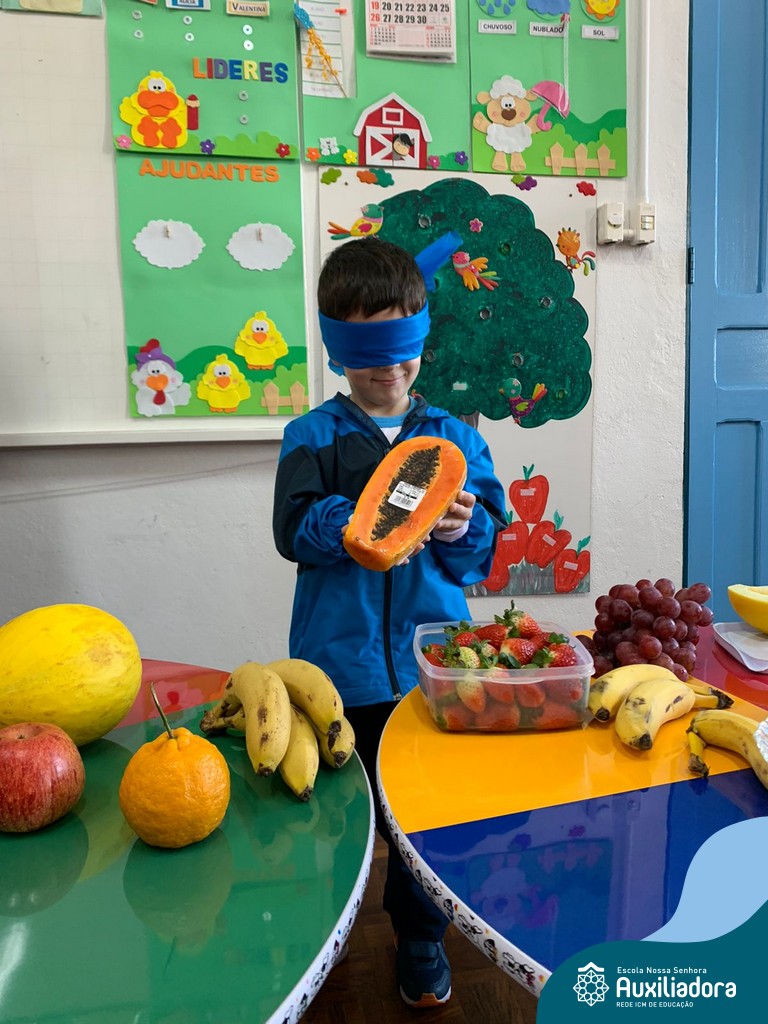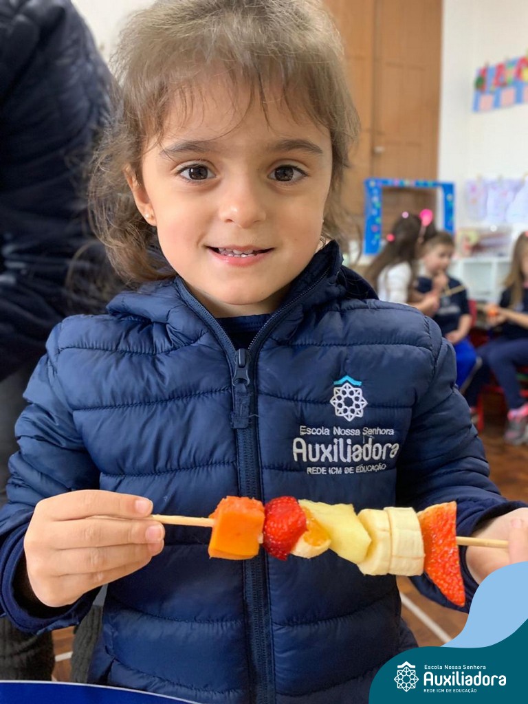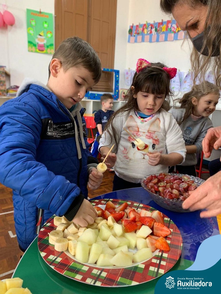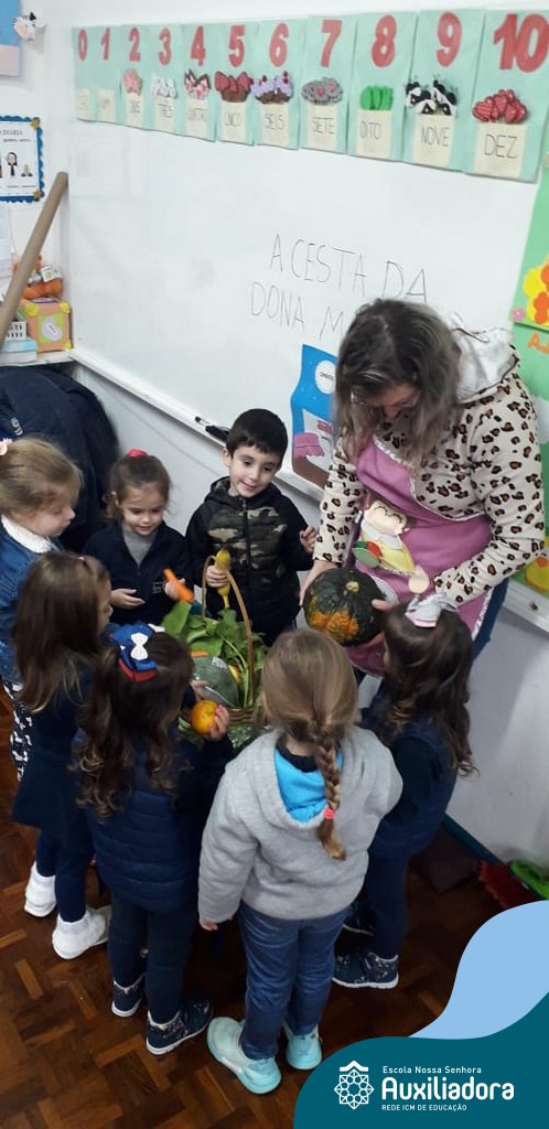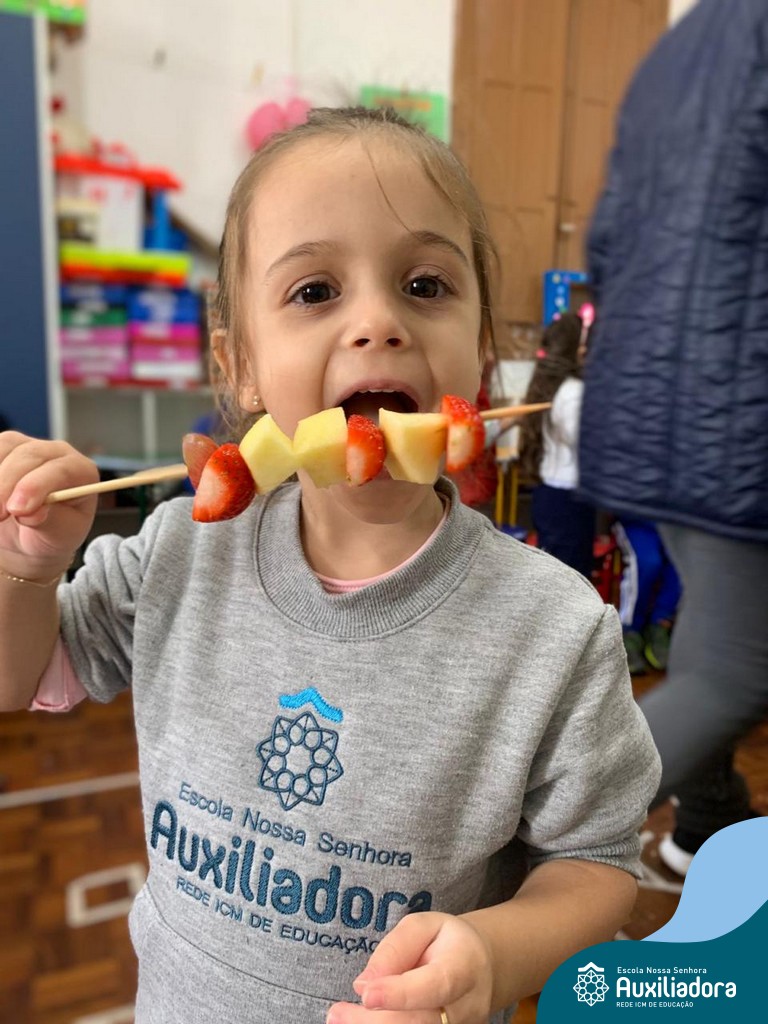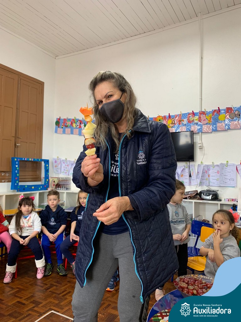Alimentação Saudável. Que delícia! As crianças foram recepcionadas com uma novidade: A Cesta da Dona Maricota. A partir do contato direto com frutas, legumes e verduras as crianças puderam falar sobre seus gostos particulares e provar outros sabores que são importantes para nossa saúde!