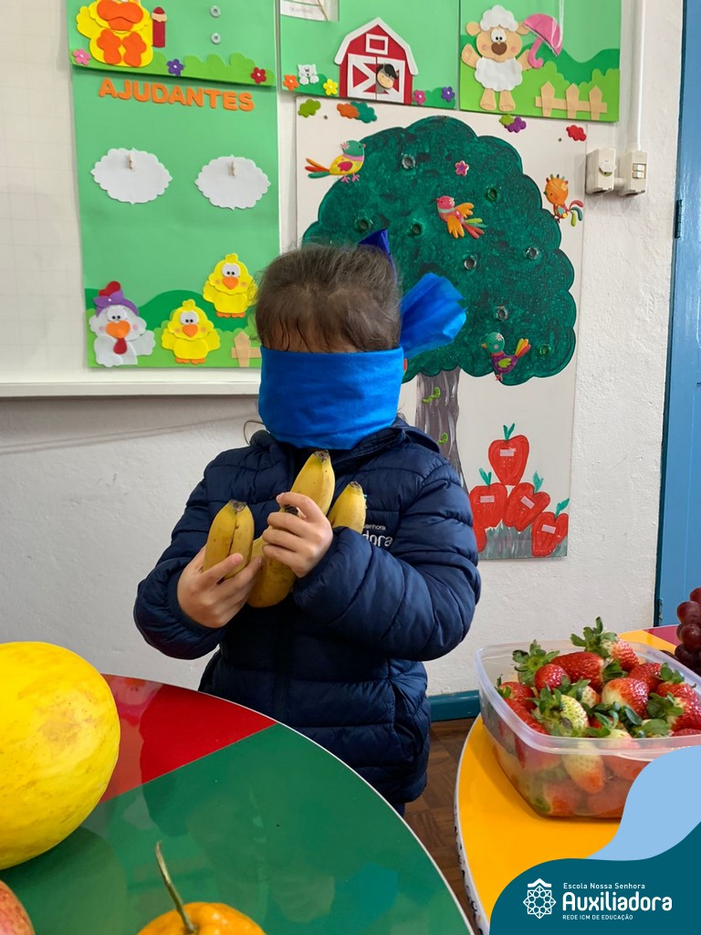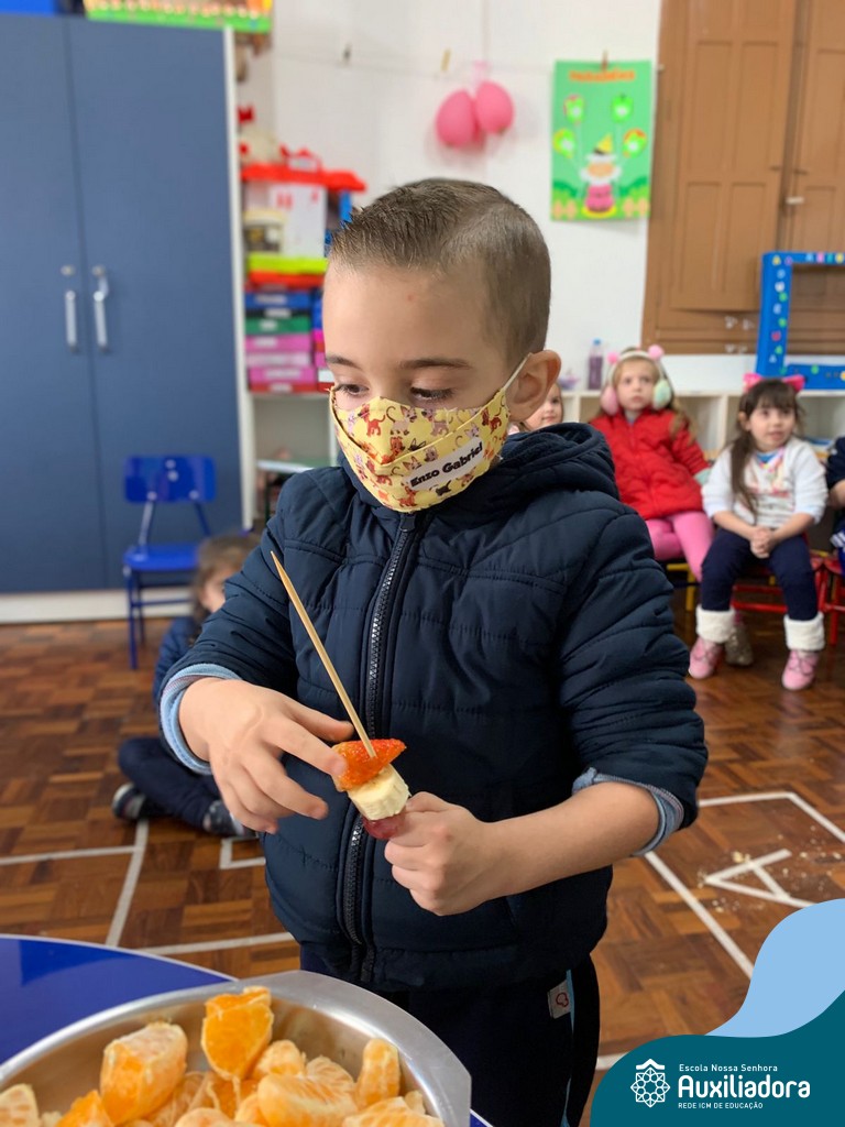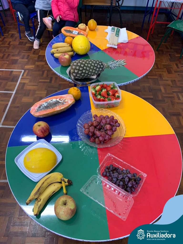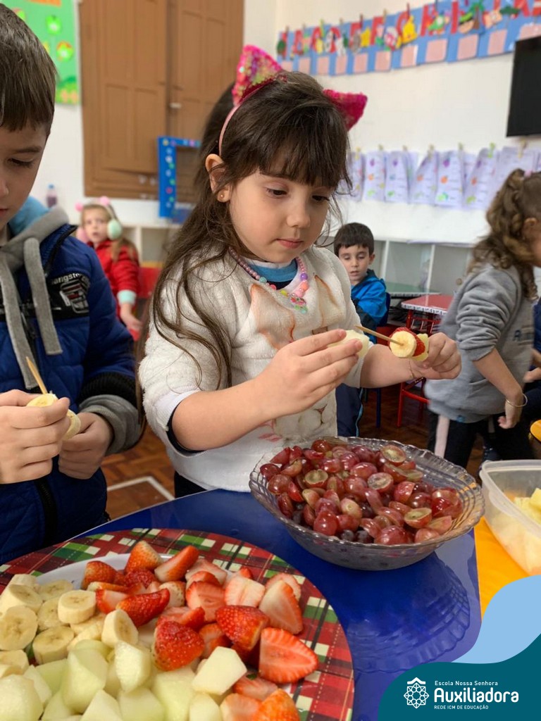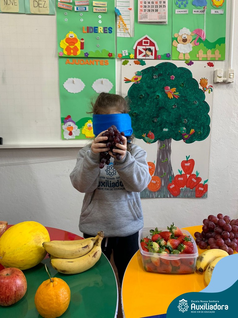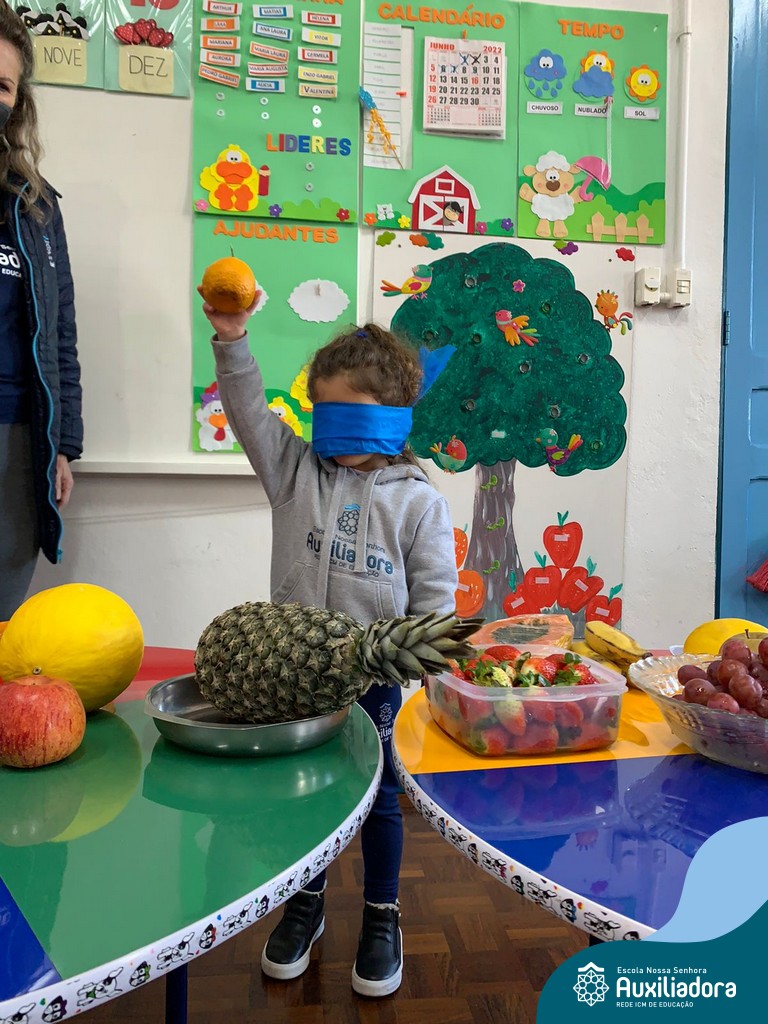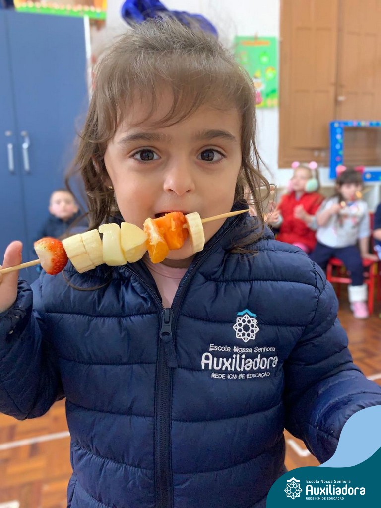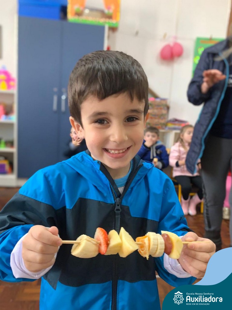 Alimentação Saudável. Que delícia! As crianças foram recepcionadas com uma novidade: A Cesta da Dona Maricota. A partir do contato direto com frutas, legumes e verduras as crianças puderam falar sobre seus gostos particulares e provar outros sabores que são importantes para nossa saúde!