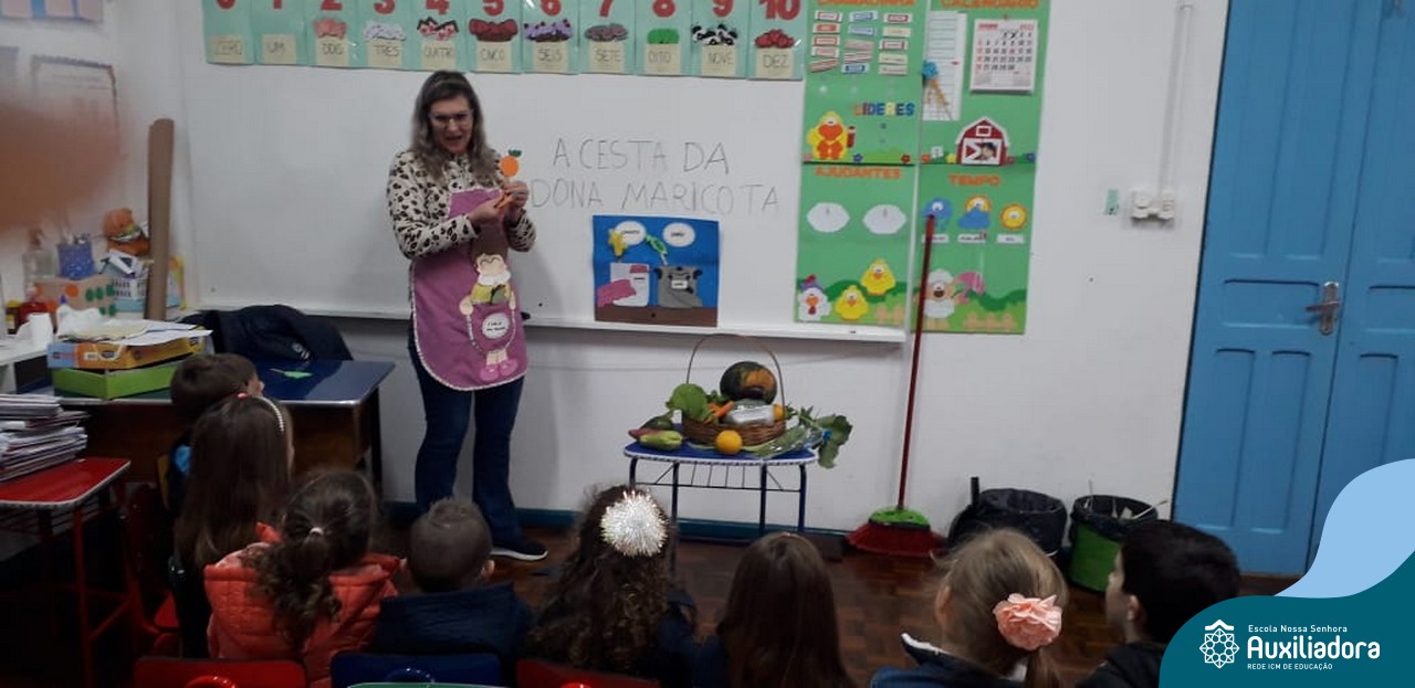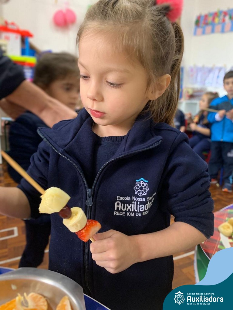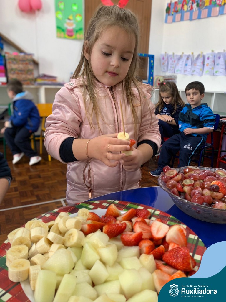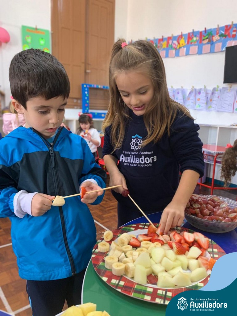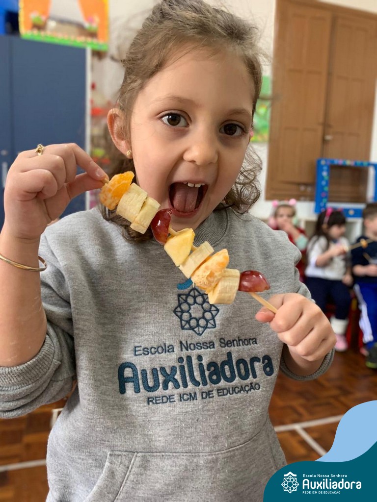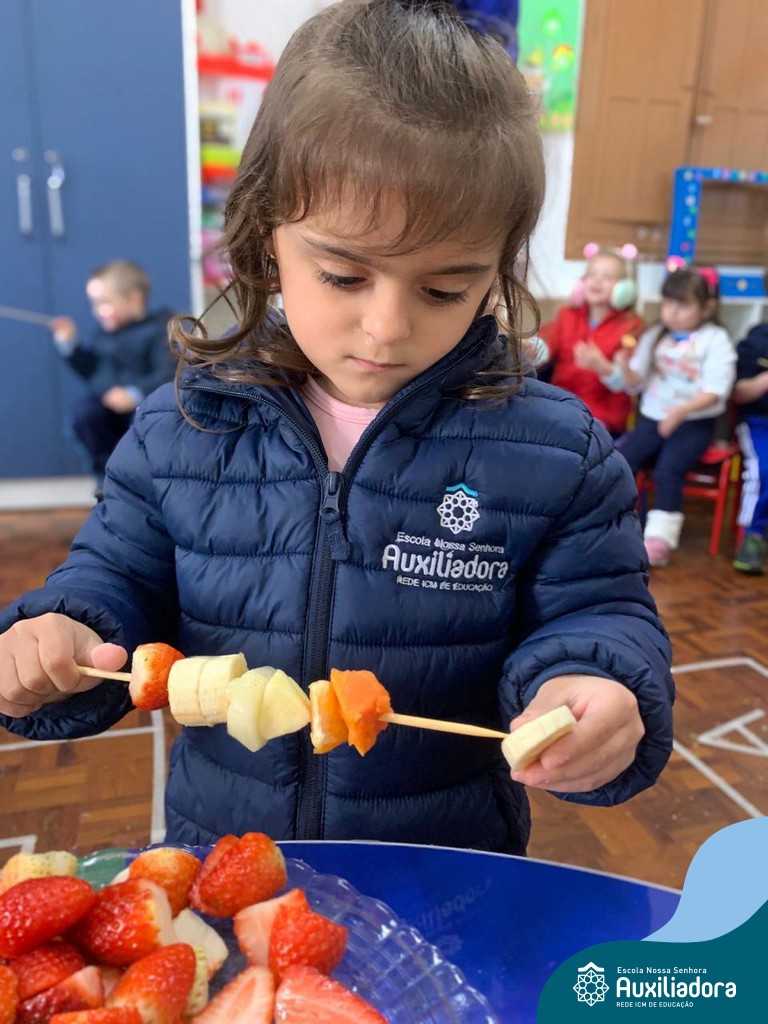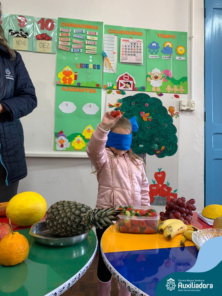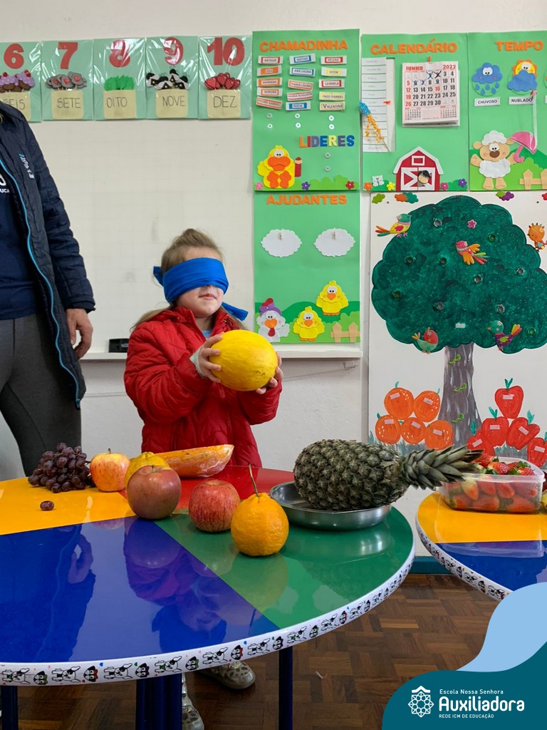 Alimentação Saudável. Que delícia! As crianças foram recepcionadas com uma novidade: A Cesta da Dona Maricota. A partir do contato direto com frutas, legumes e verduras as crianças puderam falar sobre seus gostos particulares e provar outros sabores que são importantes para nossa saúde!