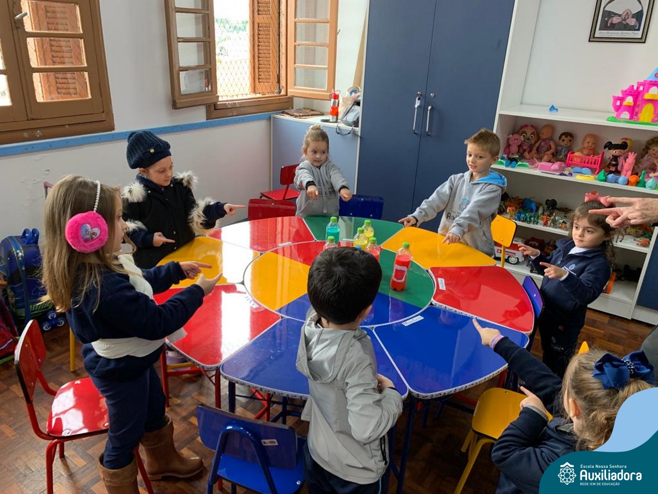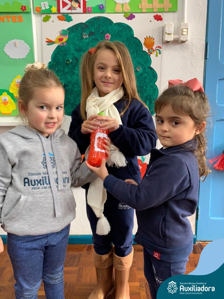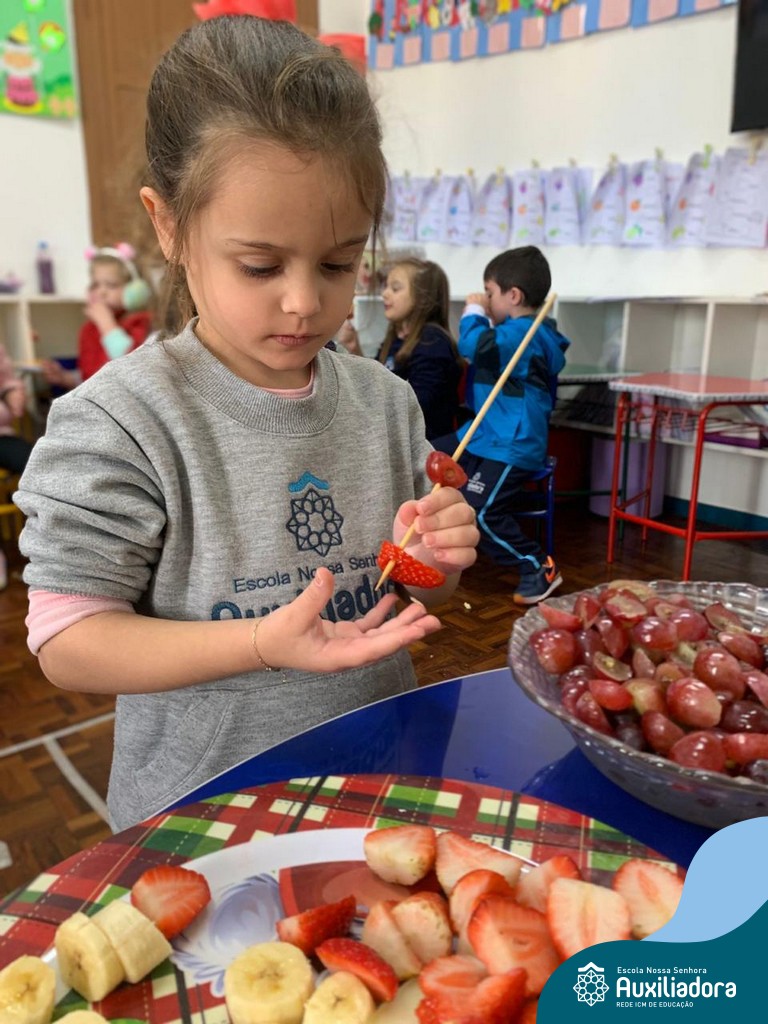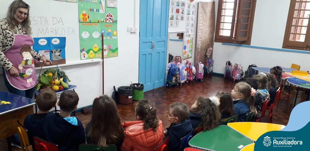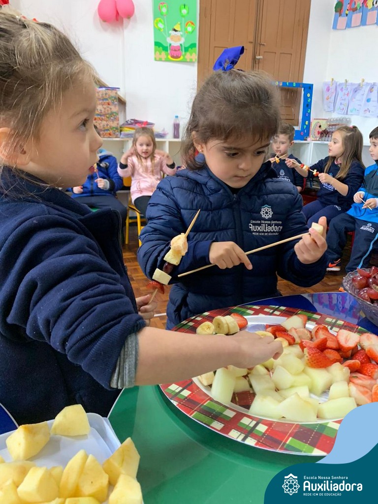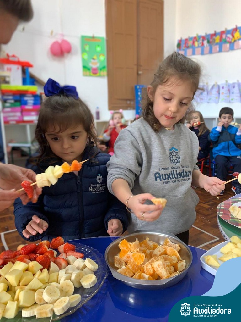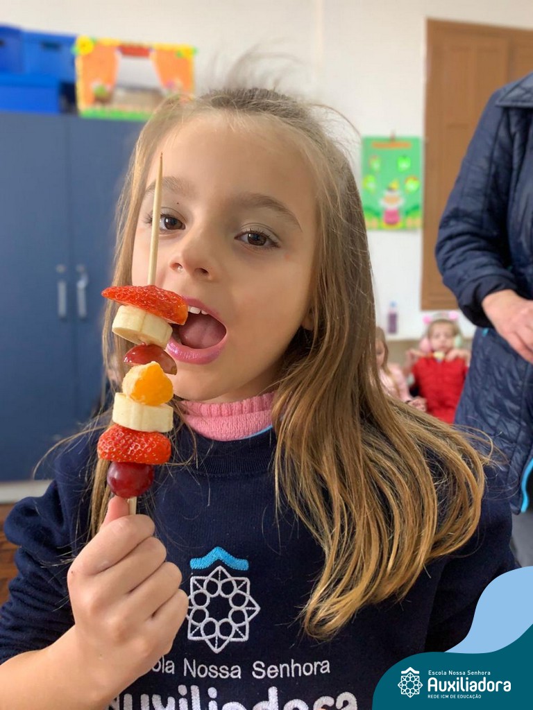 Alimentação Saudável. Que delícia! As crianças foram recepcionadas com uma novidade: A Cesta da Dona Maricota. A partir do contato direto com frutas, legumes e verduras as crianças puderam falar sobre seus gostos particulares e provar outros sabores que são importantes para nossa saúde!