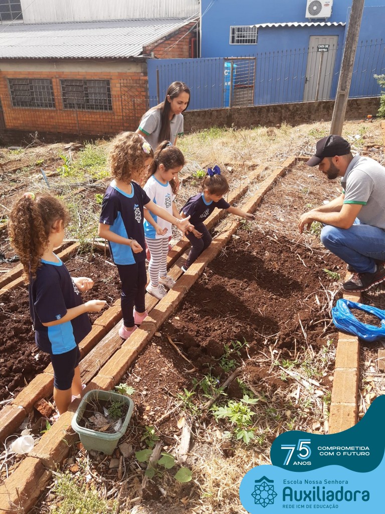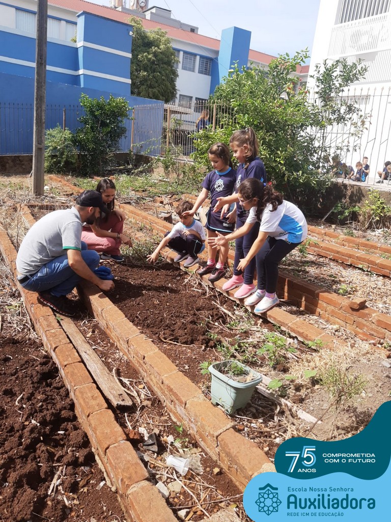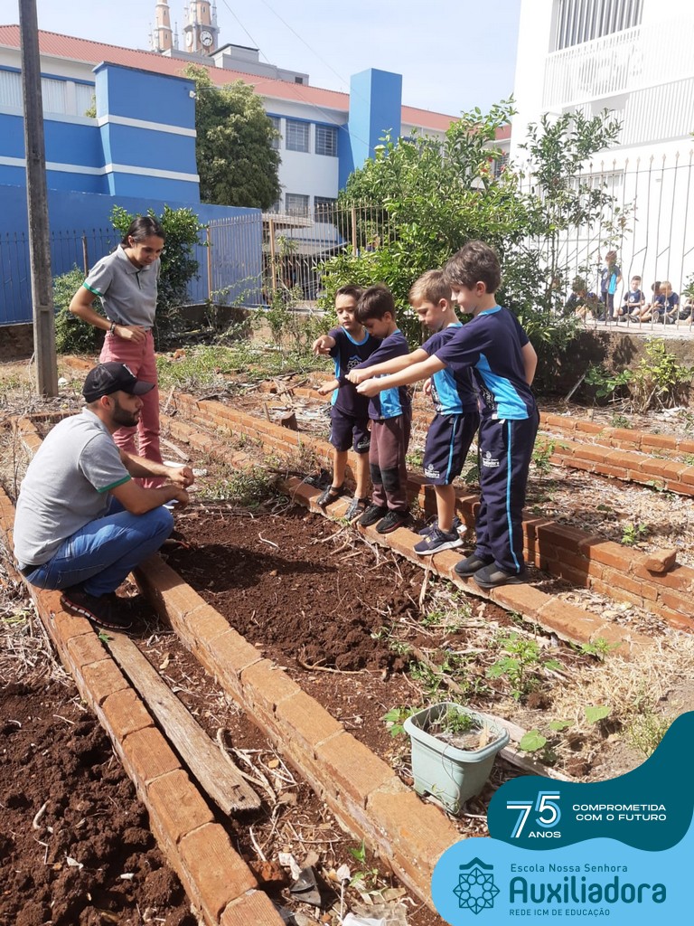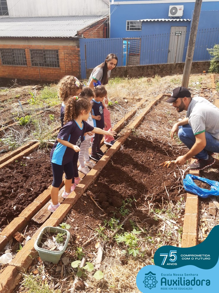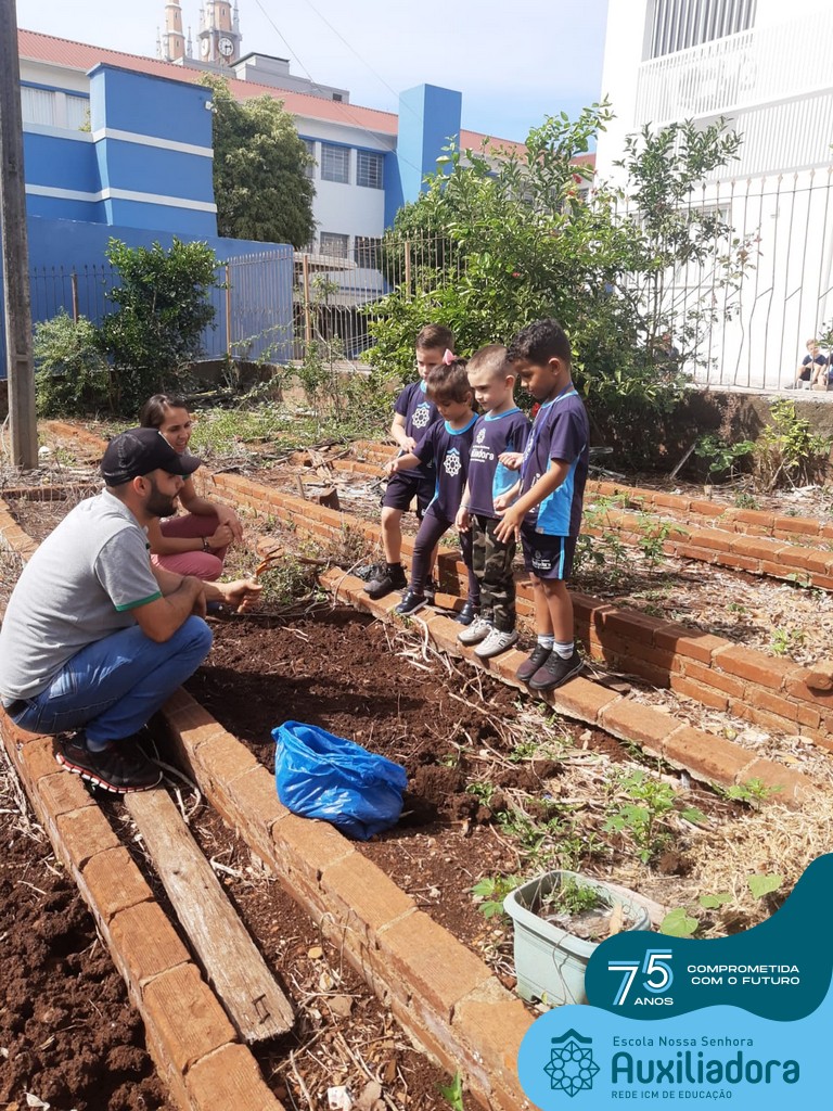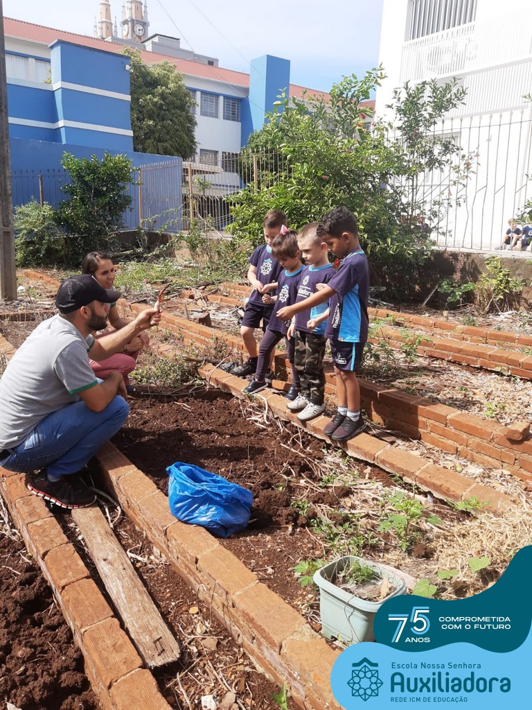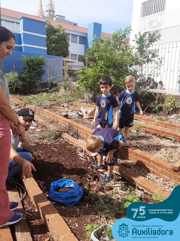 * Aprenderam a importância dos alimentos orgânicos com o auxílio do pessoal dos Produtos do Sítio. Nesse momento realizaram o plantio de cenouras na horta da escola;