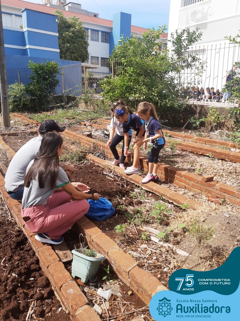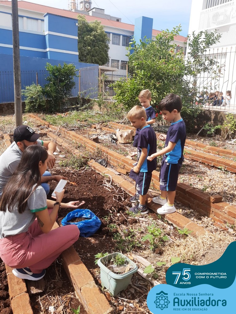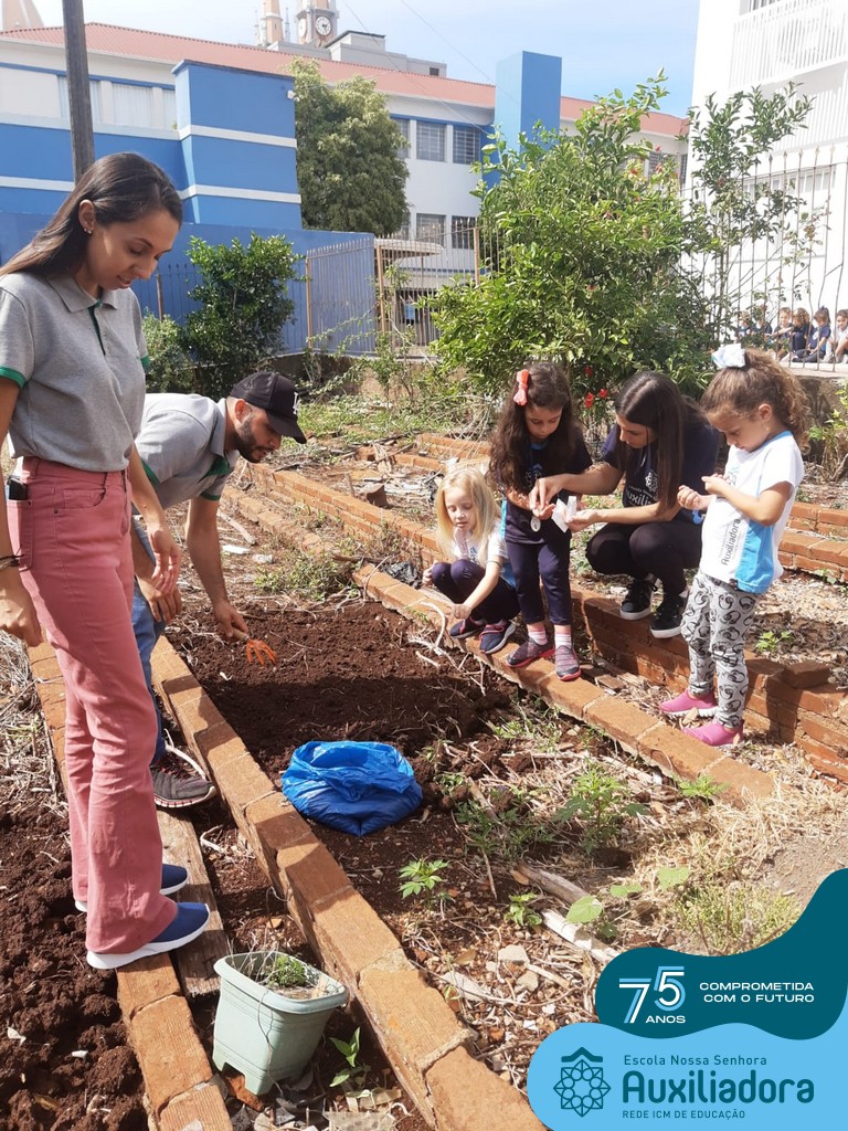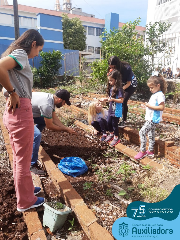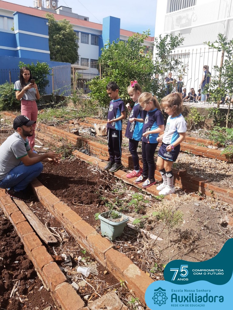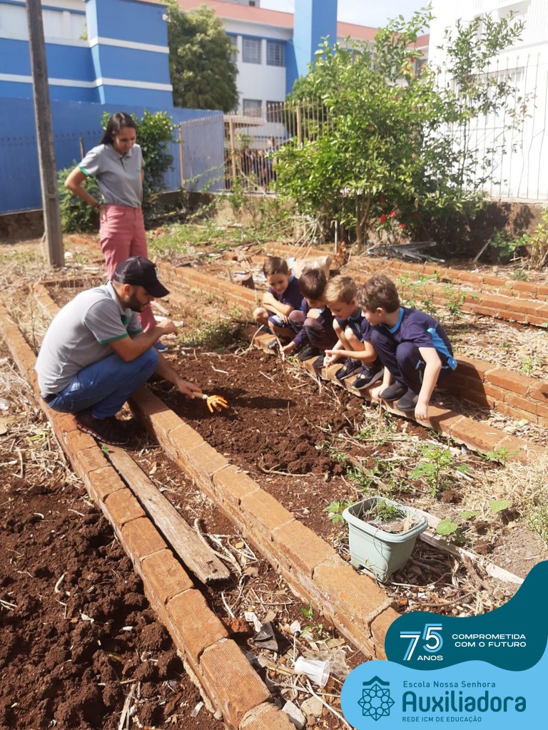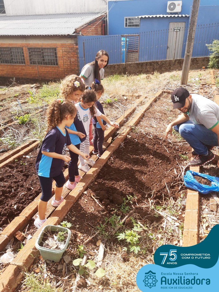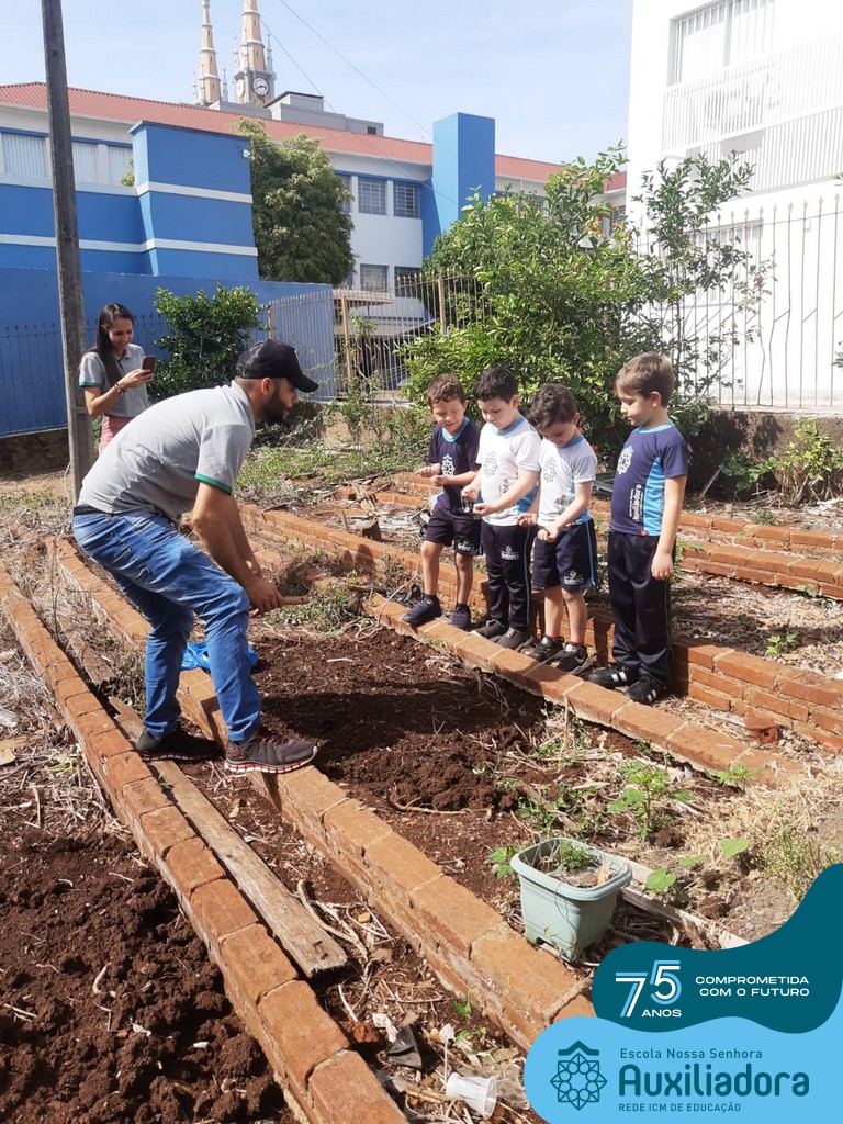 * Aprenderam a importância dos alimentos orgânicos com o auxílio do pessoal dos Produtos do Sítio. Nesse momento realizaram o plantio de cenouras na horta da escola;