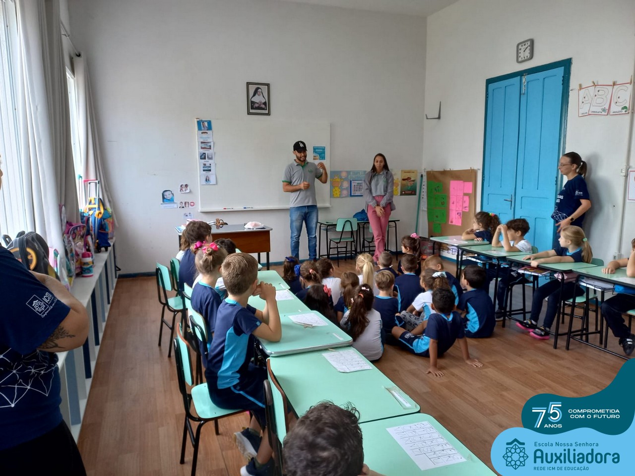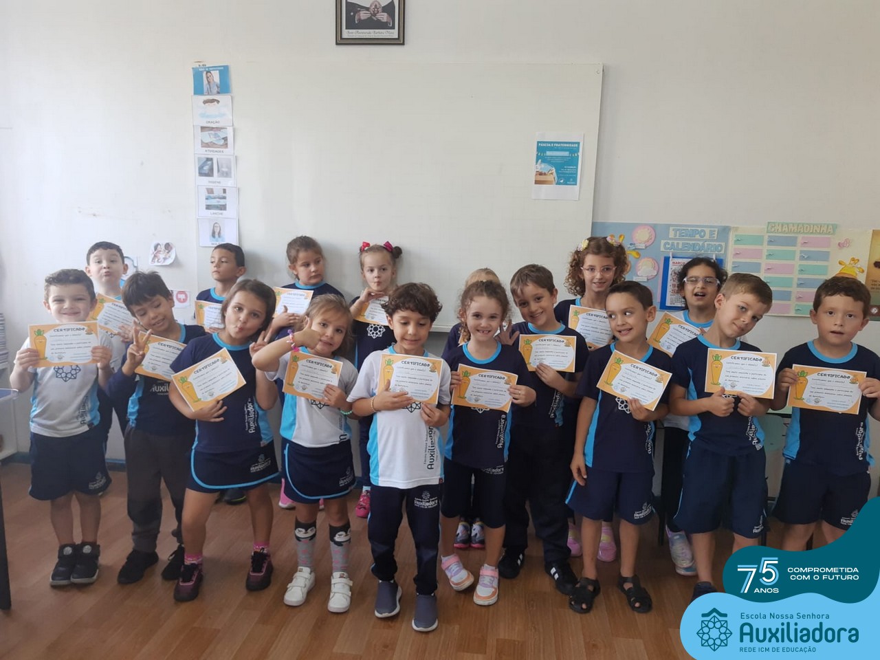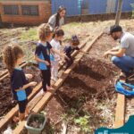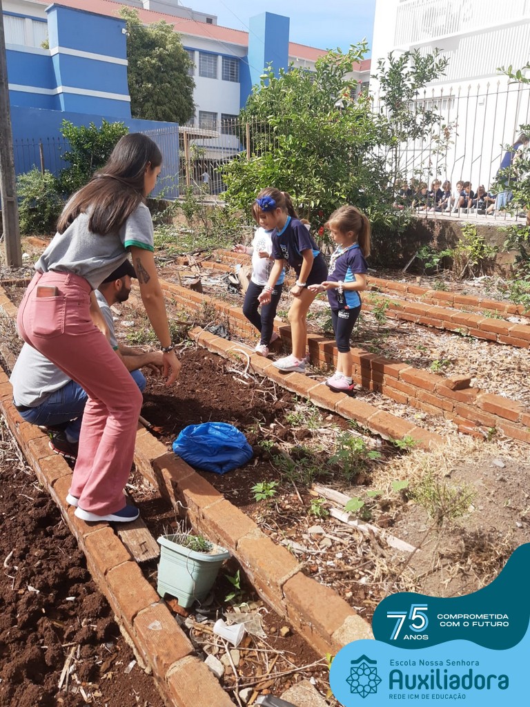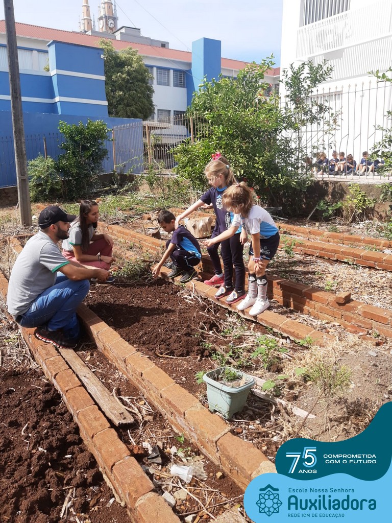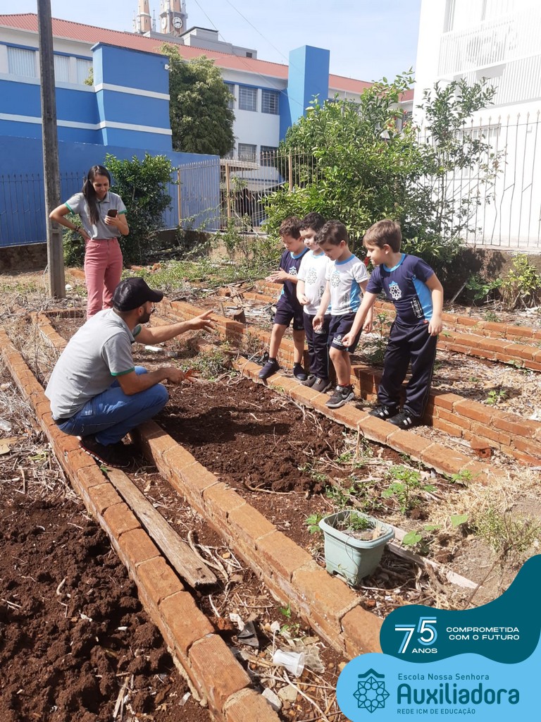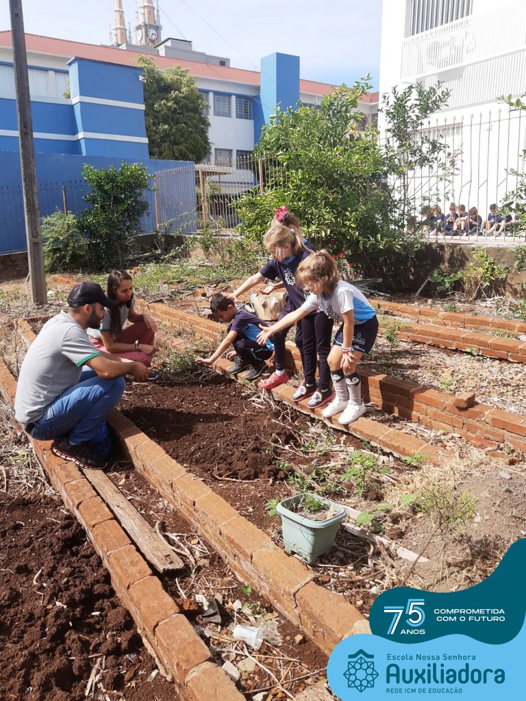 * Aprenderam a importância dos alimentos orgânicos com o auxílio do pessoal dos Produtos do Sítio. Nesse momento realizaram o plantio de cenouras na horta da escola;