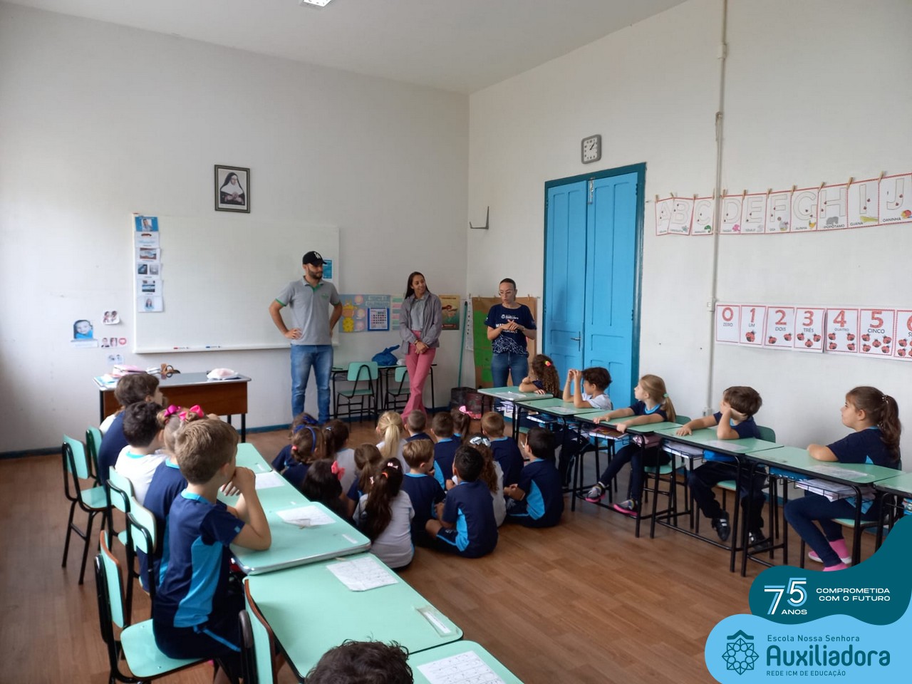 * Receberam a visita da nutricionista da escola para uma bate papo sobre a importância de mantermos uma alimentação saudável;