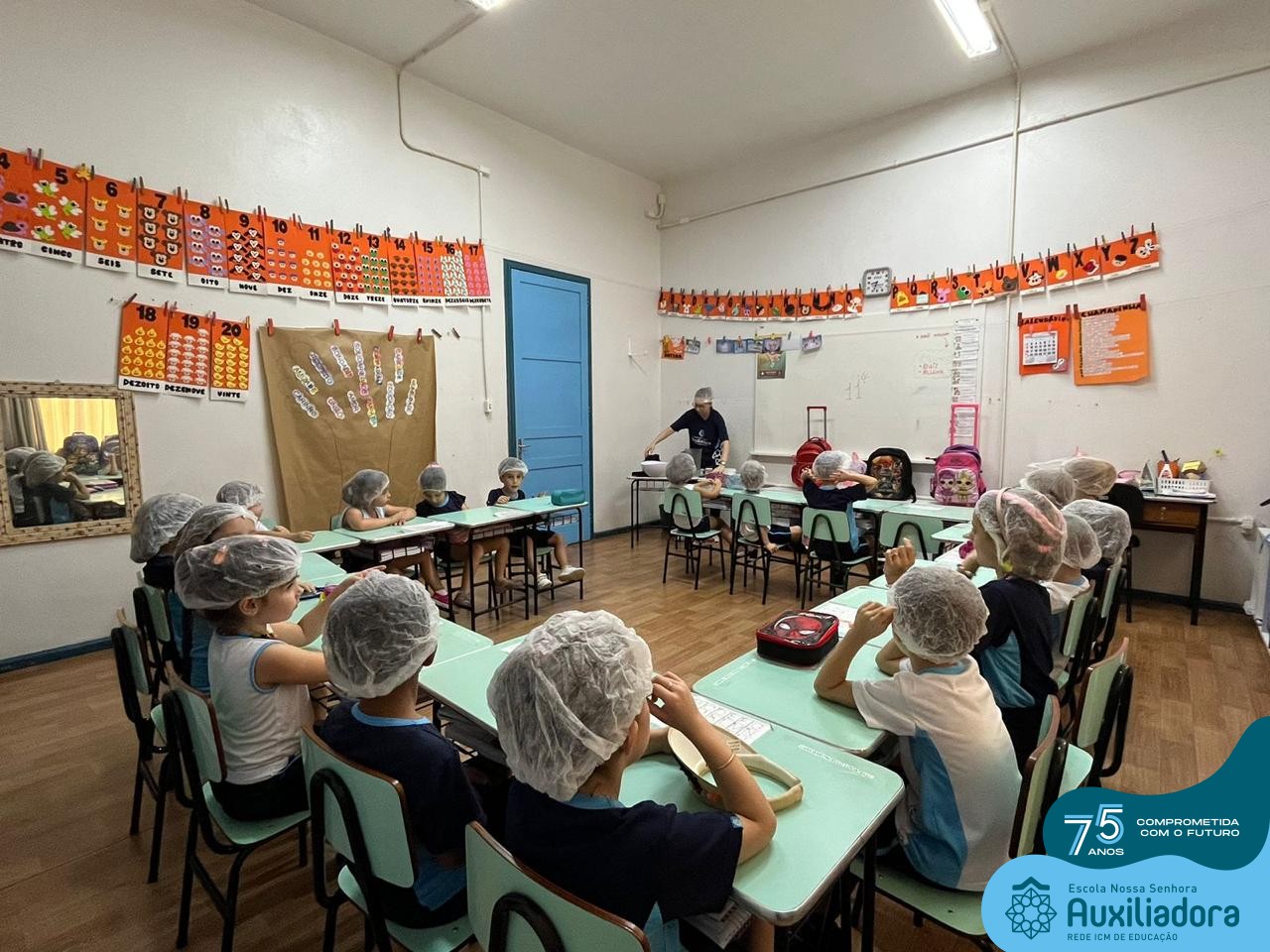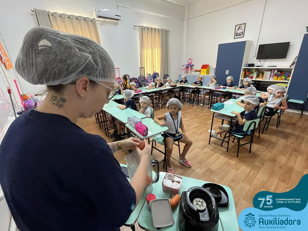 A partir do projeto alimentação saudável, as turmas do Pré 2 vivenciaram algumas experiências: