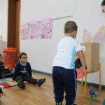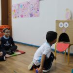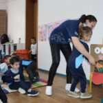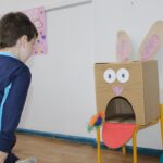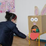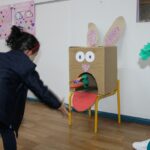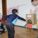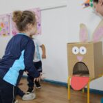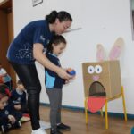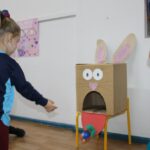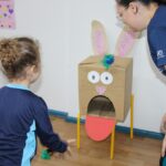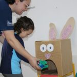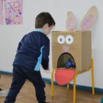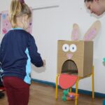 A brincadeira “Alimentando o coelho” foi pura diversão no início da tarde do Maternal II C. As crianças alimentaram o coelhinho, tentando acertar as cenouras na boca dele de várias distâncias e cada um do seu jeitinho!