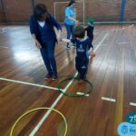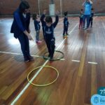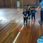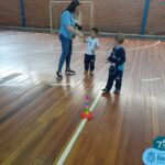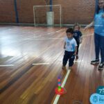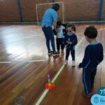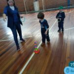 Após, através de um circuito motor, as crianças tiveram a oportunidade de realizarem várias atividades importantes para o seu desenvolvimento! Muita diversão e integração entre as turmas do Maternal 2.