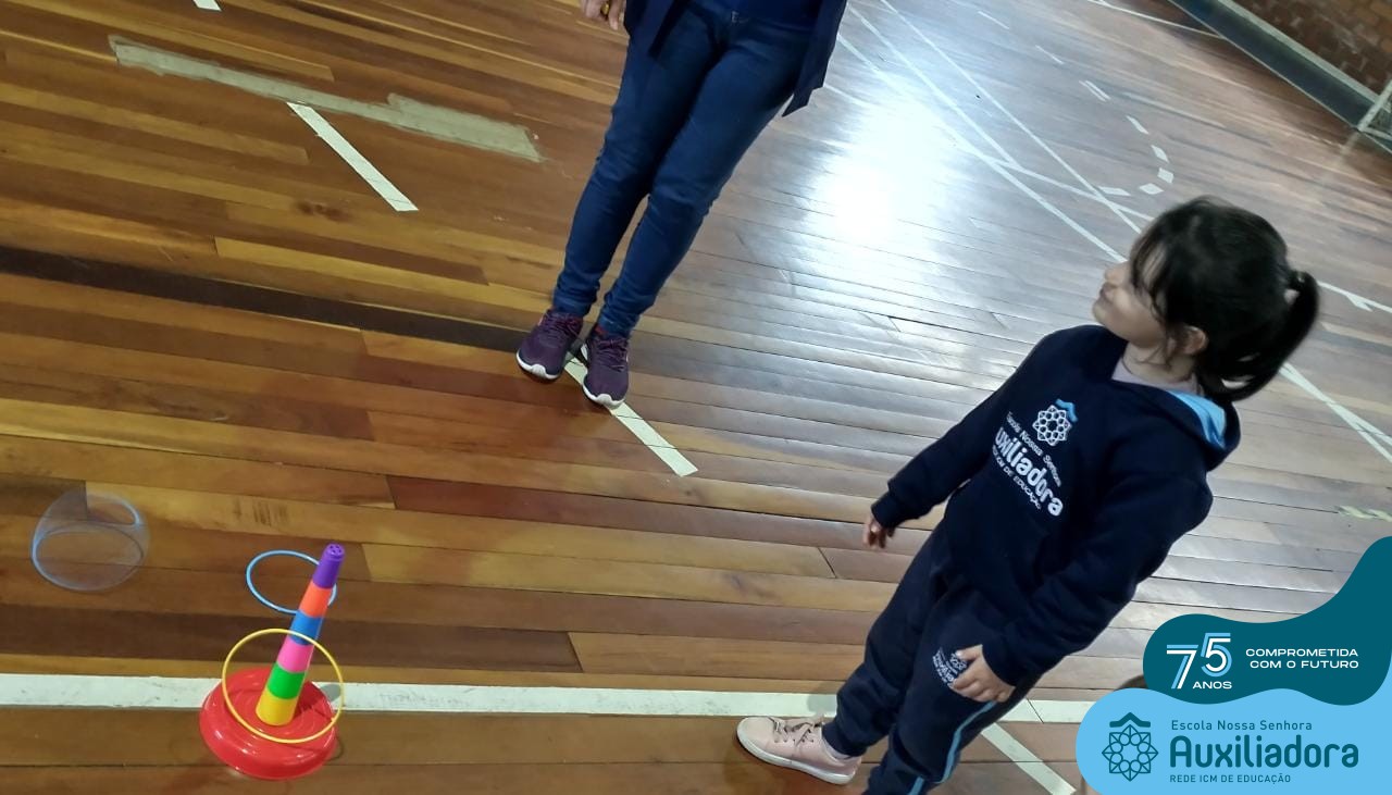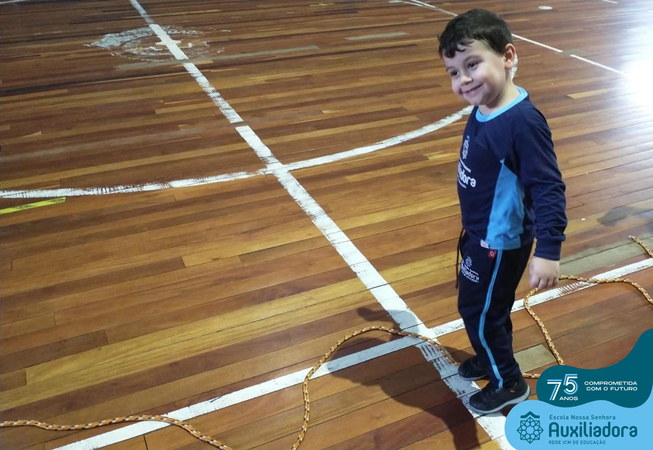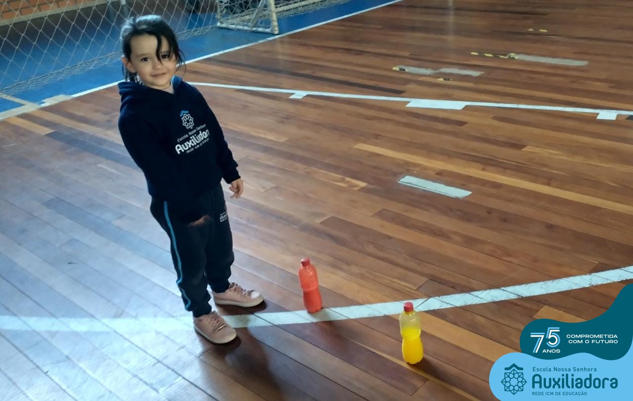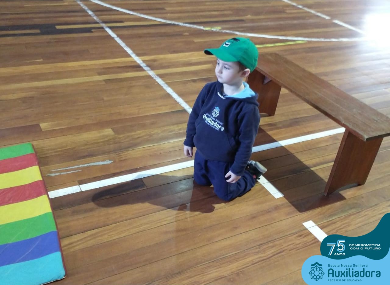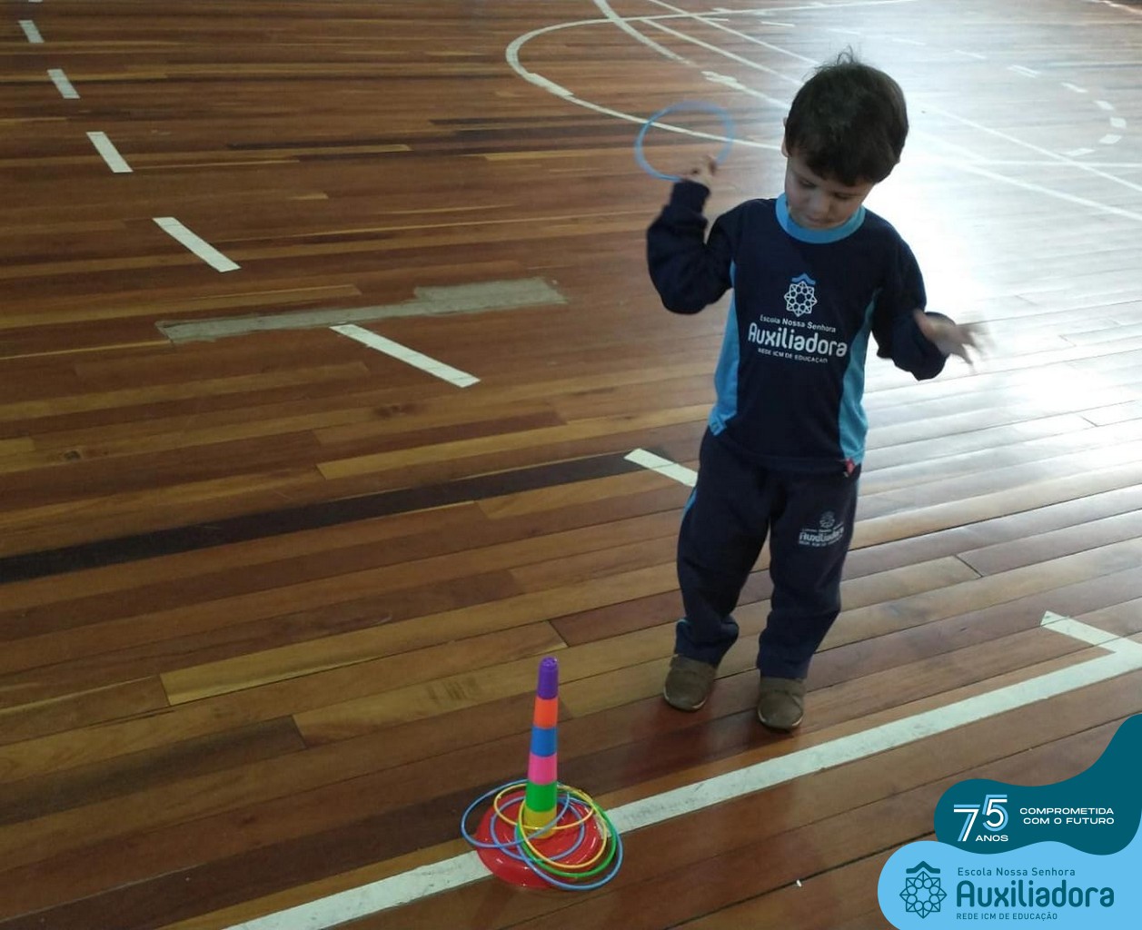 Após, através de um circuito motor, as crianças tiveram a oportunidade de realizarem várias atividades importantes para o seu desenvolvimento! Muita diversão e integração entre as turmas do Maternal 2.