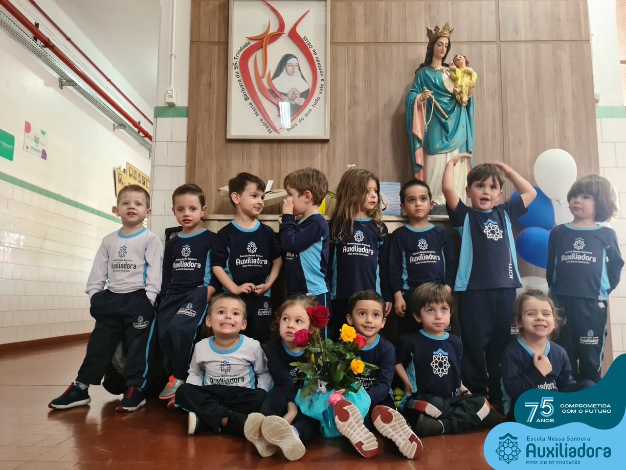 Muita diversão e alegria marcaram as atividades de festividade em comemoração aos 75 anos da nossa querida Escola! As turmas do Maternal 2 iniciaram as comemorações trazendo flores para enfeitar a escola.