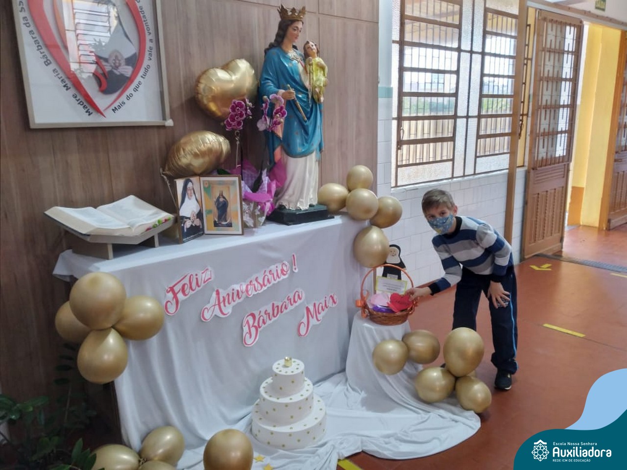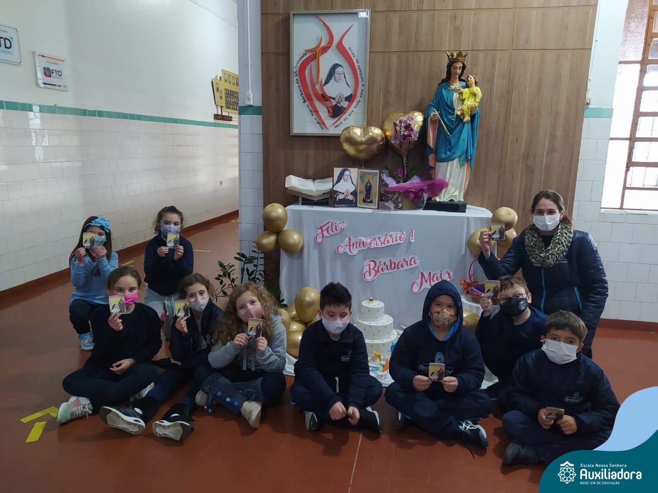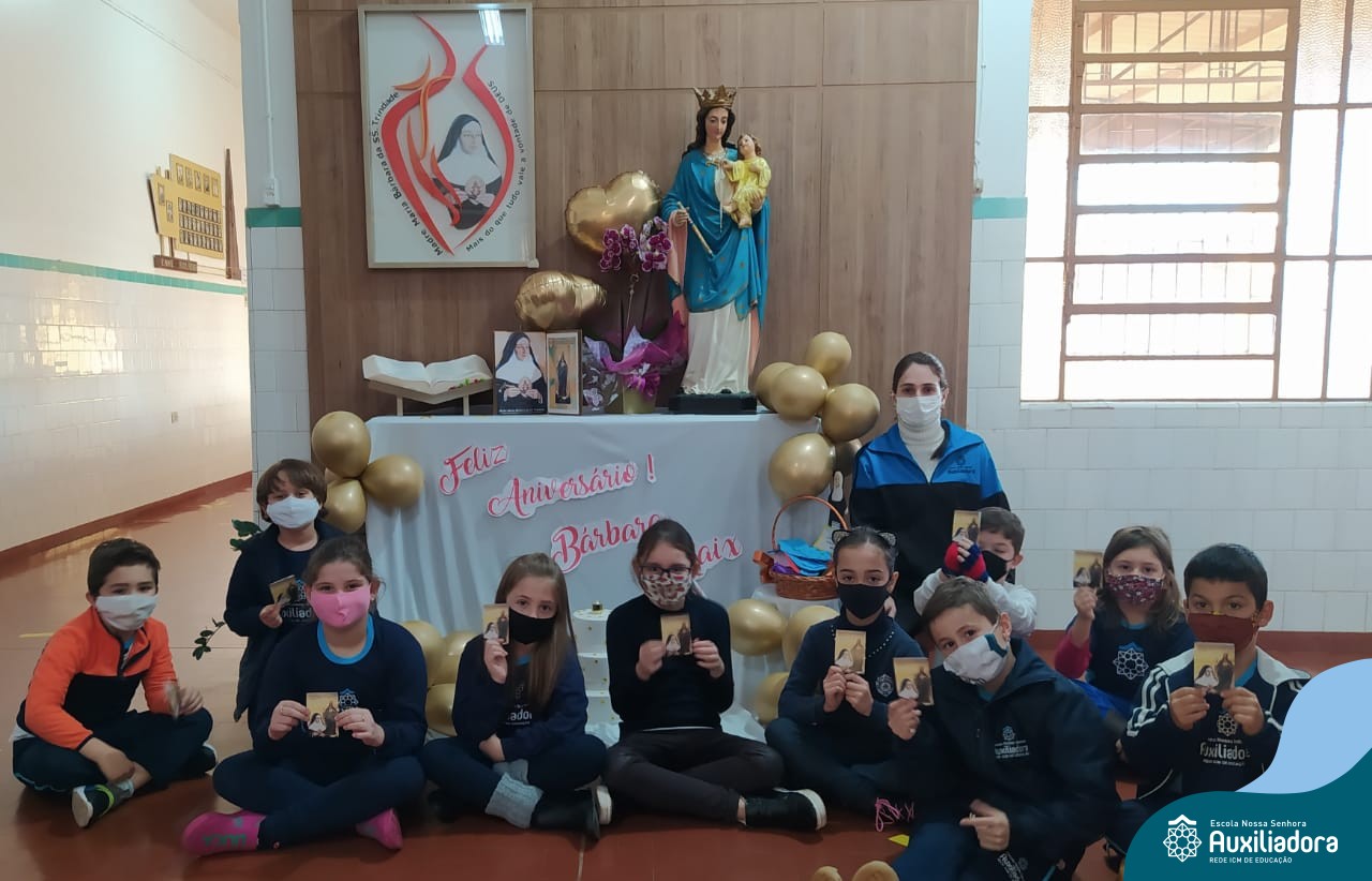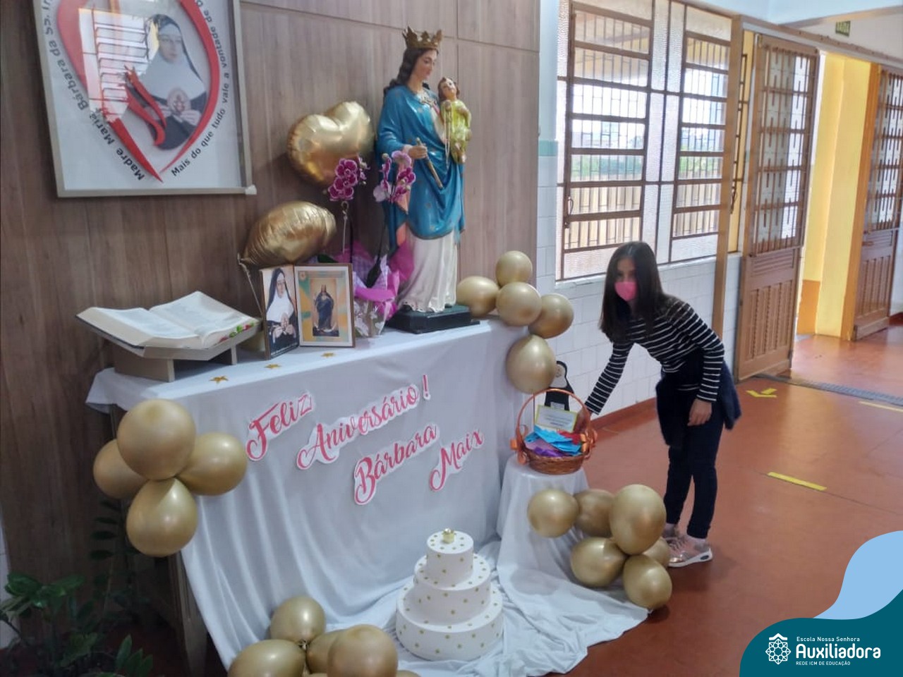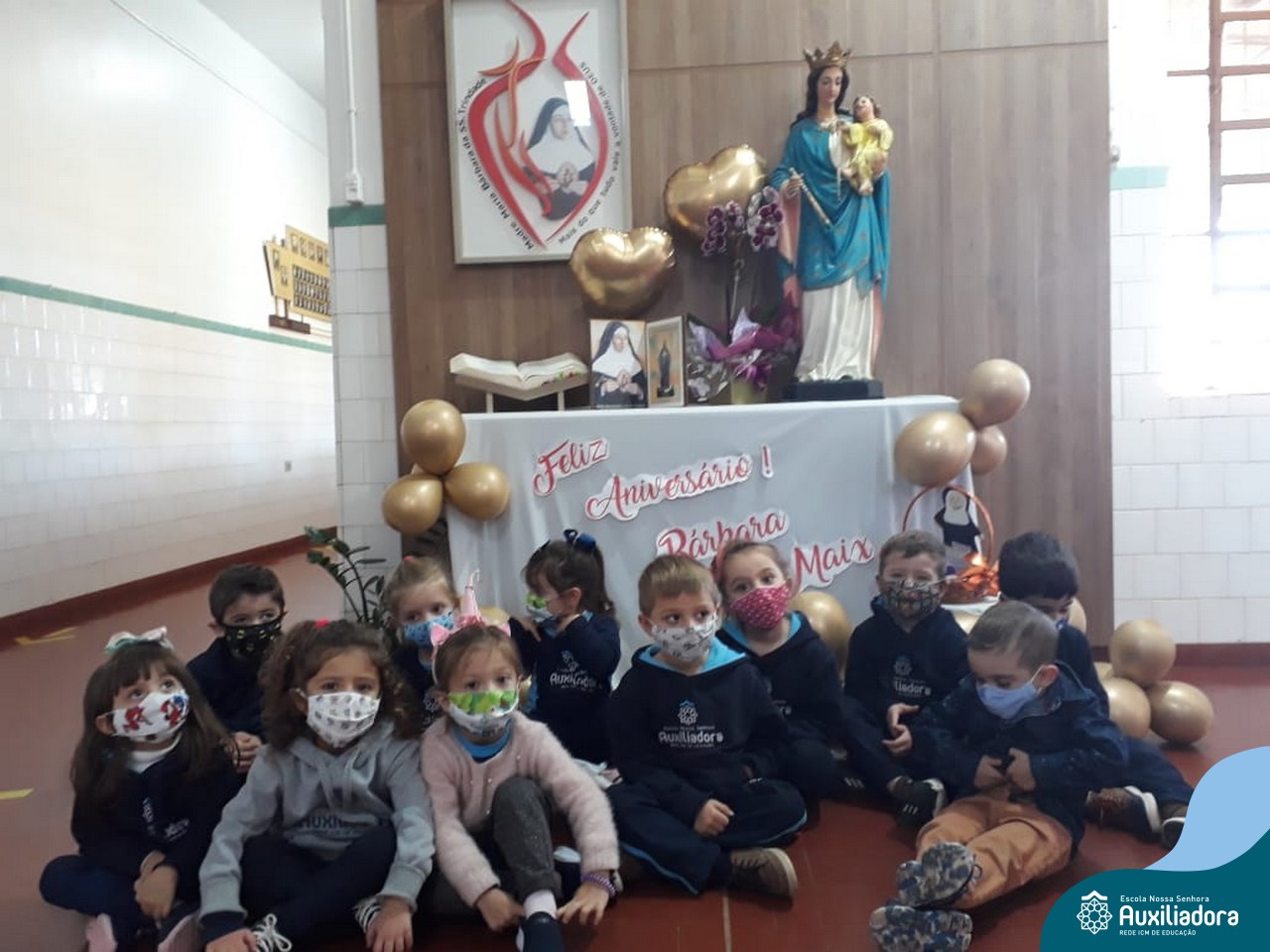 Toda a escola esteve em festa e cada turma teve a oportunidade de celebrar e conhecer um pouco mais sobre a vida de Bárbara Maix nas atividades pedagógicas.