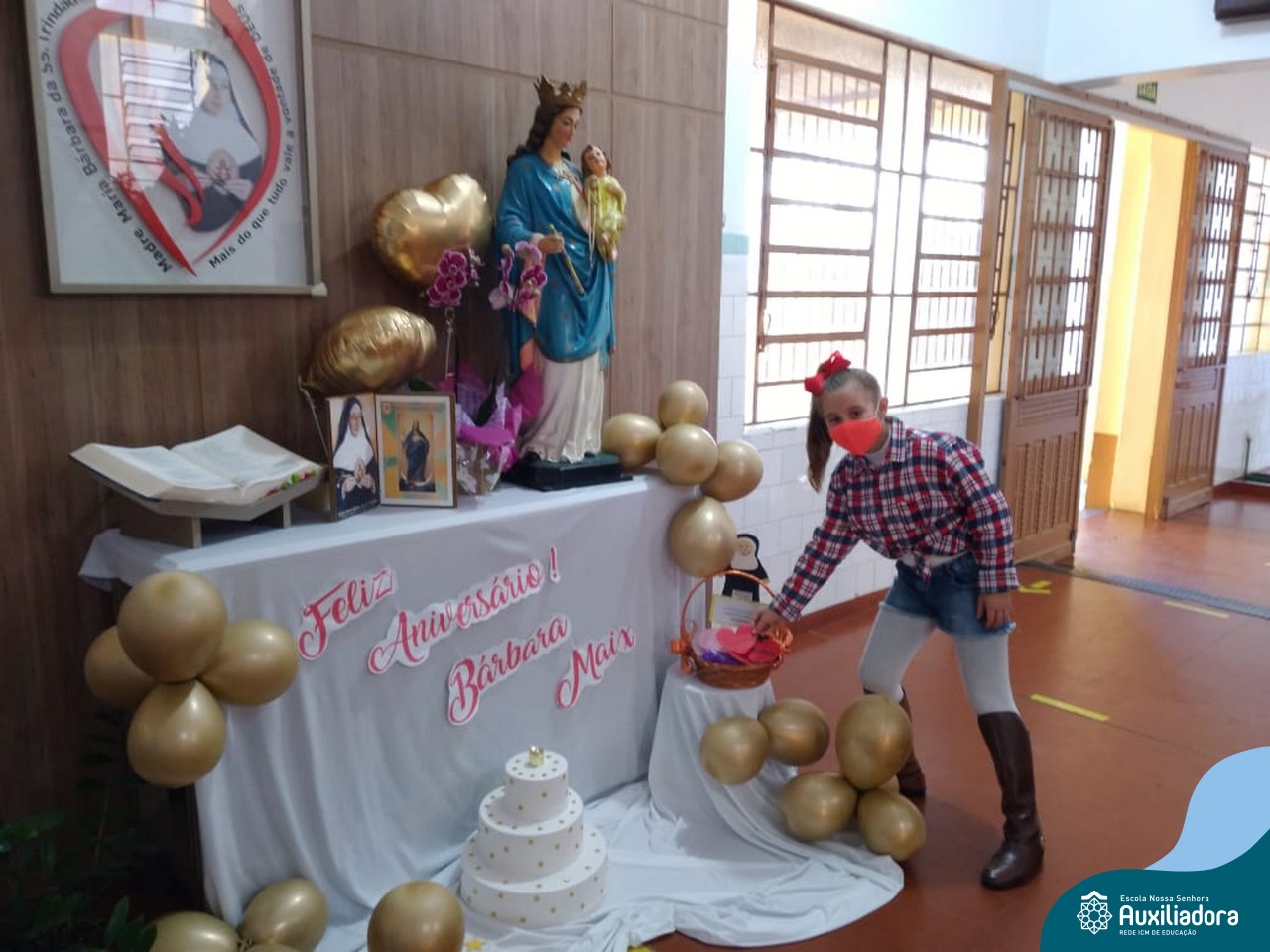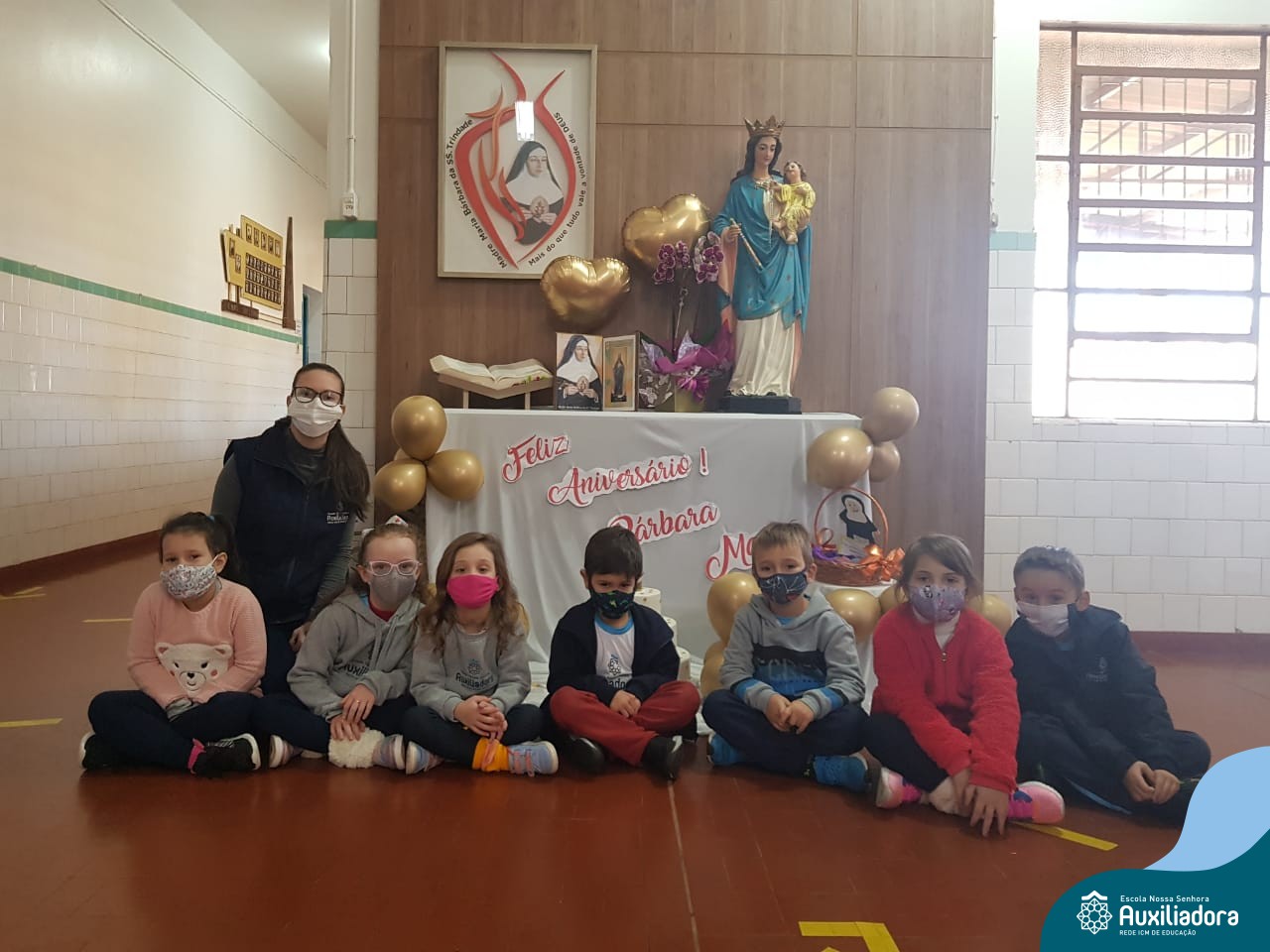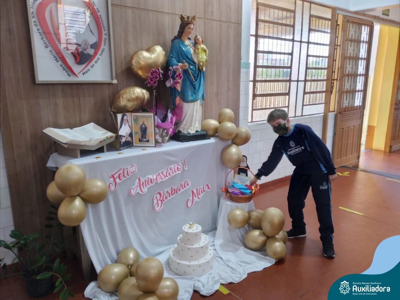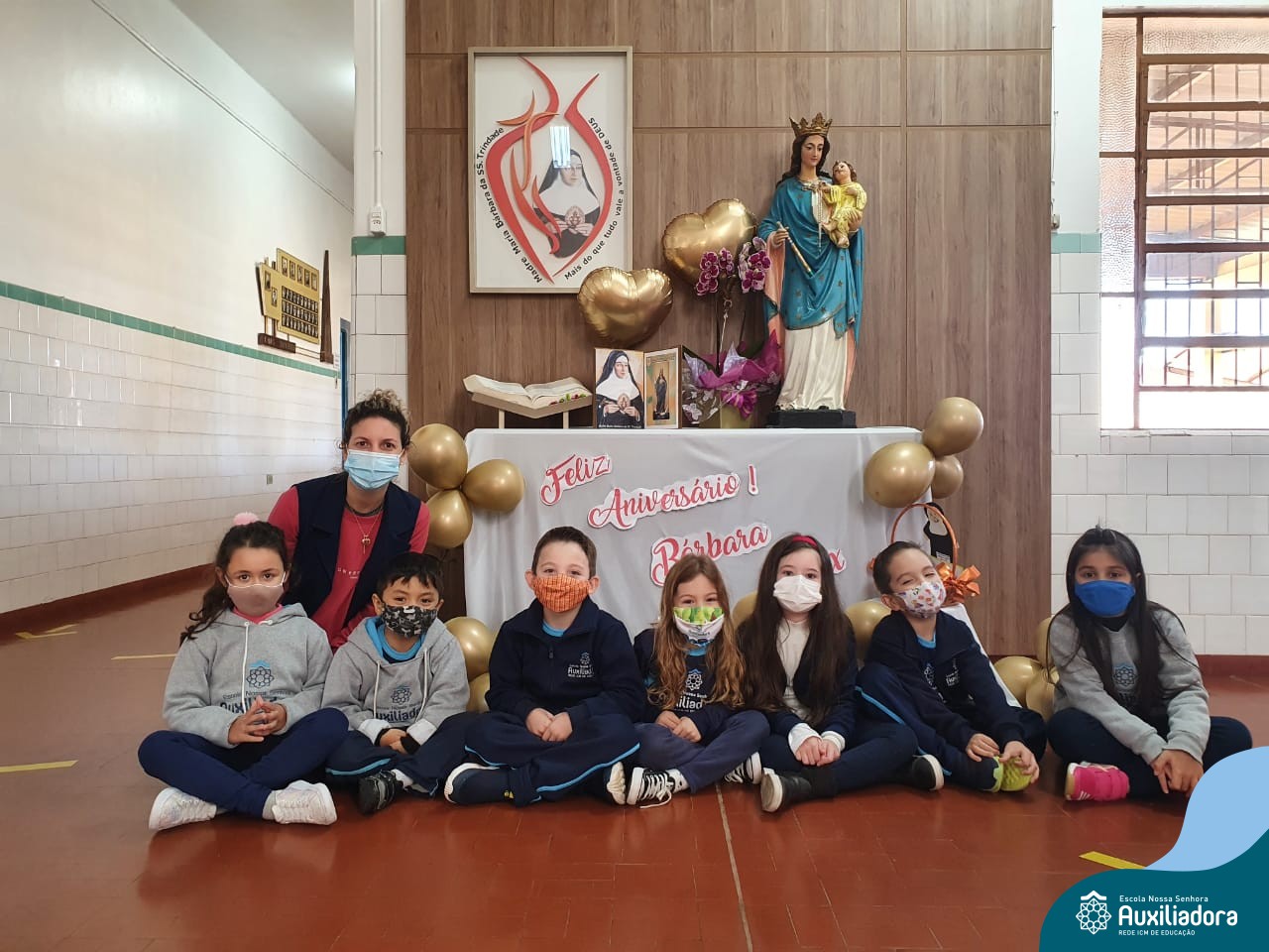 Toda a escola esteve em festa e cada turma teve a oportunidade de celebrar e conhecer um pouco mais sobre a vida de Bárbara Maix nas atividades pedagógicas.
