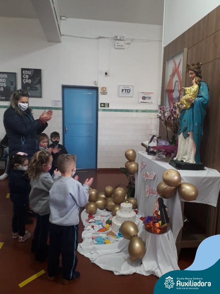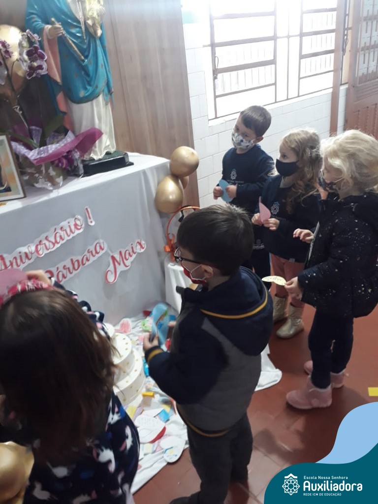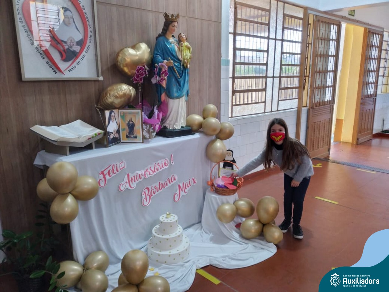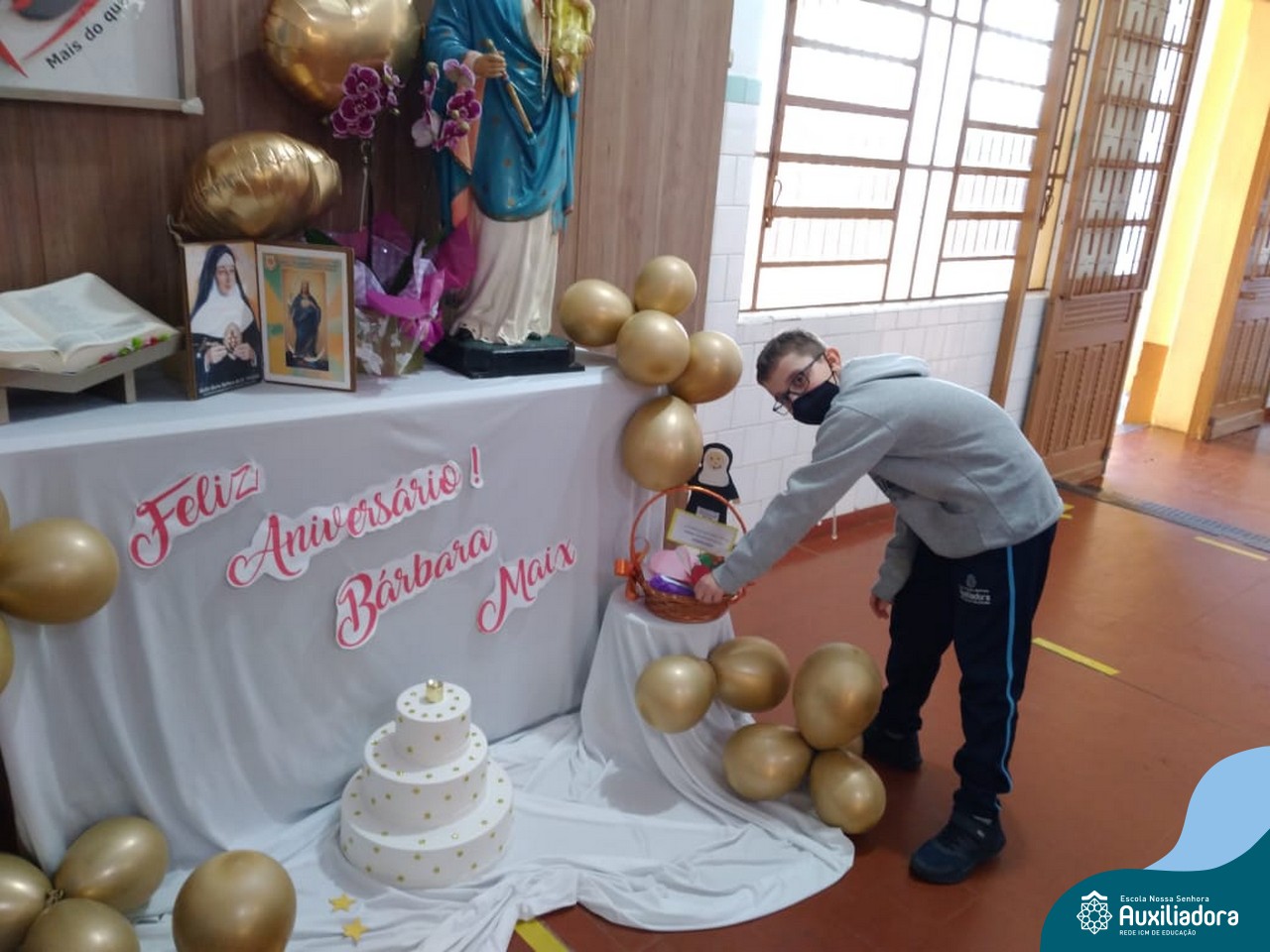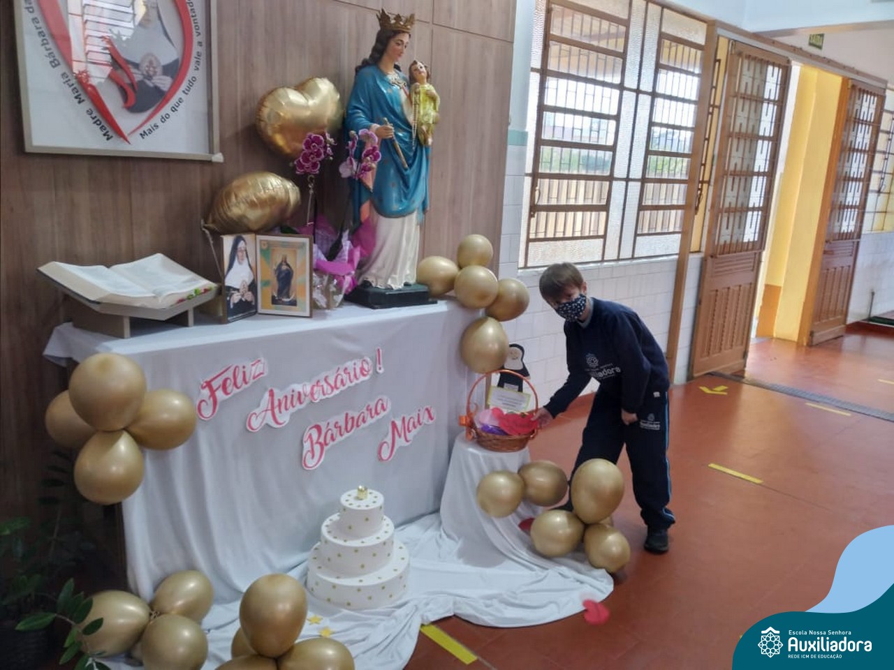 Toda a escola esteve em festa e cada turma teve a oportunidade de celebrar e conhecer um pouco mais sobre a vida de Bárbara Maix nas atividades pedagógicas.
