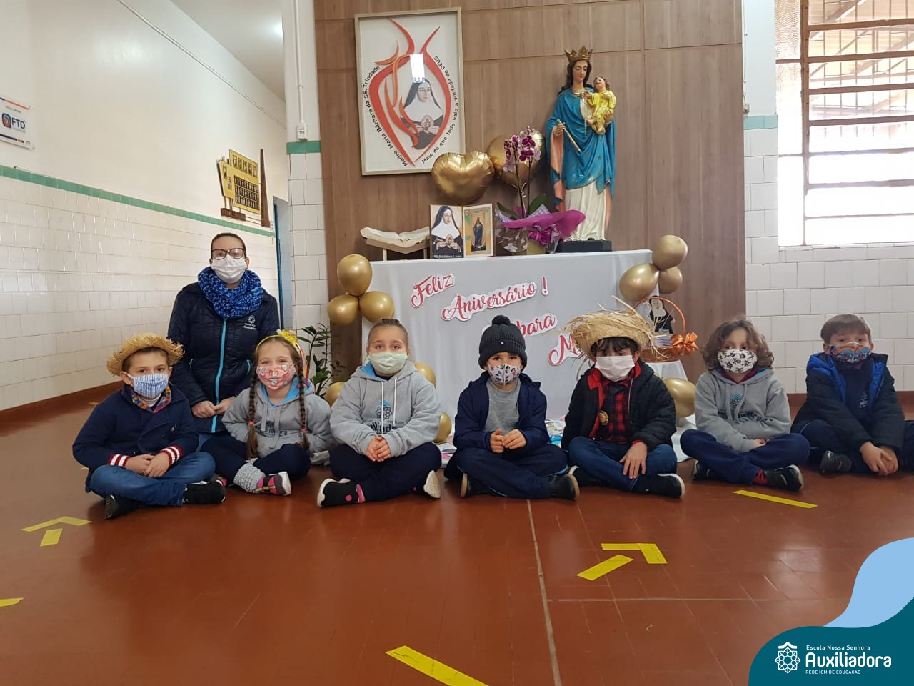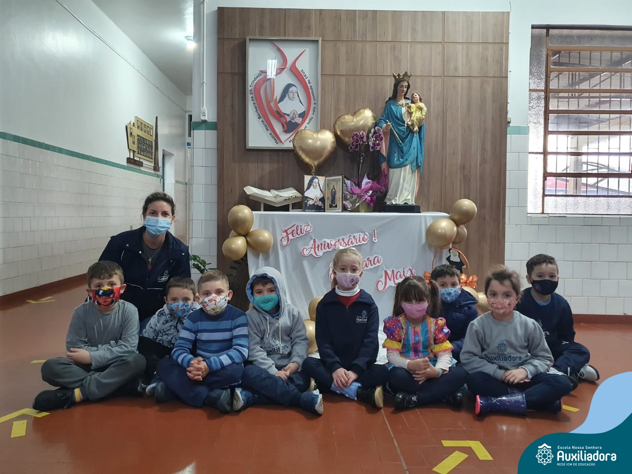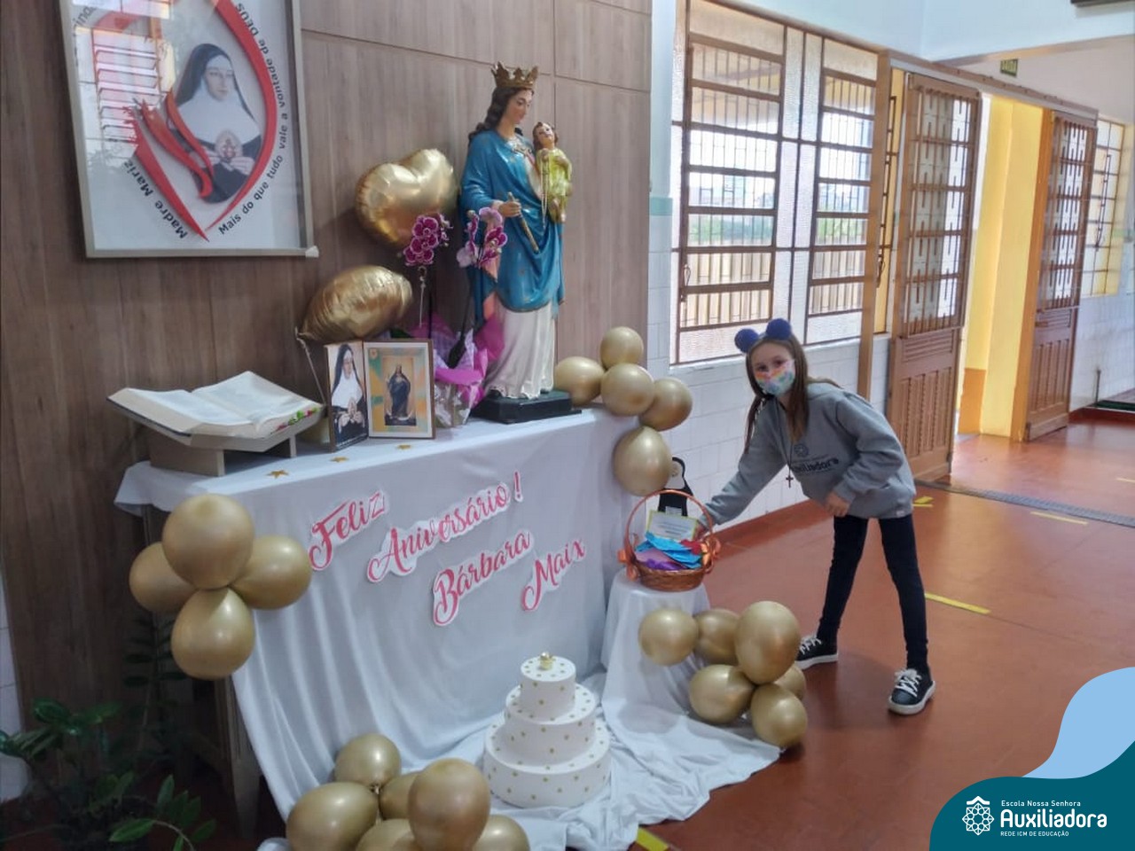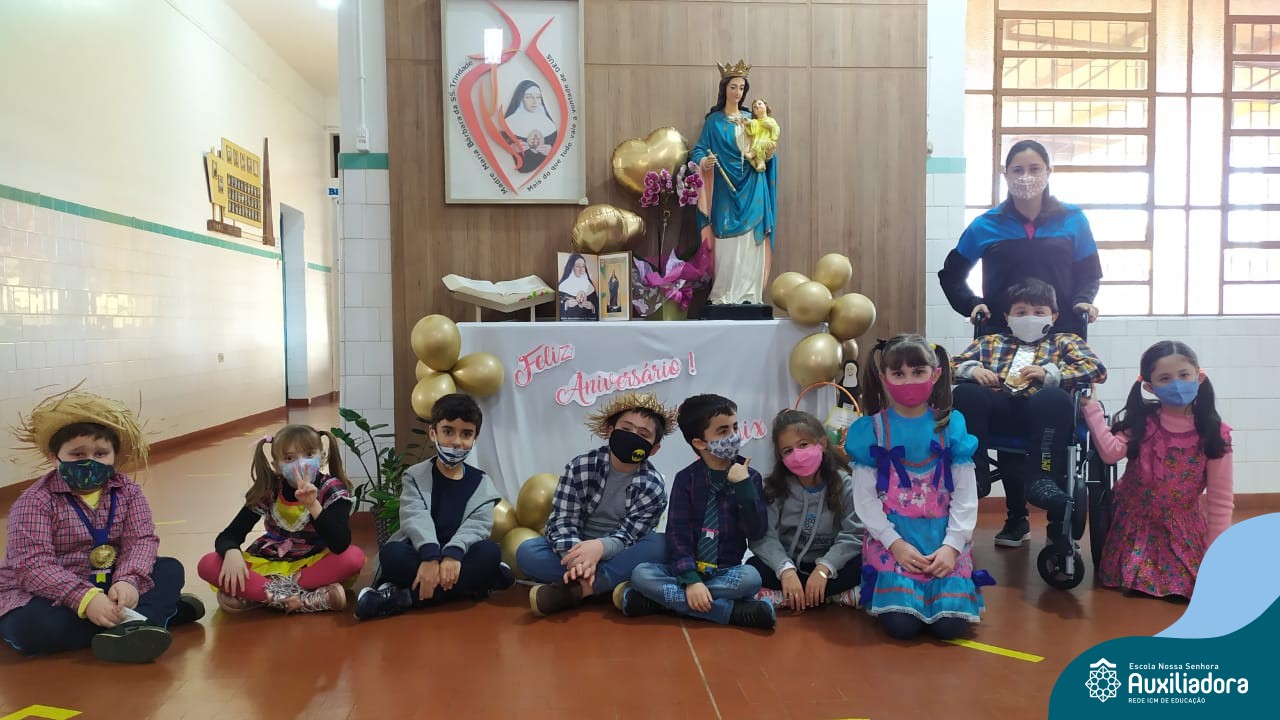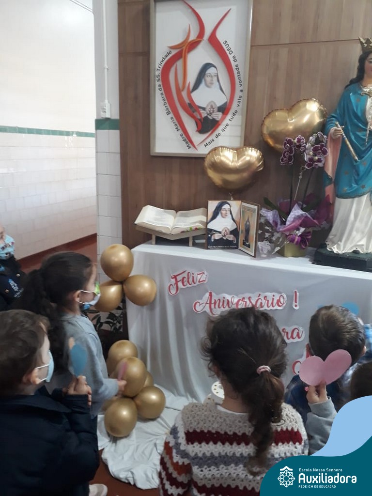 Toda a escola esteve em festa e cada turma teve a oportunidade de celebrar e conhecer um pouco mais sobre a vida de Bárbara Maix nas atividades pedagógicas.
