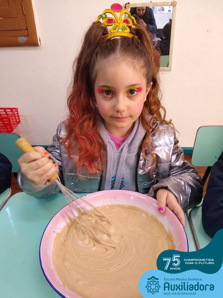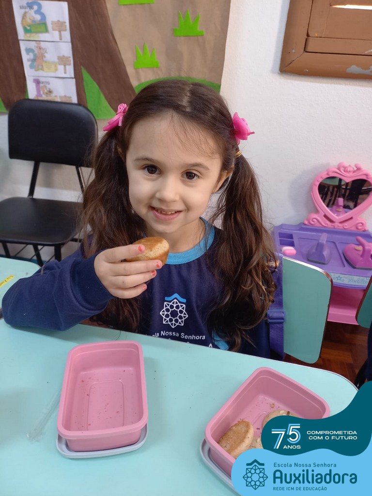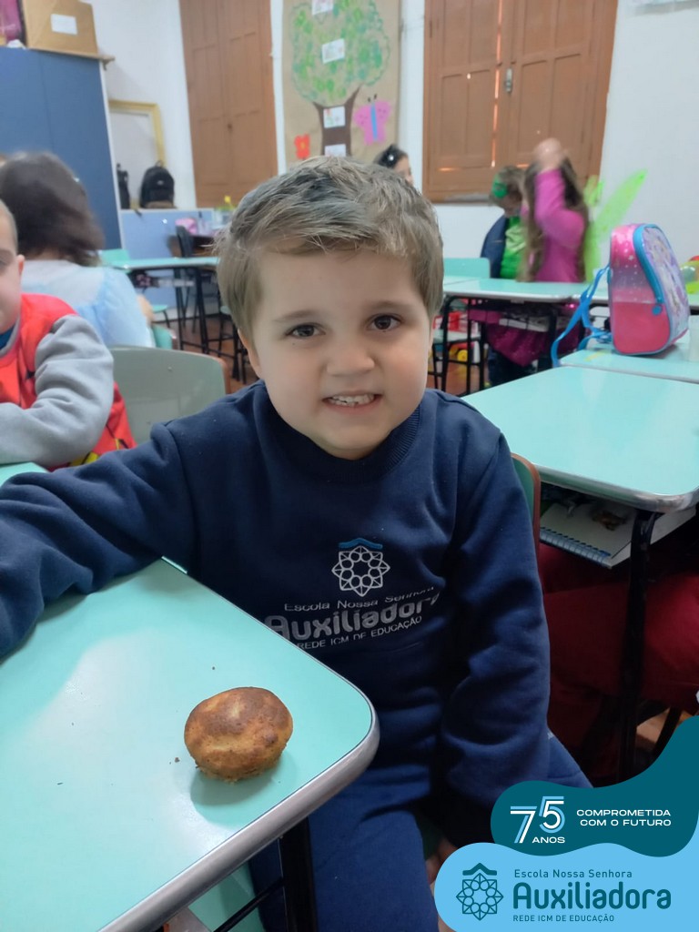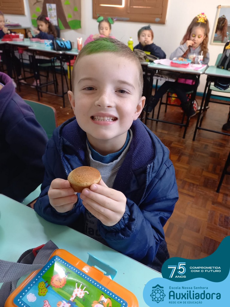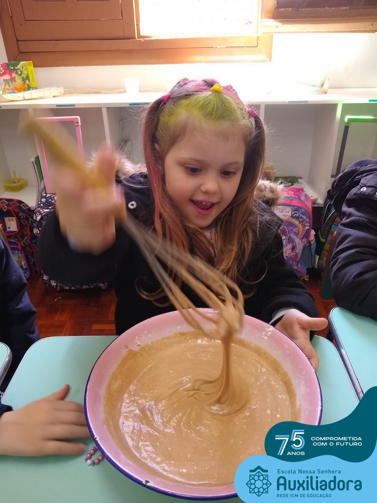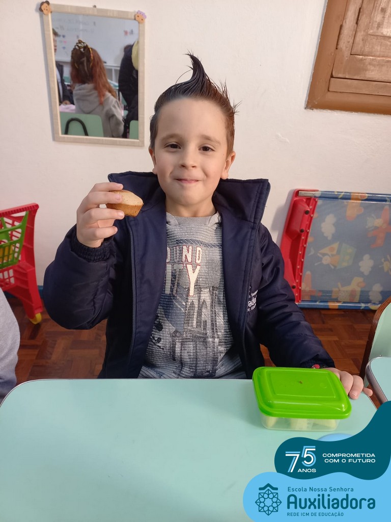 As turmas do Pré 2 realizaram a receita de cupcake de chocolate em comemoração ao aniversário da escola.
