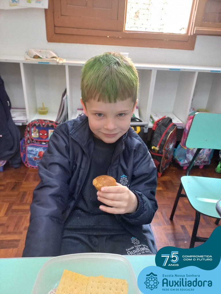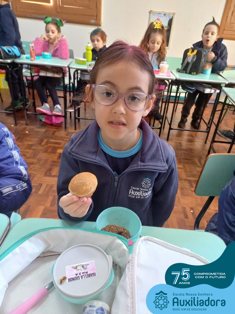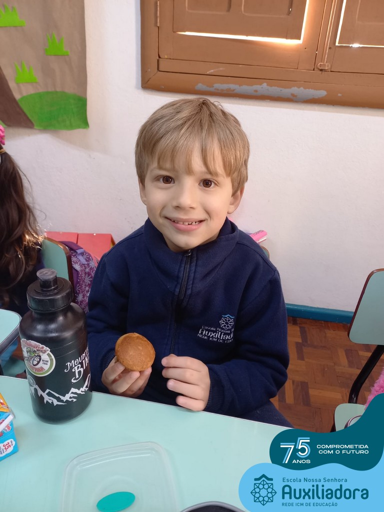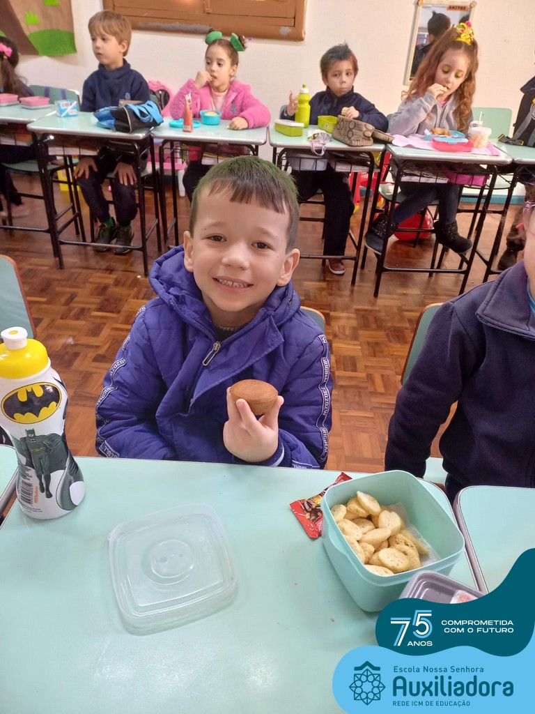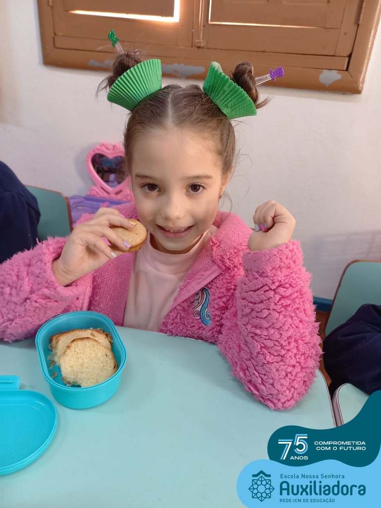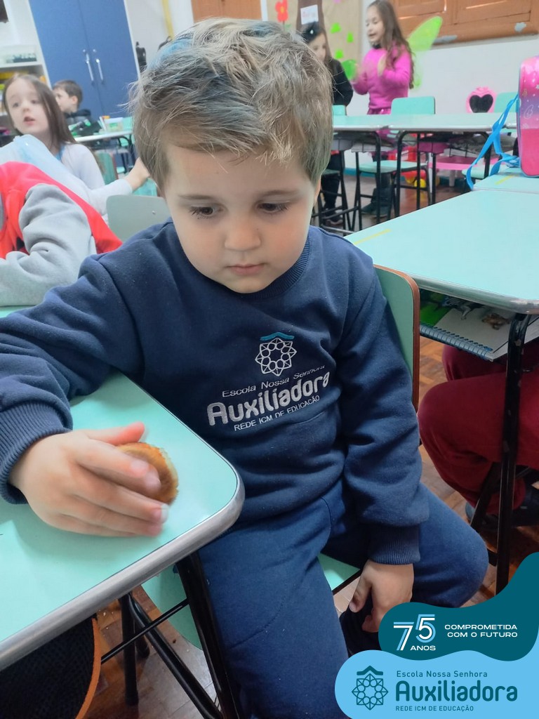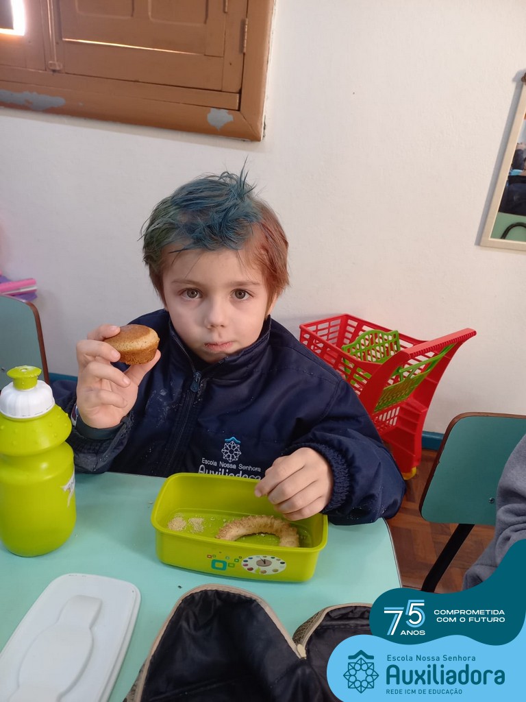 As turmas do Pré 2 realizaram a receita de cupcake de chocolate em comemoração ao aniversário da escola.