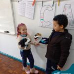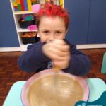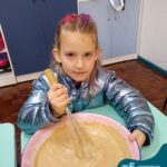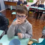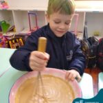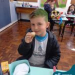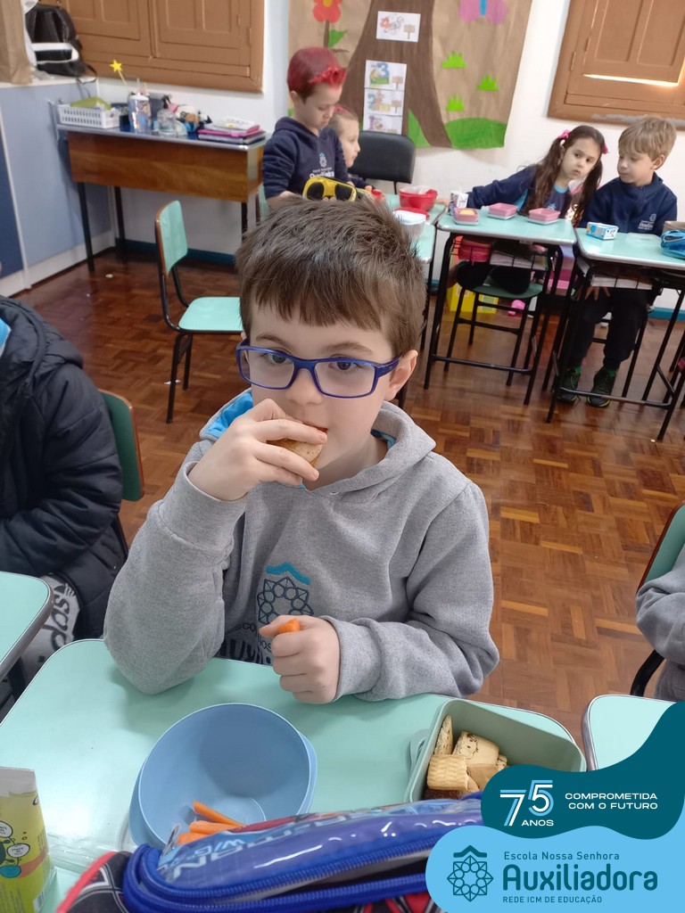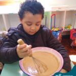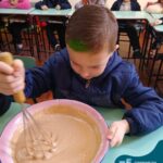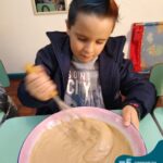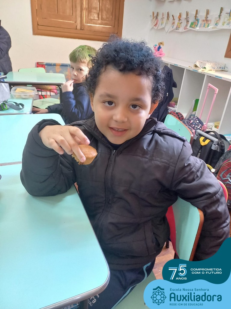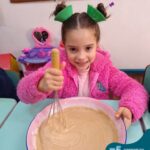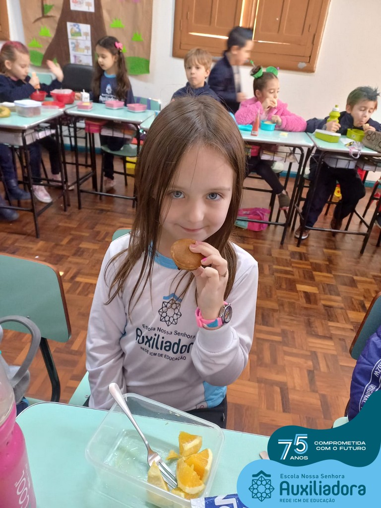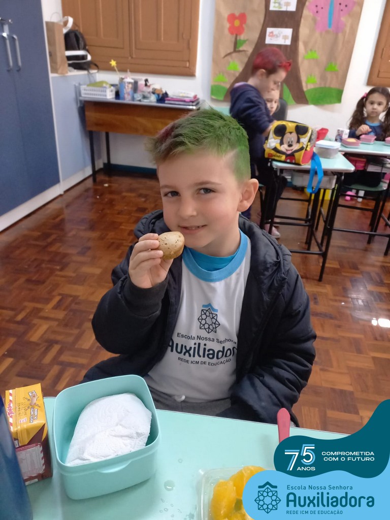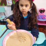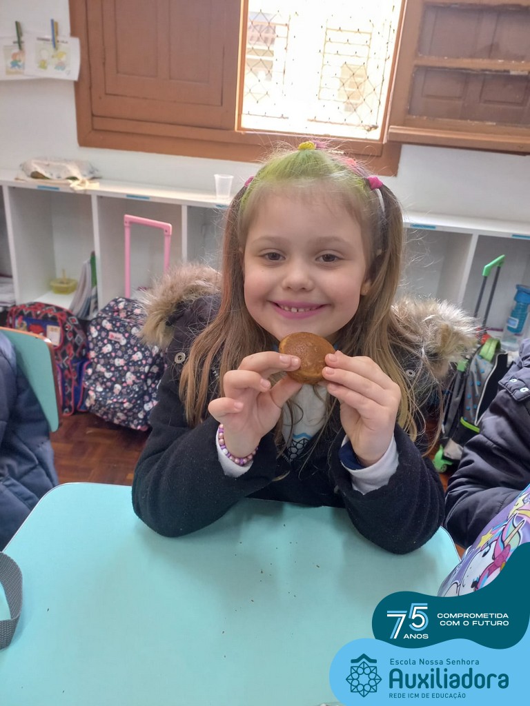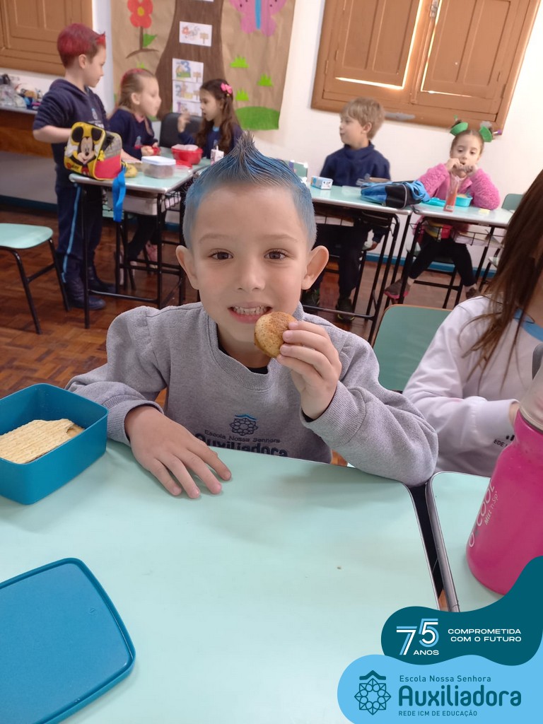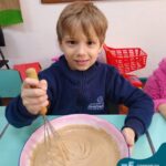 As turmas do Pré 2 realizaram a receita de cupcake de chocolate em comemoração ao aniversário da escola.