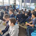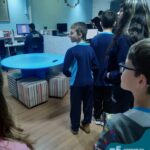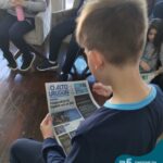 Dentro das atividades realizadas visitamos o Jornal O Alto Uruguai para ver como as reportagens e as publicações são feitas e, na sala de aula, os alunos escreveram suas notícias e apresentaram um jornal falado.