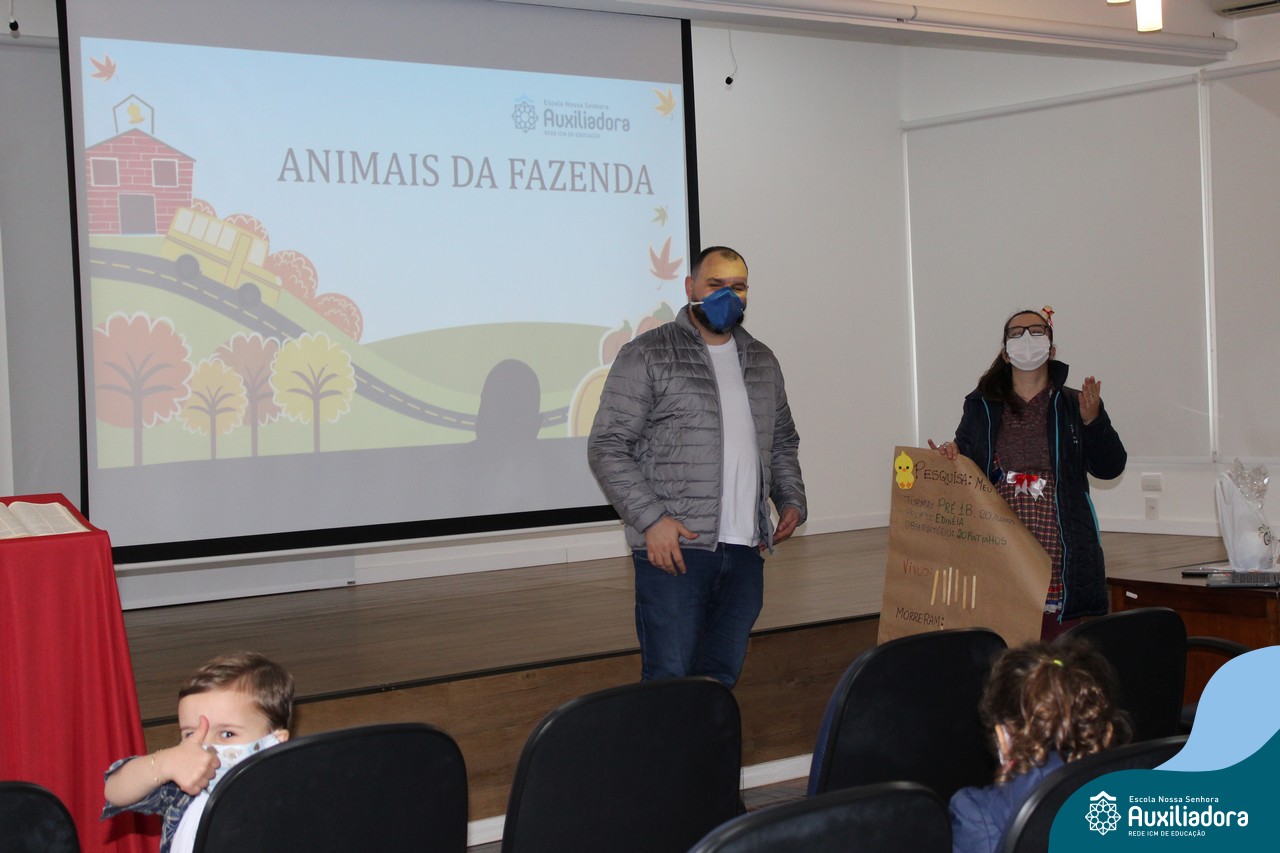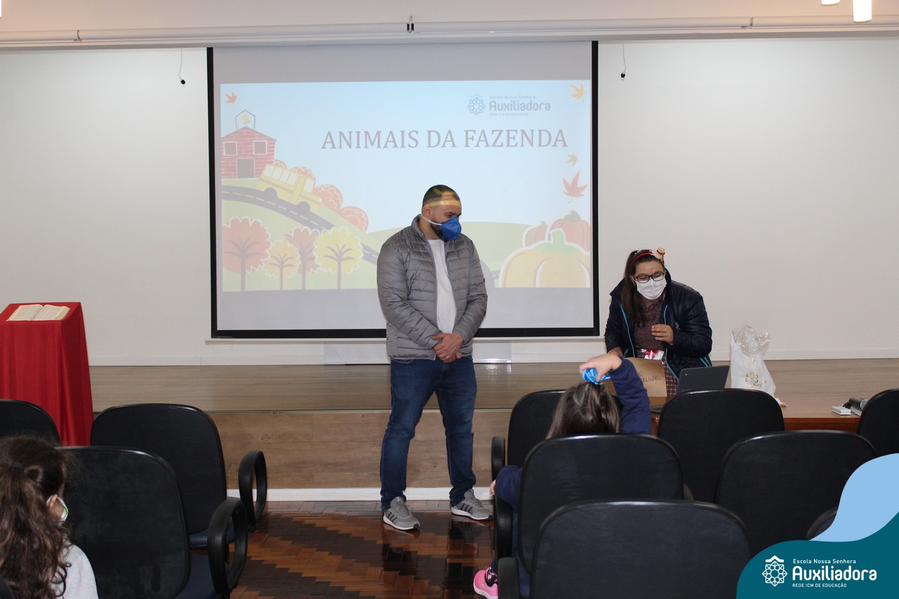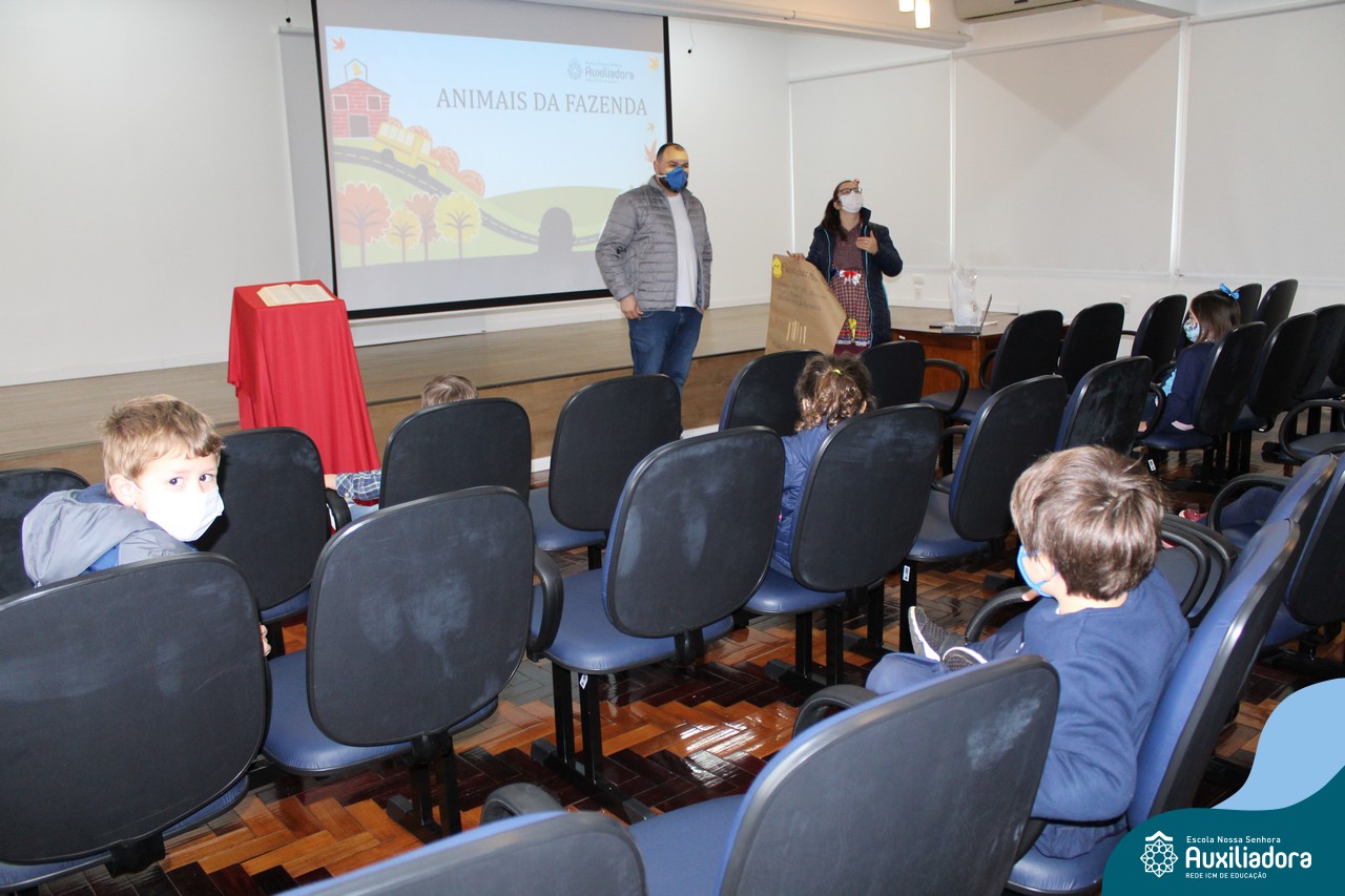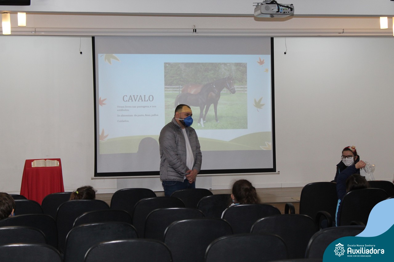 Nesta quinta-feira, 17, realizou-se nas dependências da Escola Nossa Senhora Auxiliadora uma palestra educativa com a temática Aprendendo com os animais da Fazenda. O palestrante foi o Médico Veterinário Wagner Rugeri, pai do aluno José Dall’Agnol Rugeri.
