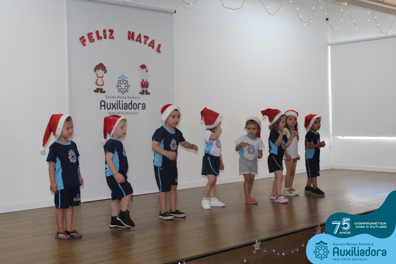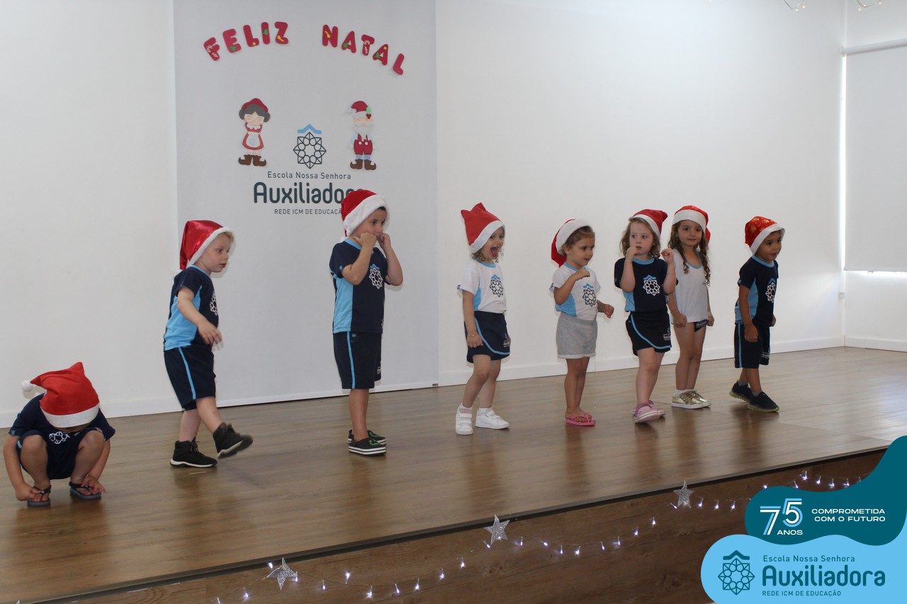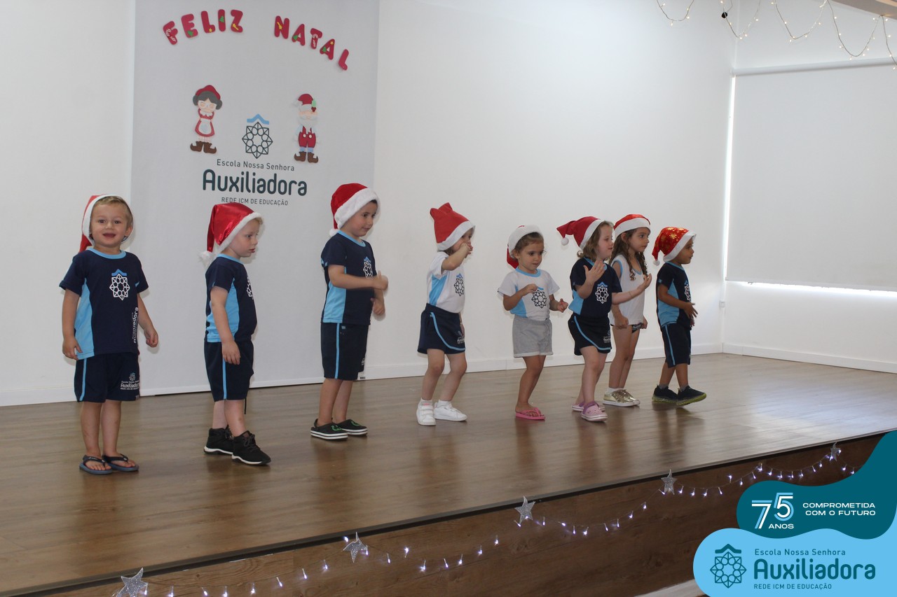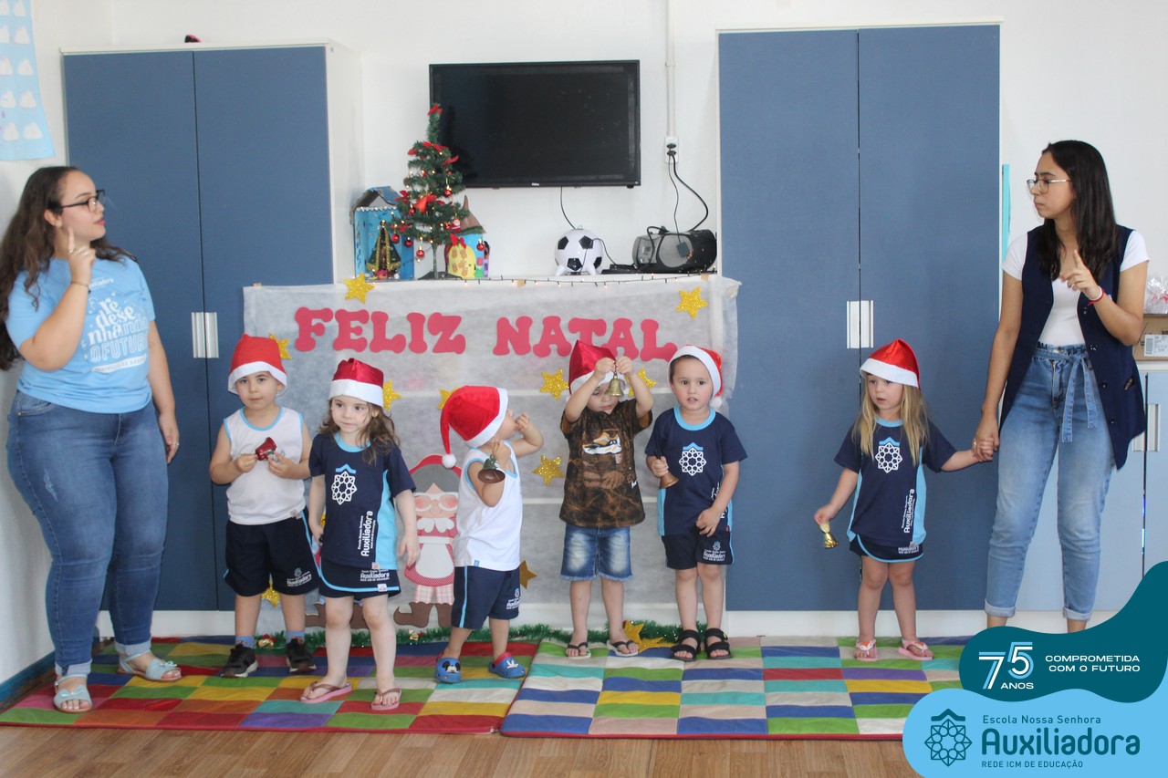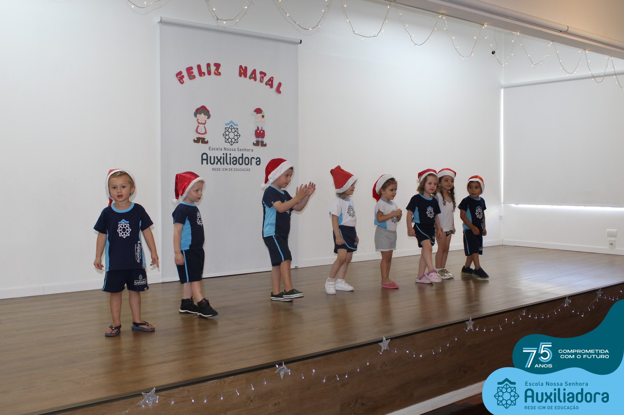 A turma do Maternal 1 apresentou para seus familiares duas músicas natalinas: “Bate o Sino” e “Deixei meu Sapatinho”.