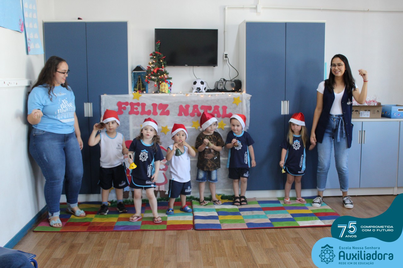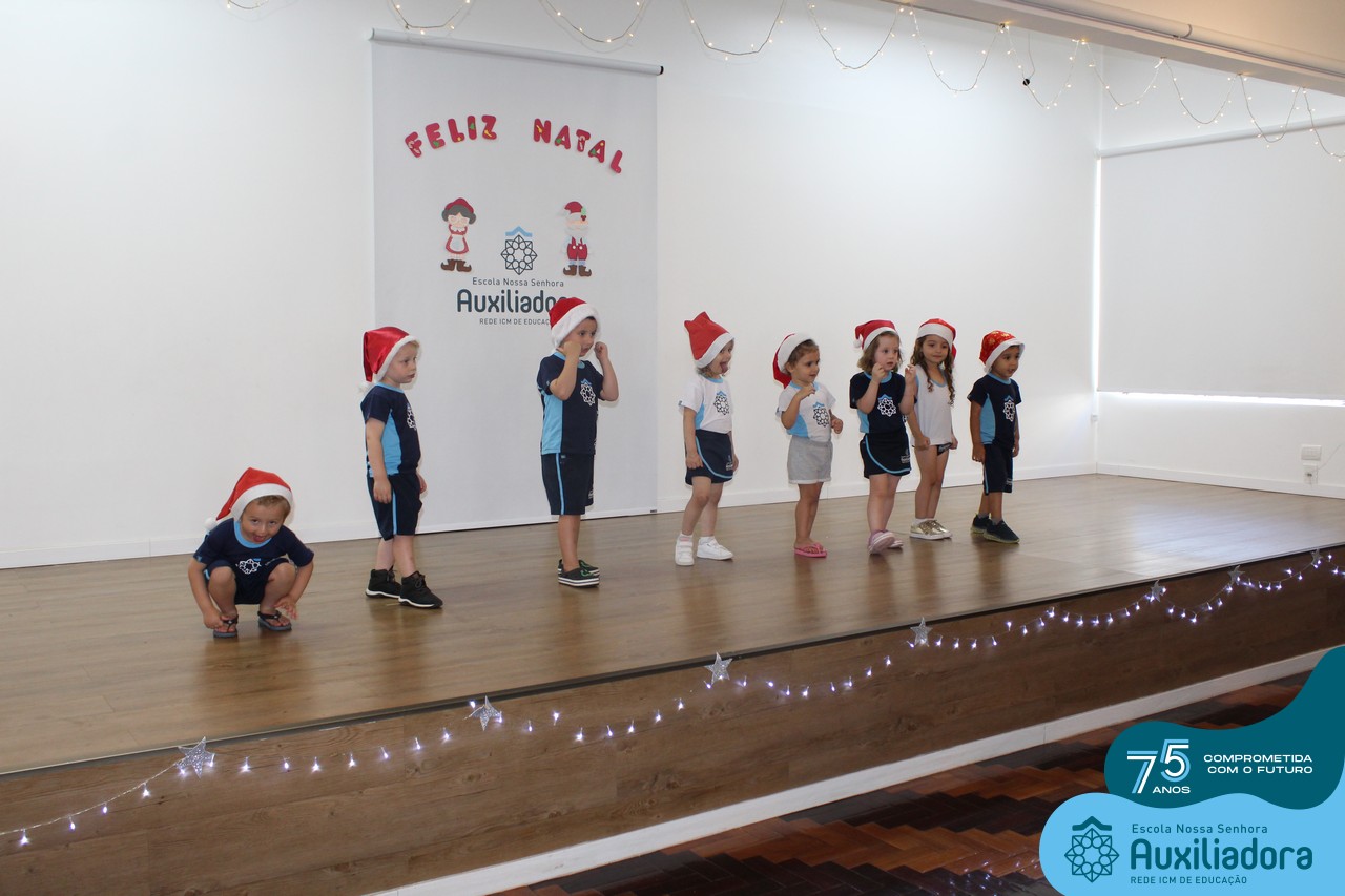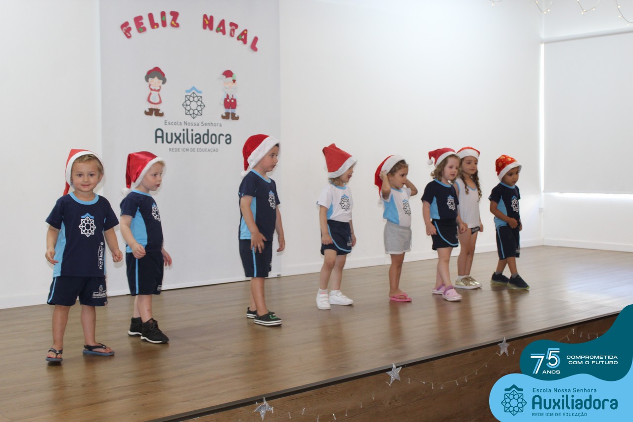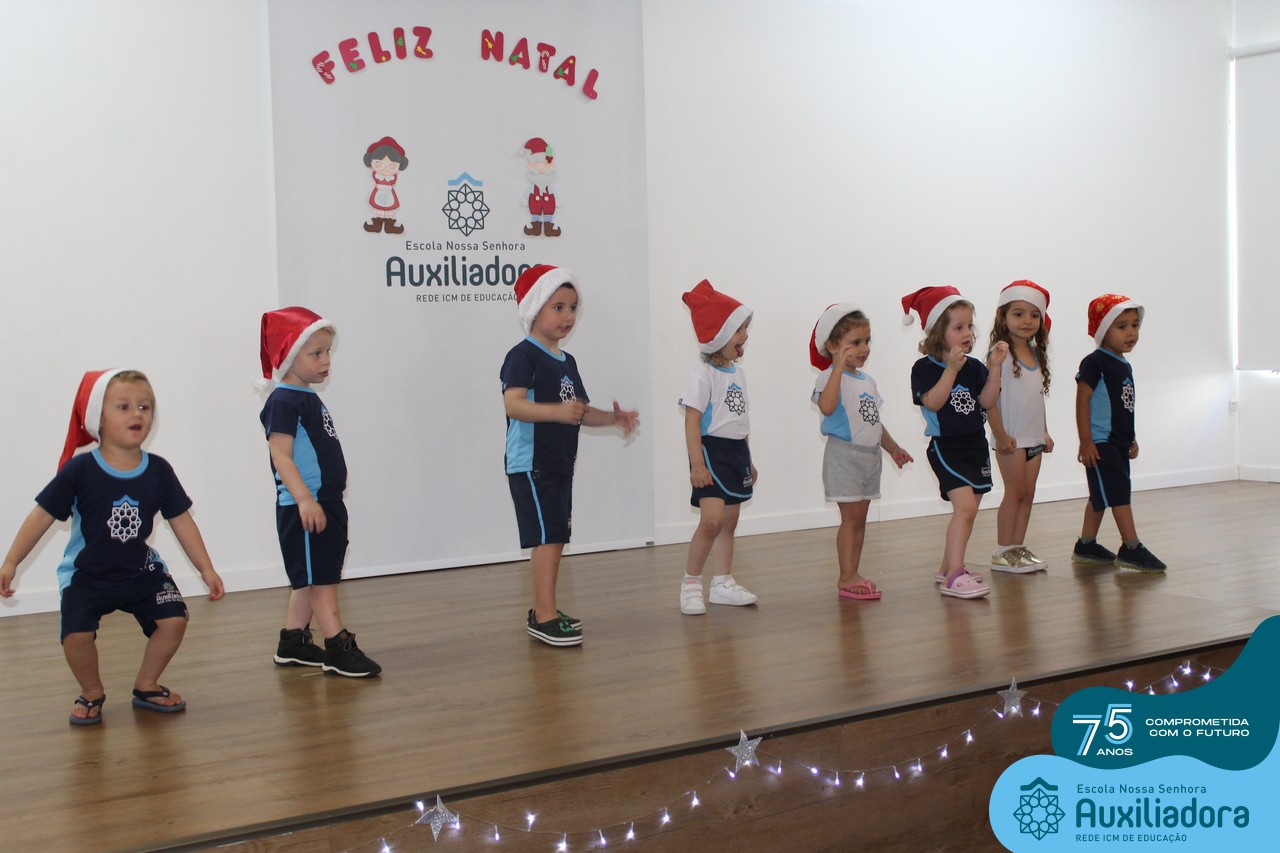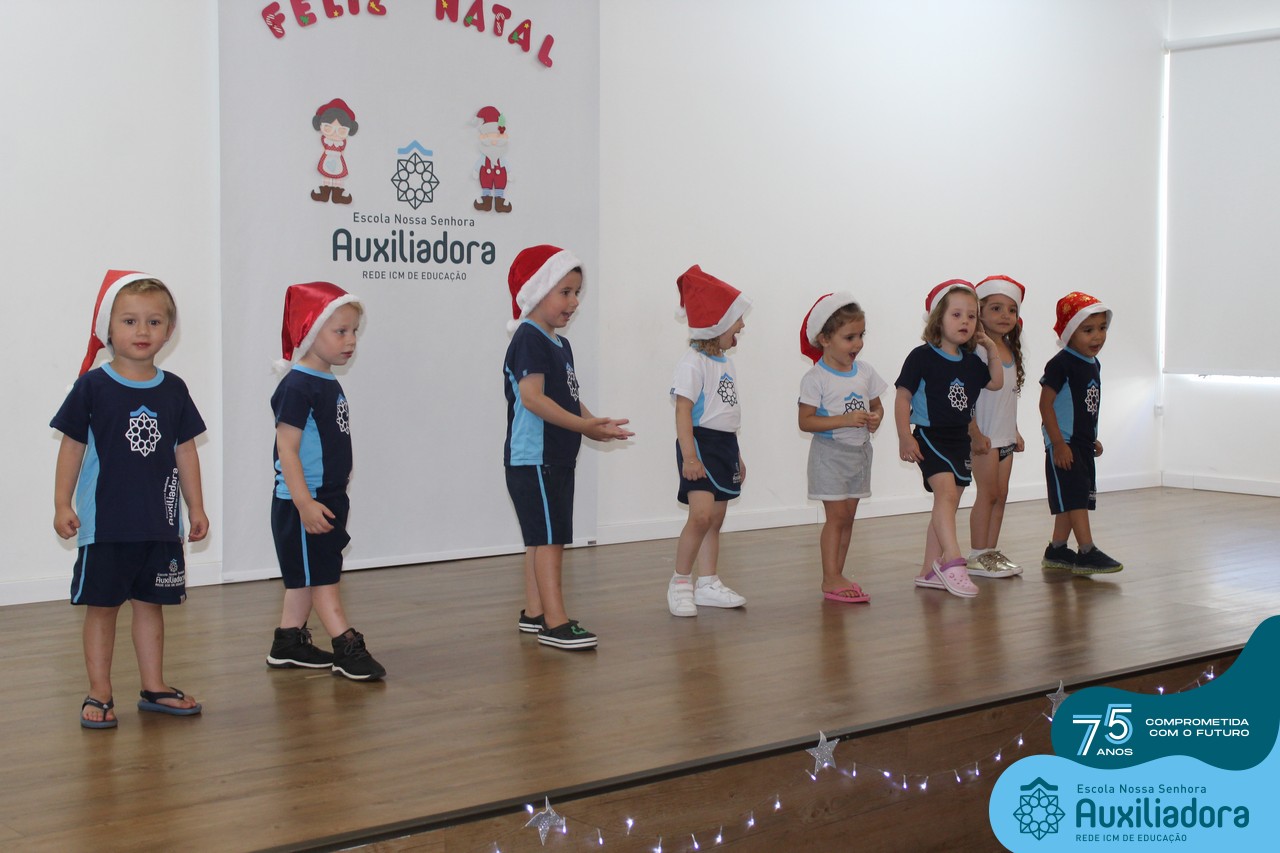 A turma do Maternal 1 apresentou para seus familiares duas músicas natalinas: “Bate o Sino” e “Deixei meu Sapatinho”.