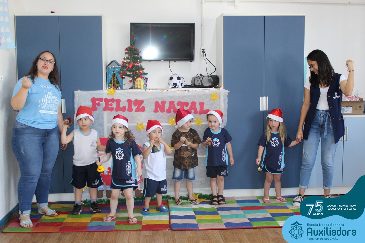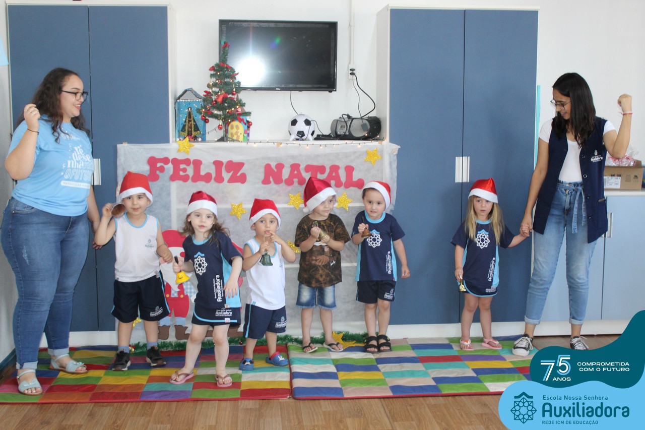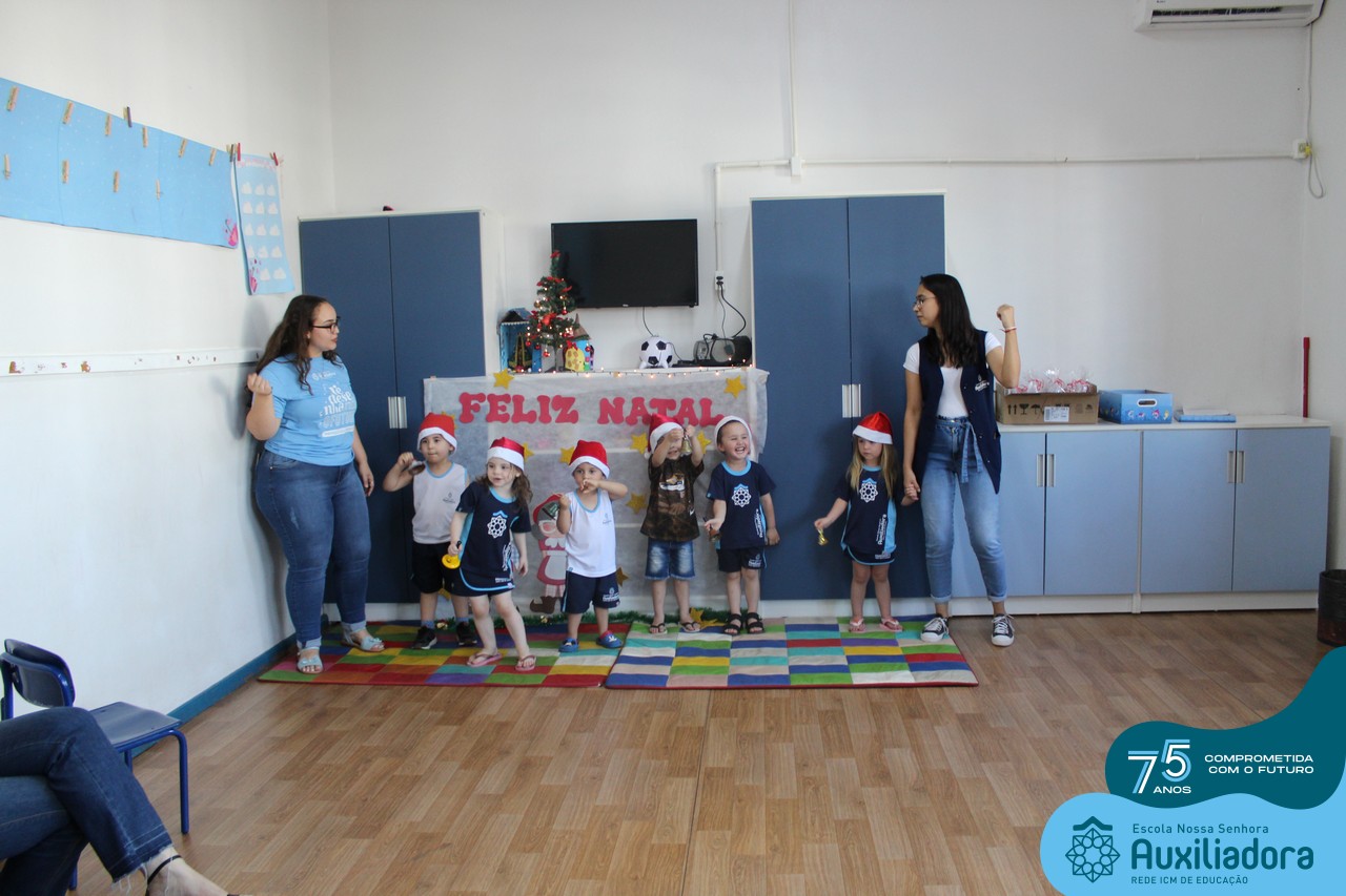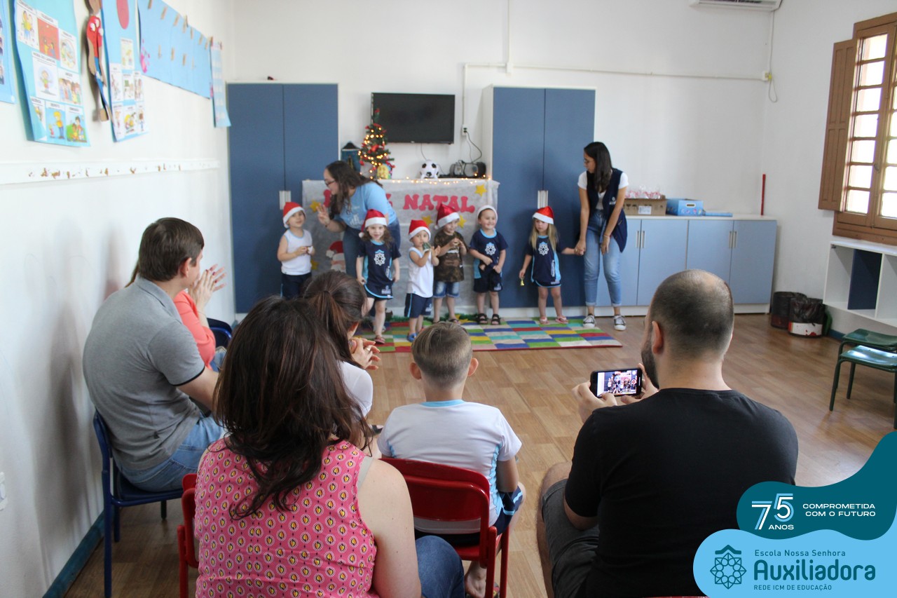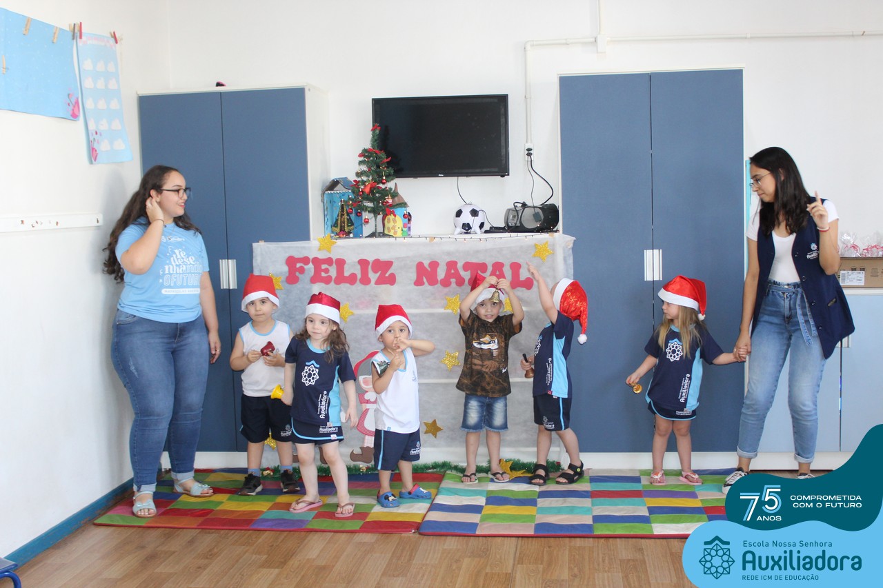 A turma do Maternal 1 apresentou para seus familiares duas músicas natalinas: “Bate o Sino” e “Deixei meu Sapatinho”.