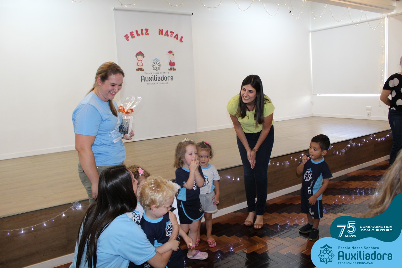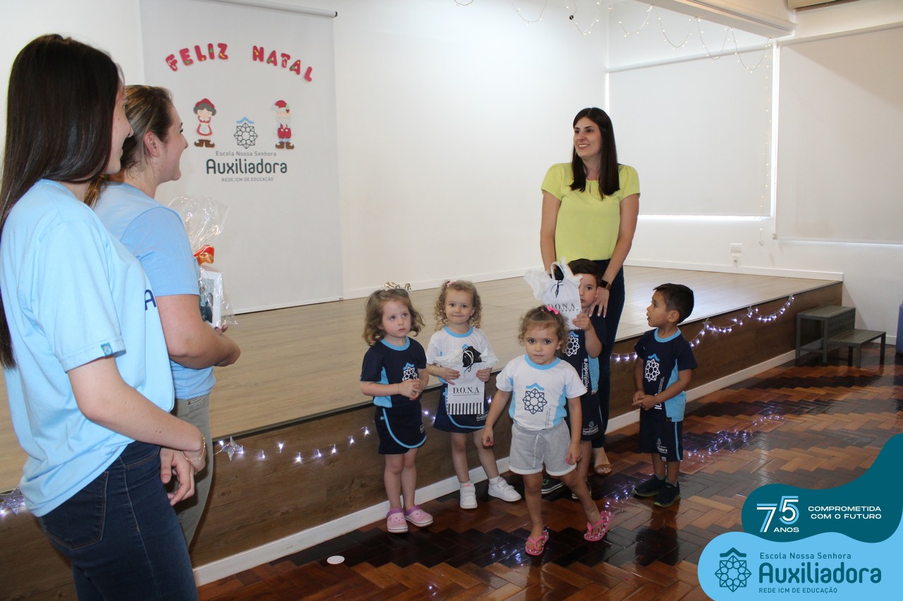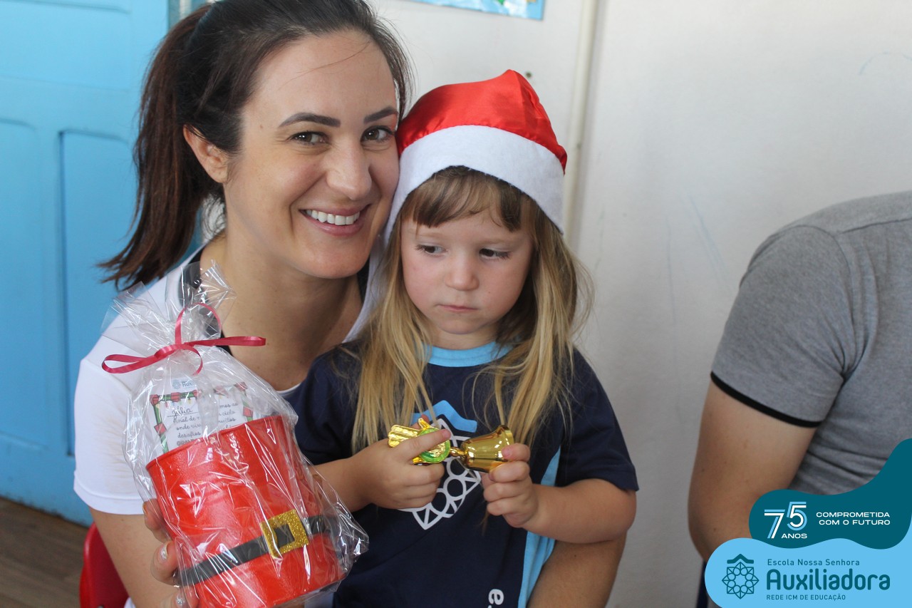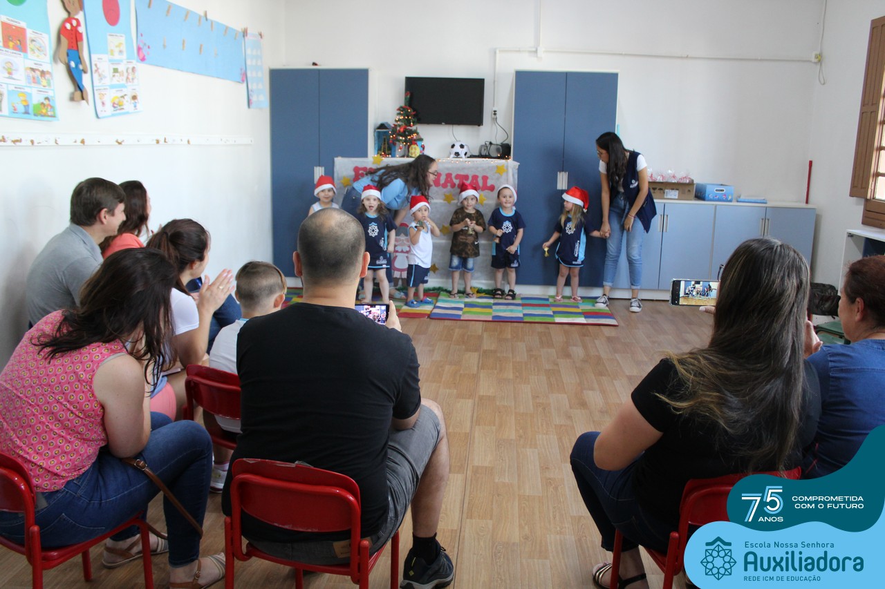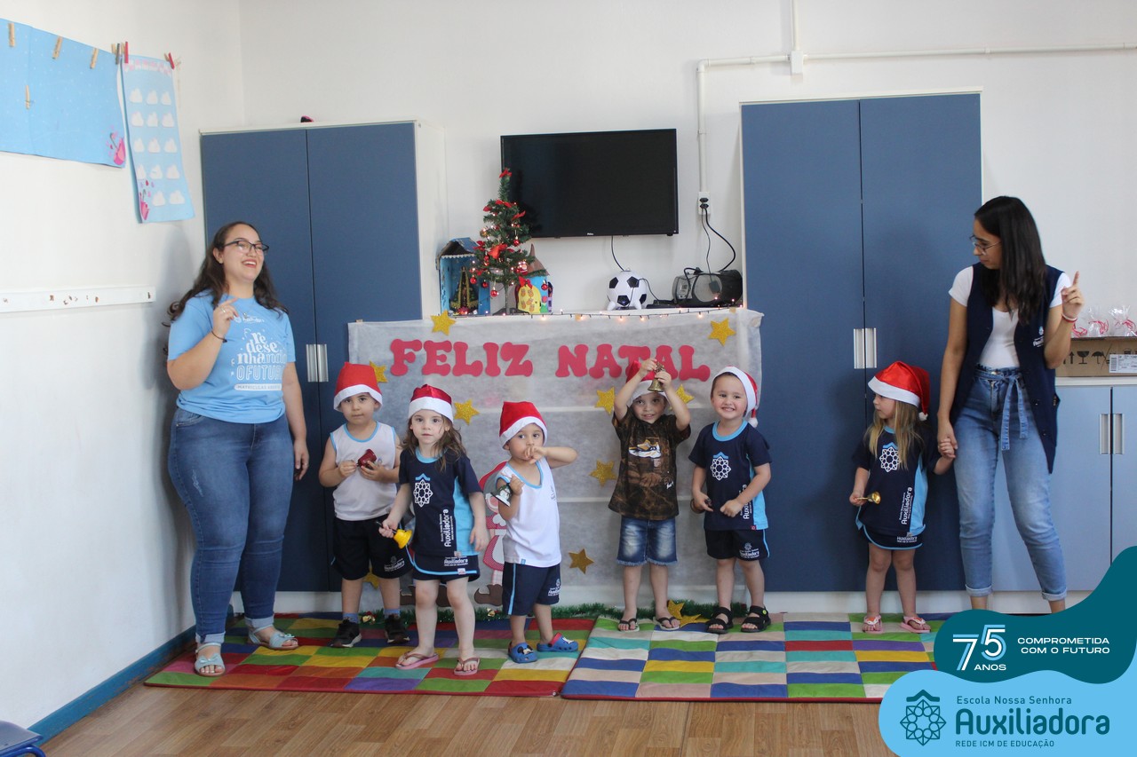 A turma do Maternal 1 apresentou para seus familiares duas músicas natalinas: “Bate o Sino” e “Deixei meu Sapatinho”.