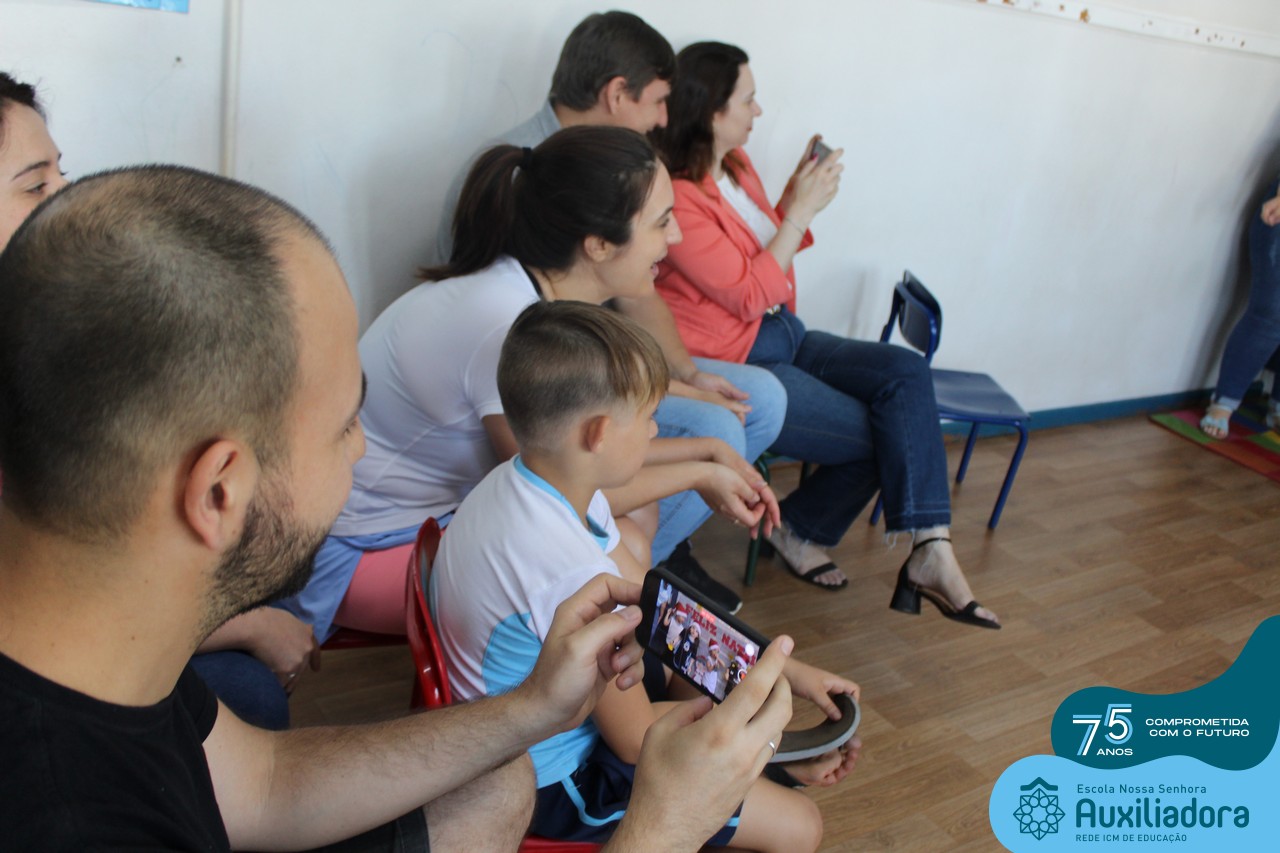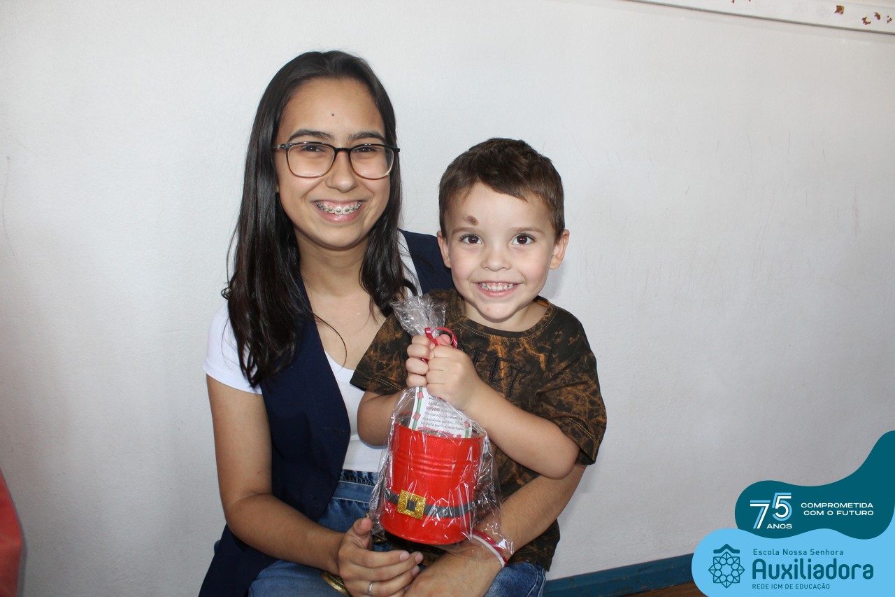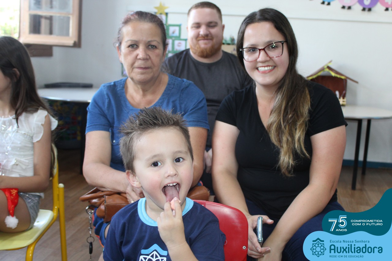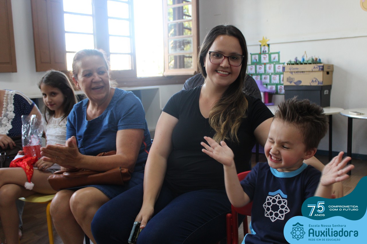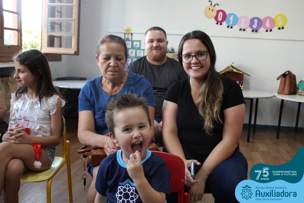 A turma do Maternal 1 apresentou para seus familiares duas músicas natalinas: “Bate o Sino” e “Deixei meu Sapatinho”.