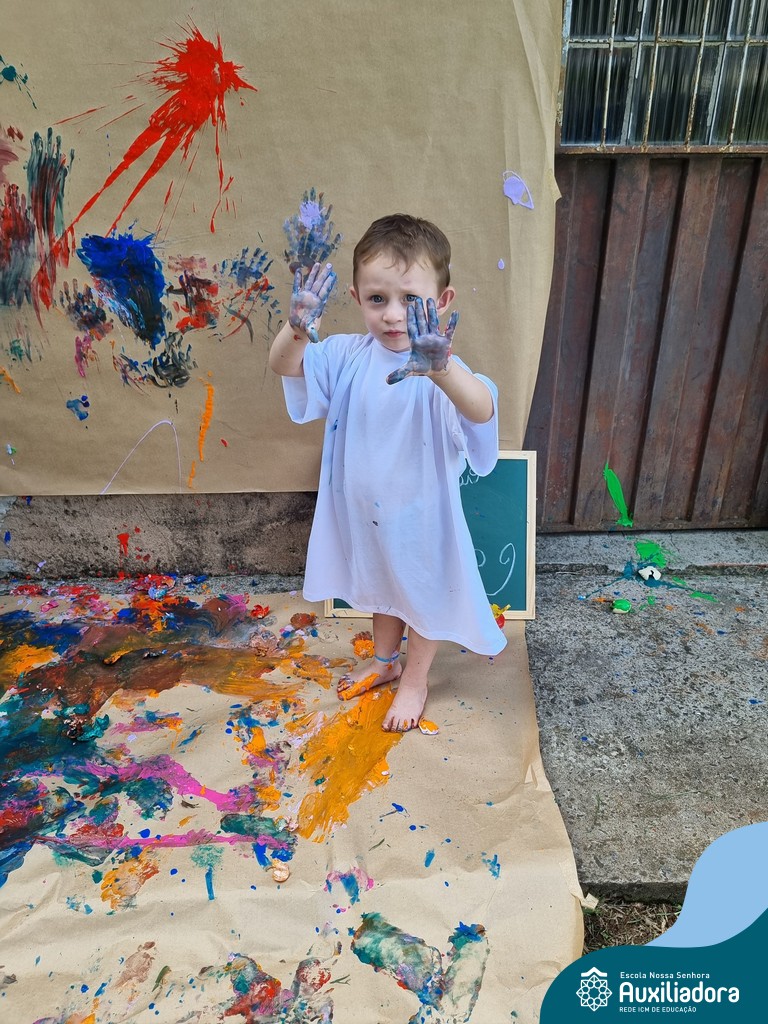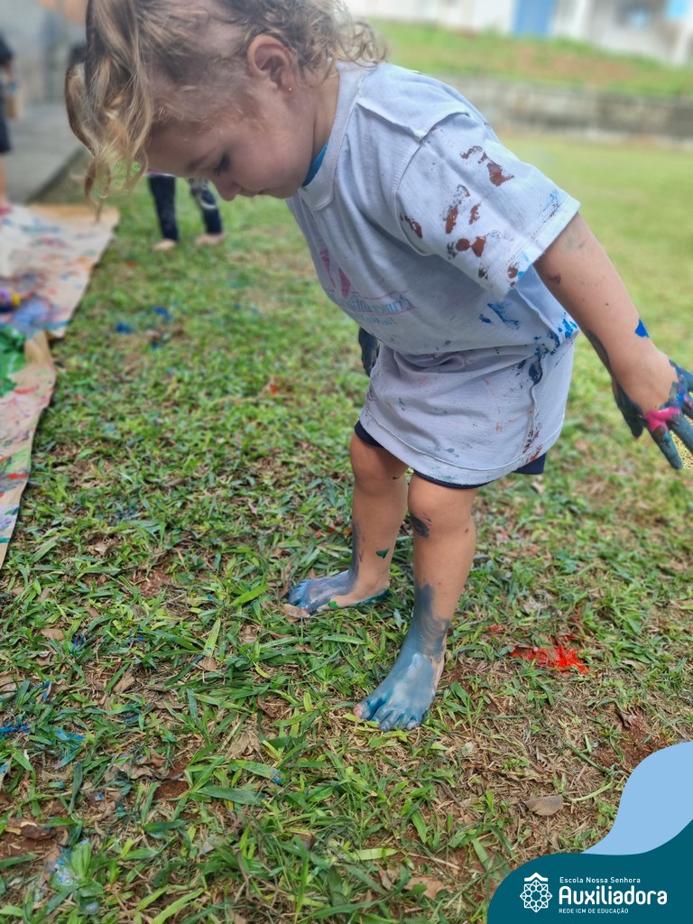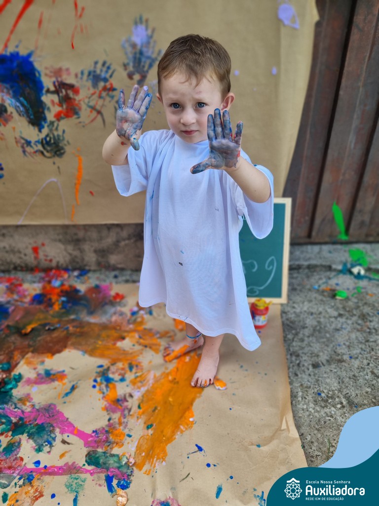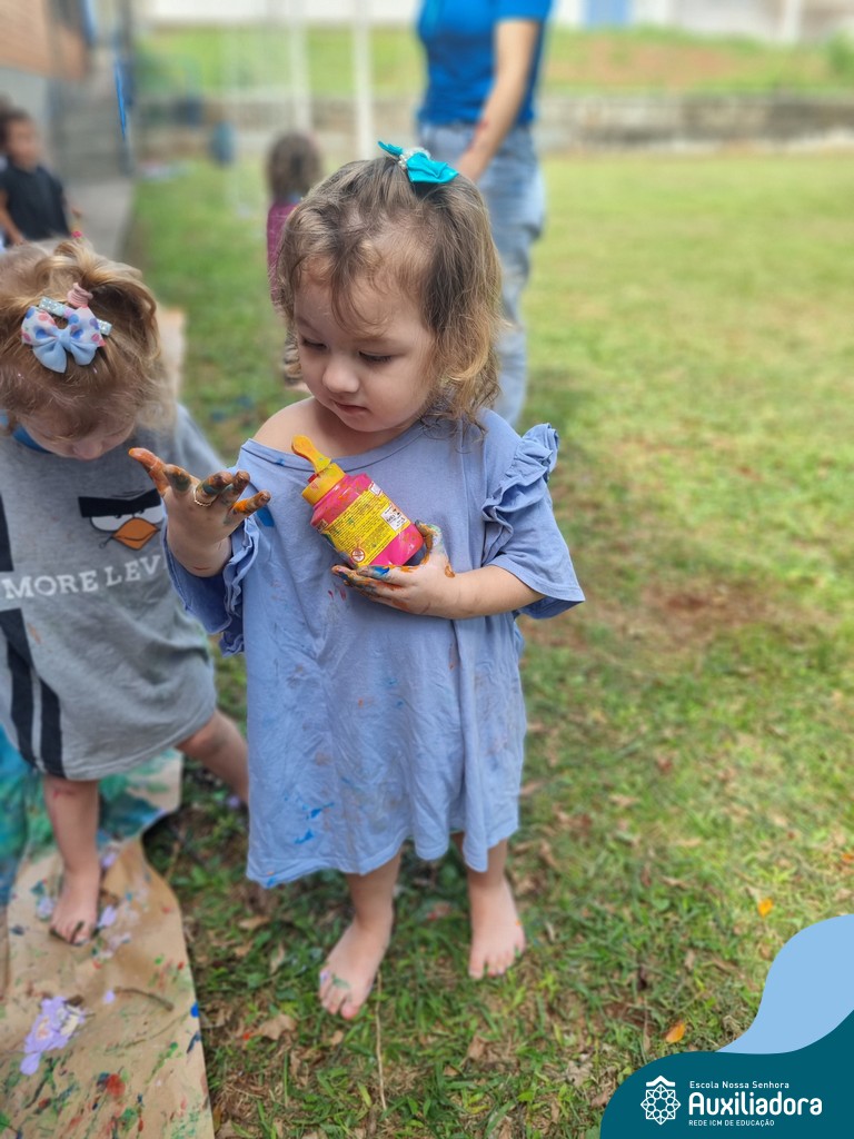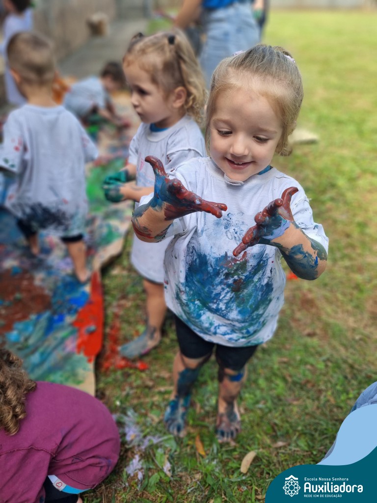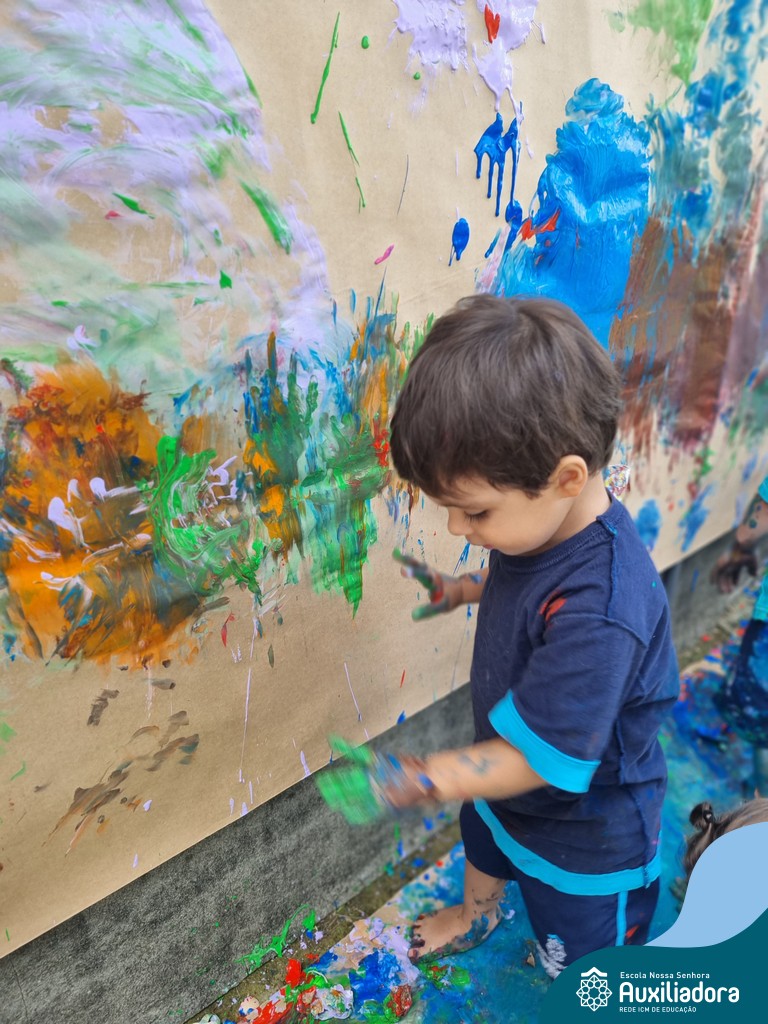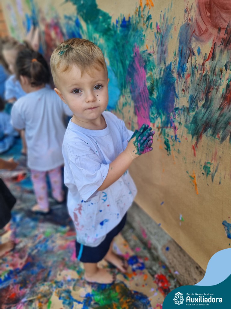 A atividade desenvolvida com as turmas de Maternal 1A e Maternal 1B proporcionou aos alunos a oportunidade de explorar a combinação de cores e padrões ao arremessar os ovos, promovendo a expressão artística. Ao arremessar os ovos, habilidades motoras finas e grossas foram aprimoradas, auxiliando no desenvolvimento físico das crianças. A integração das turmas promoveu a cooperação e a comunicação entre os pares, incentivando o trabalho em equipe.