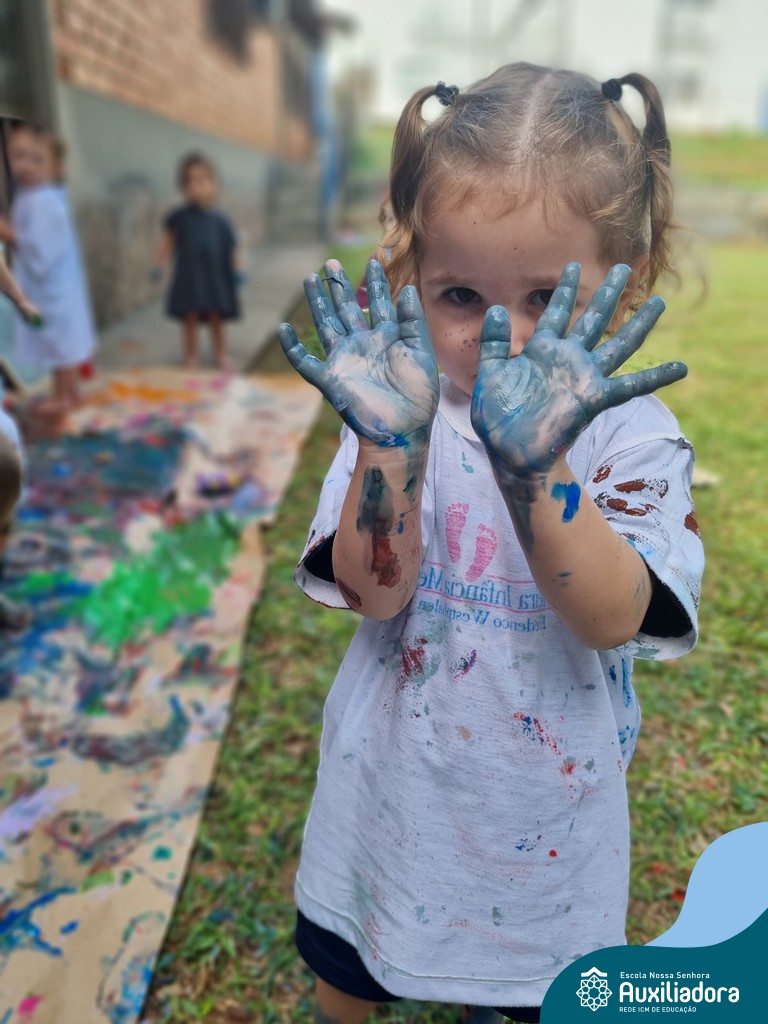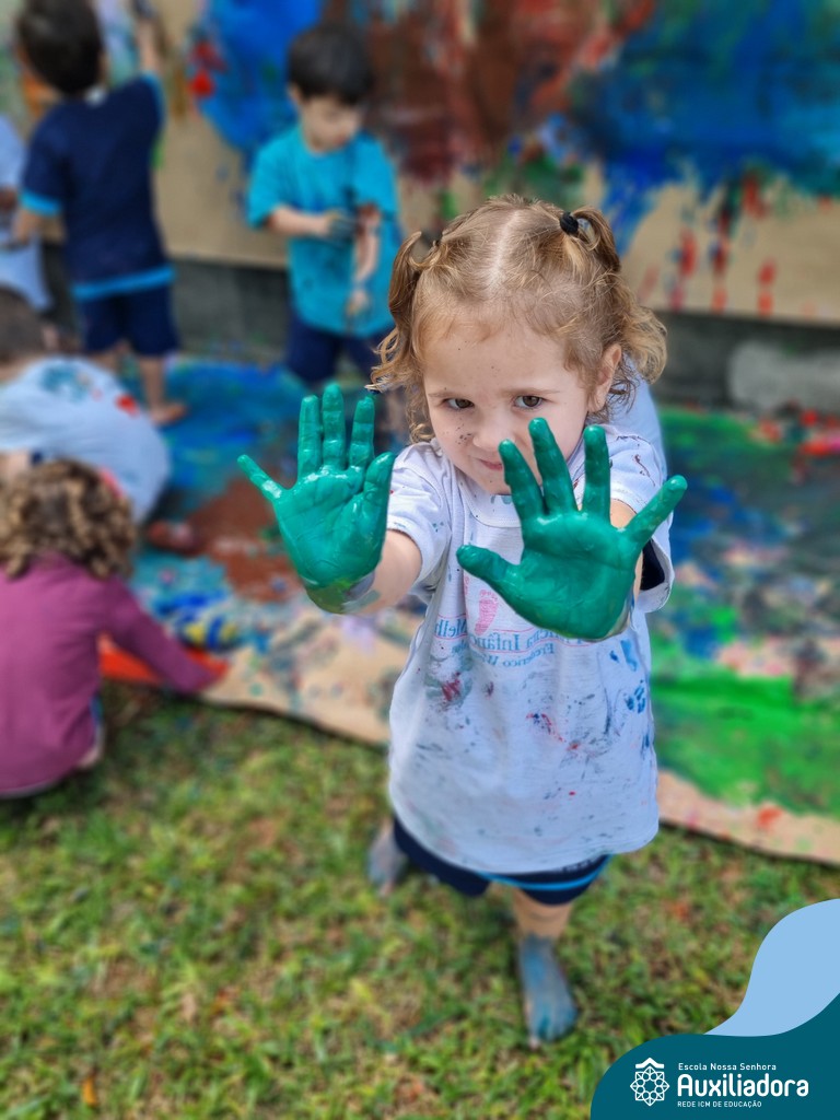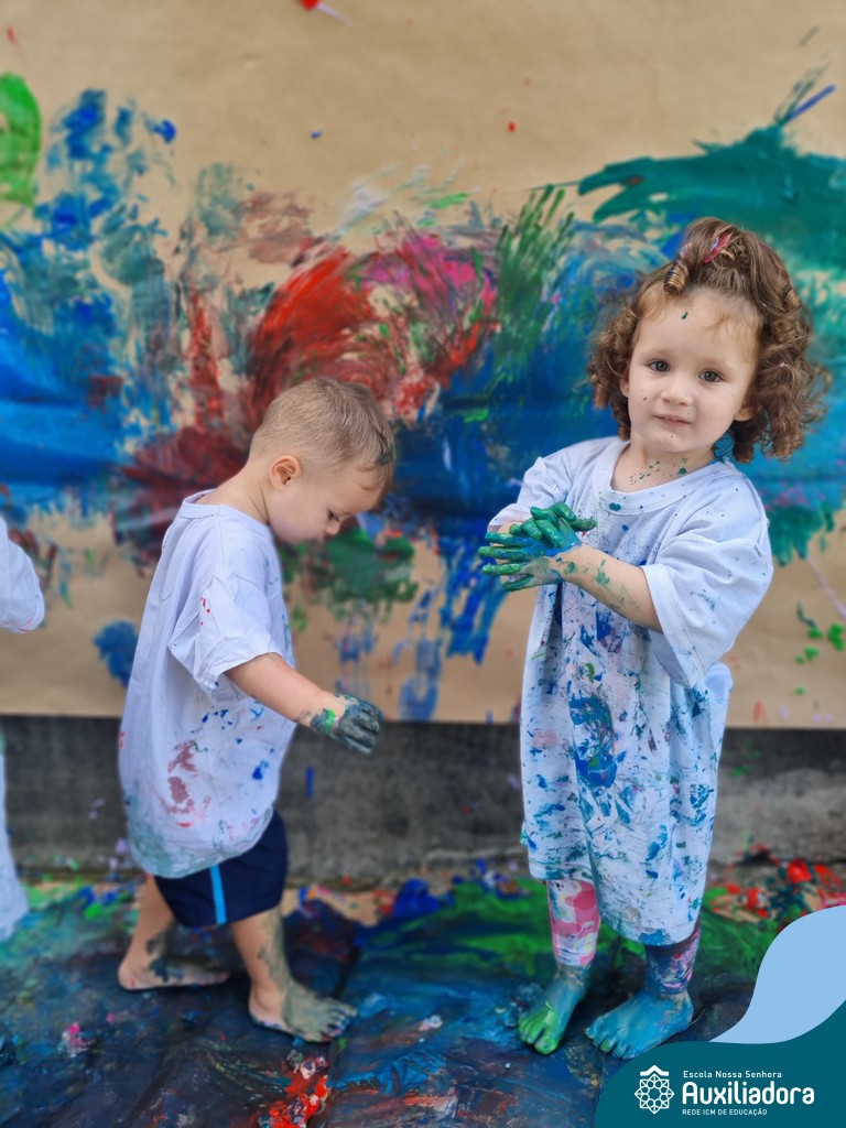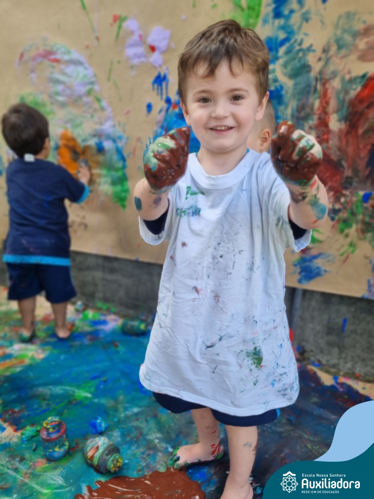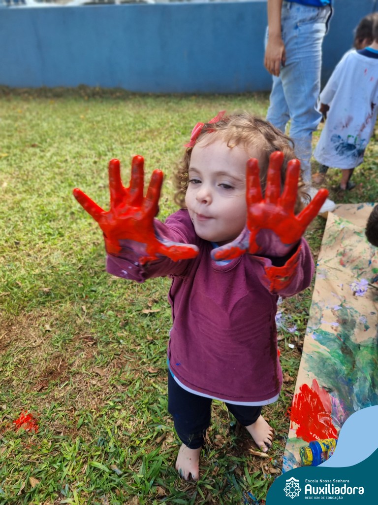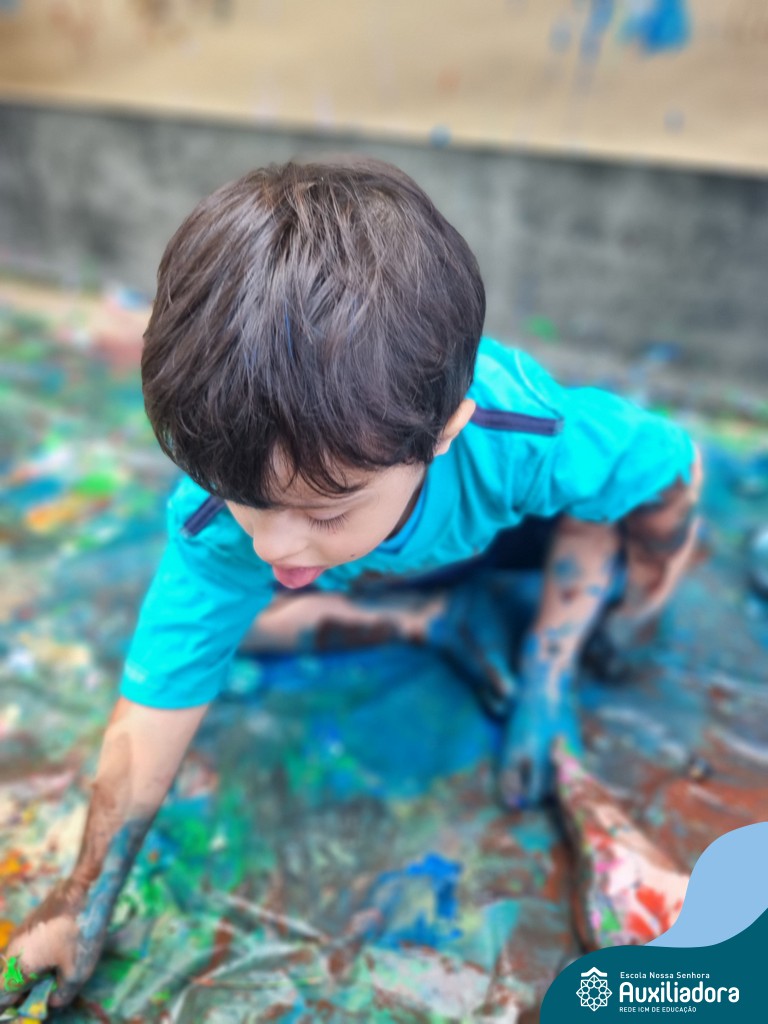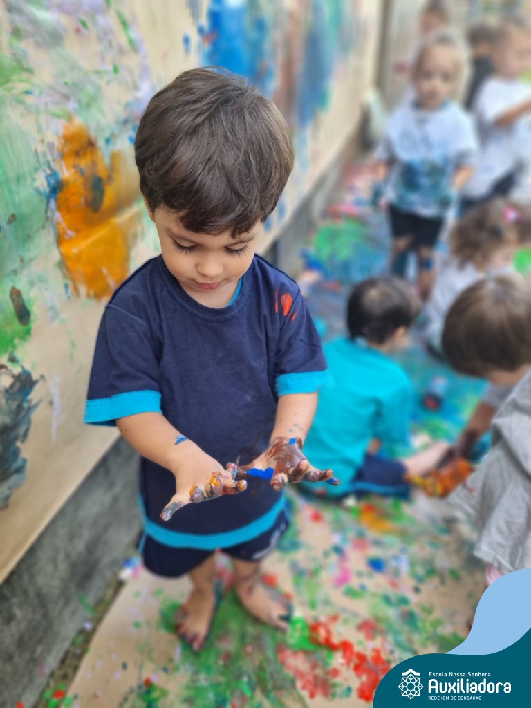 A atividade desenvolvida com as turmas de Maternal 1A e Maternal 1B proporcionou aos alunos a oportunidade de explorar a combinação de cores e padrões ao arremessar os ovos, promovendo a expressão artística. Ao arremessar os ovos, habilidades motoras finas e grossas foram aprimoradas, auxiliando no desenvolvimento físico das crianças. A integração das turmas promoveu a cooperação e a comunicação entre os pares, incentivando o trabalho em equipe.