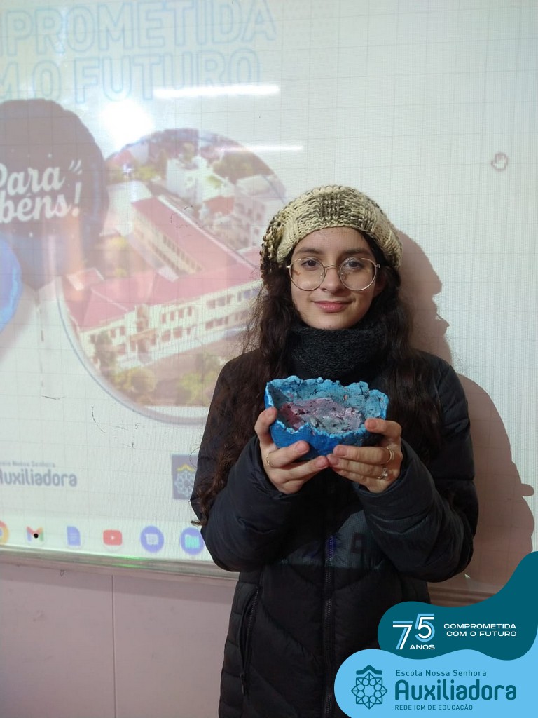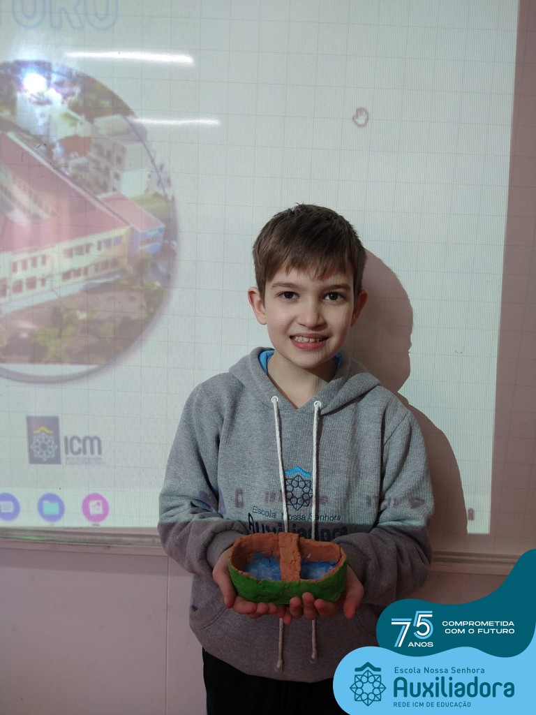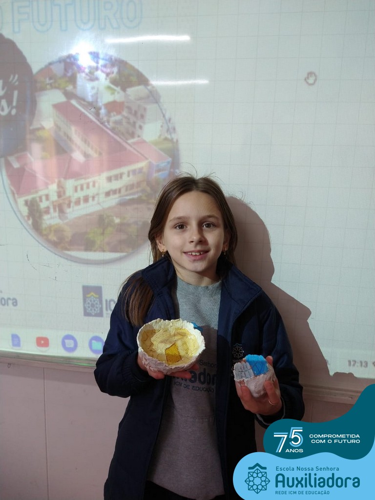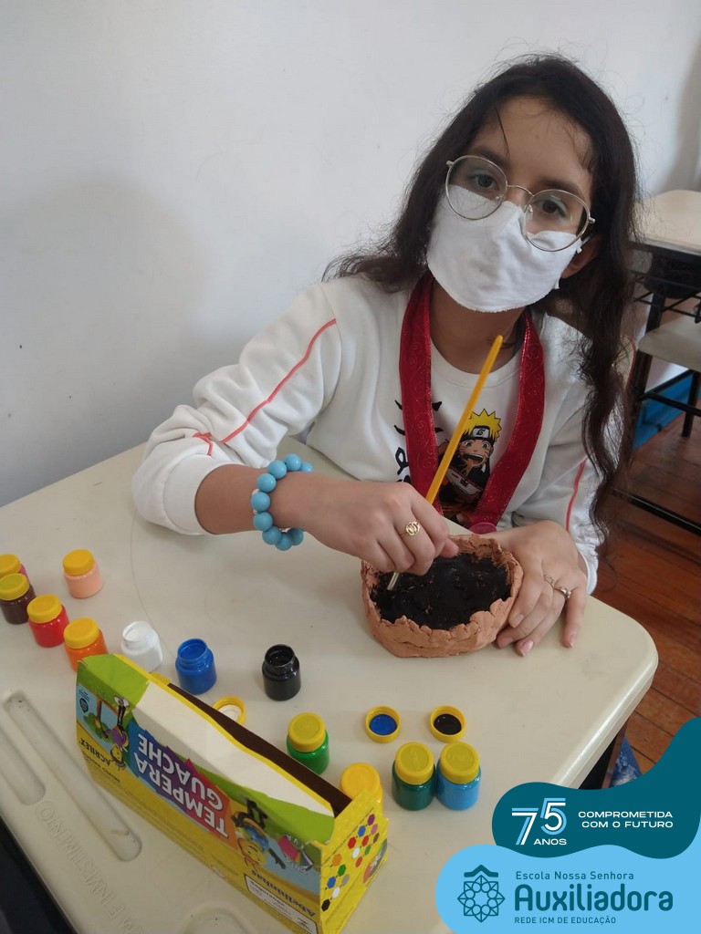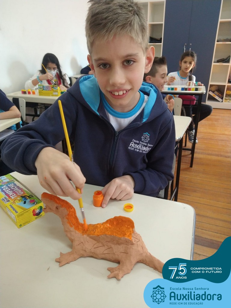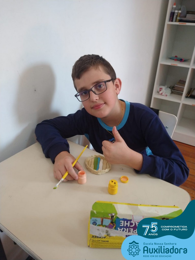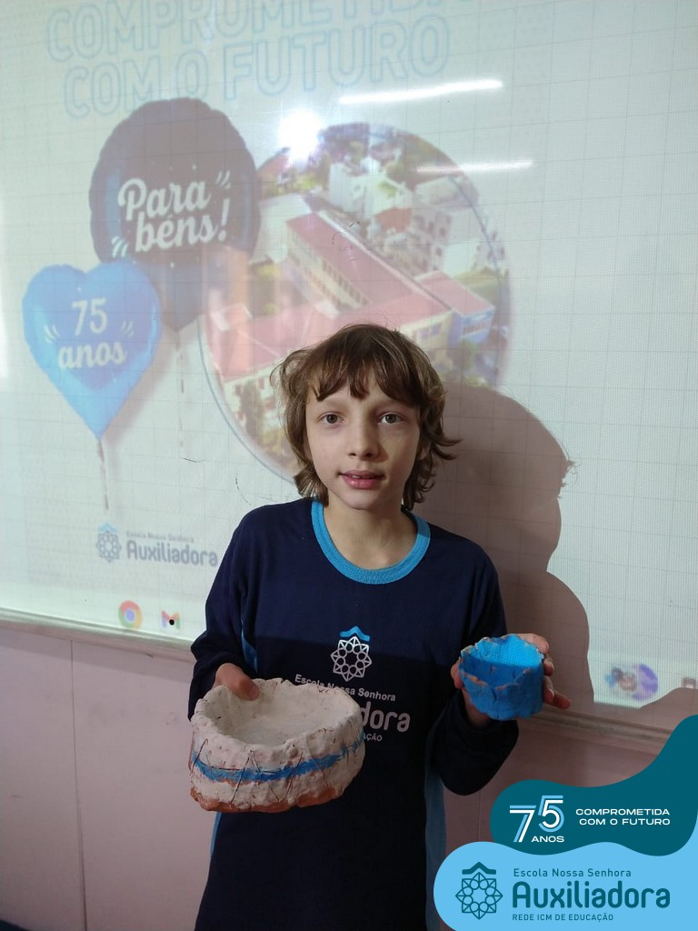 Arte Marajoara: ao estudar a cultura indígena presente em território brasileiro os estudantes do 4º ano reproduziram, a partir do uso de argila, objetos da Arte Marajoara, que são traços da história cultural baseada na produção de um gênero de cerâmica que era desenvolvida por índios que moravam na ilha de Marajó.
