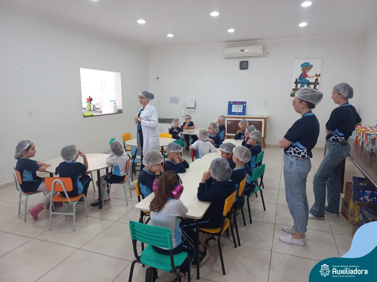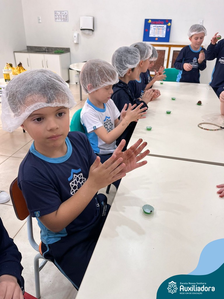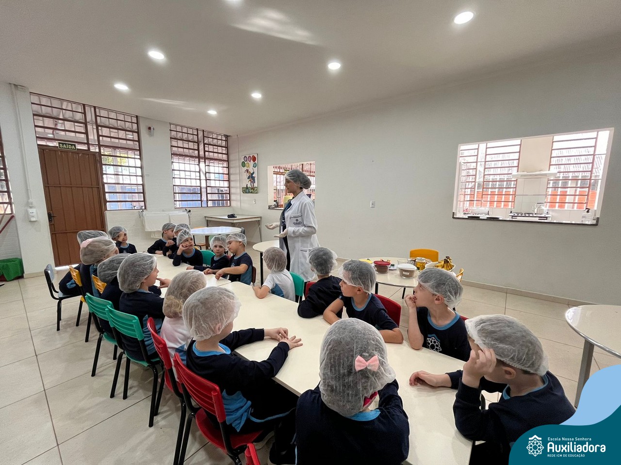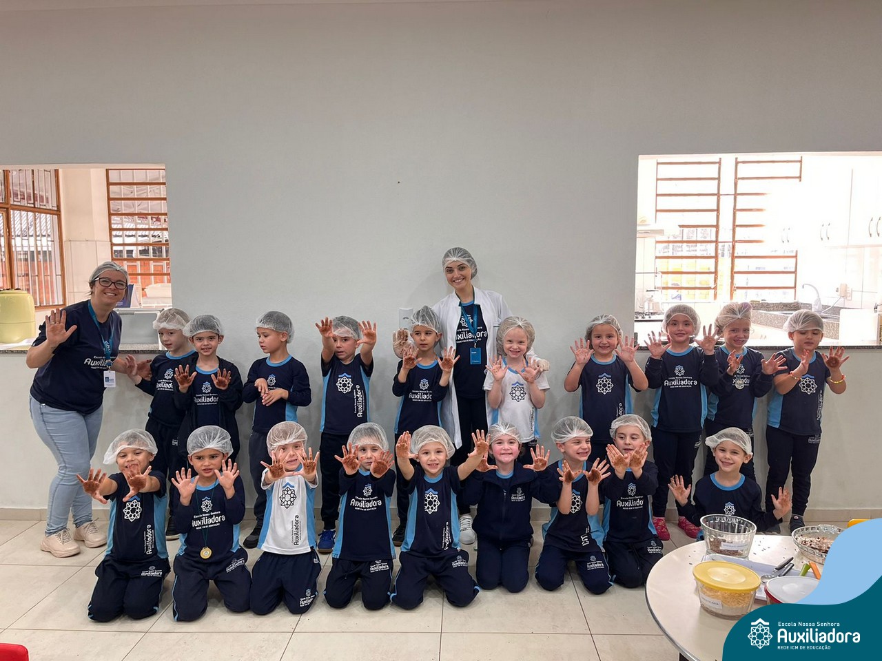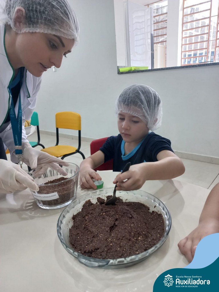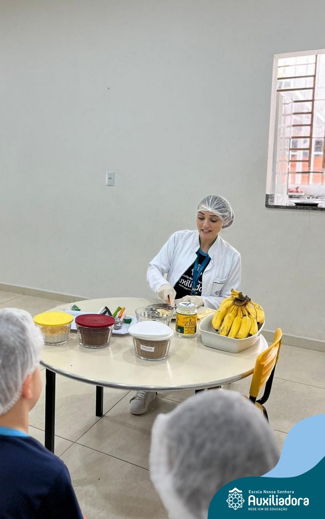 A nutricionista da escola, juntamente com as professoras do Pré 2, promoveram a atividade sobre alimentação saudável e envolveram as crianças no preparo da receita, aprendendo sobre os ingredientes e os benefícios nutricionais. Esse engajamento desperta o interesse por alimentos frescos e naturais, reduzindo a resistência a experimentar novos sabores e texturas. A nutricionista reforçou sobre hábitos alimentares saudáveis, e fomentou a importância de escolhas alimentares conscientes.