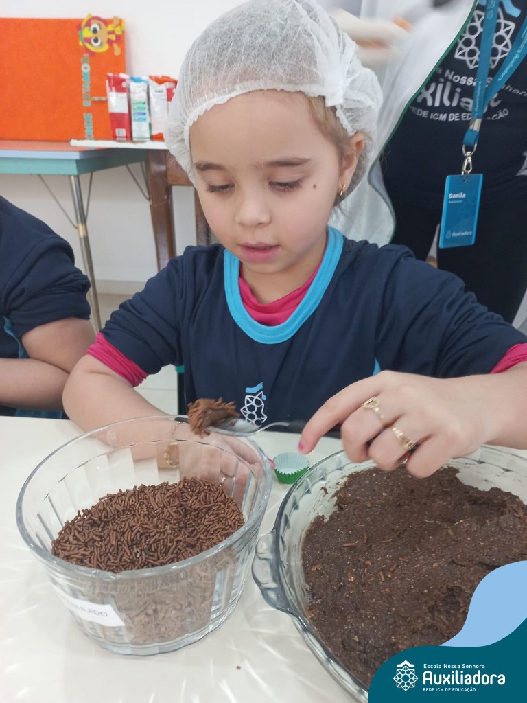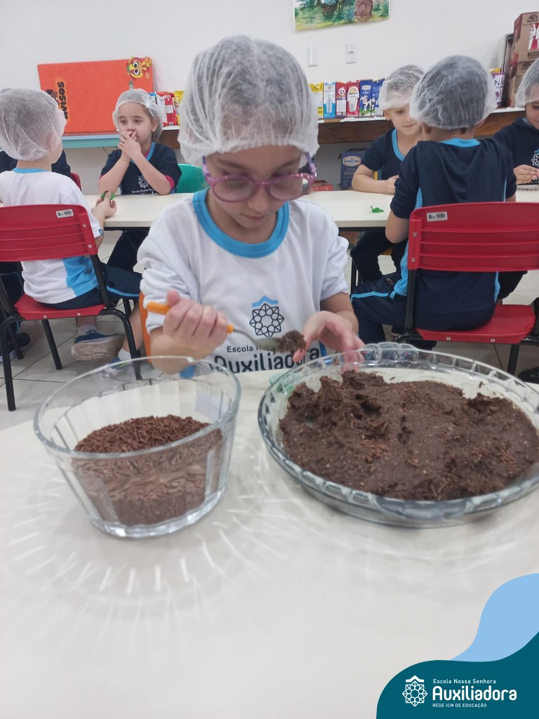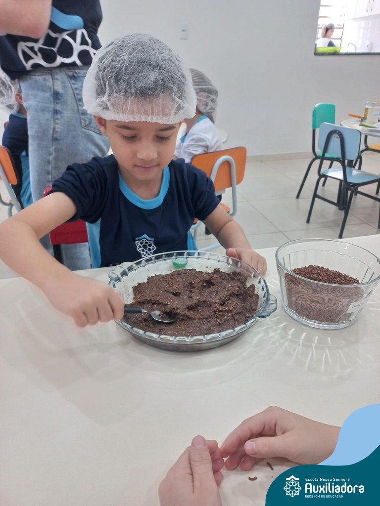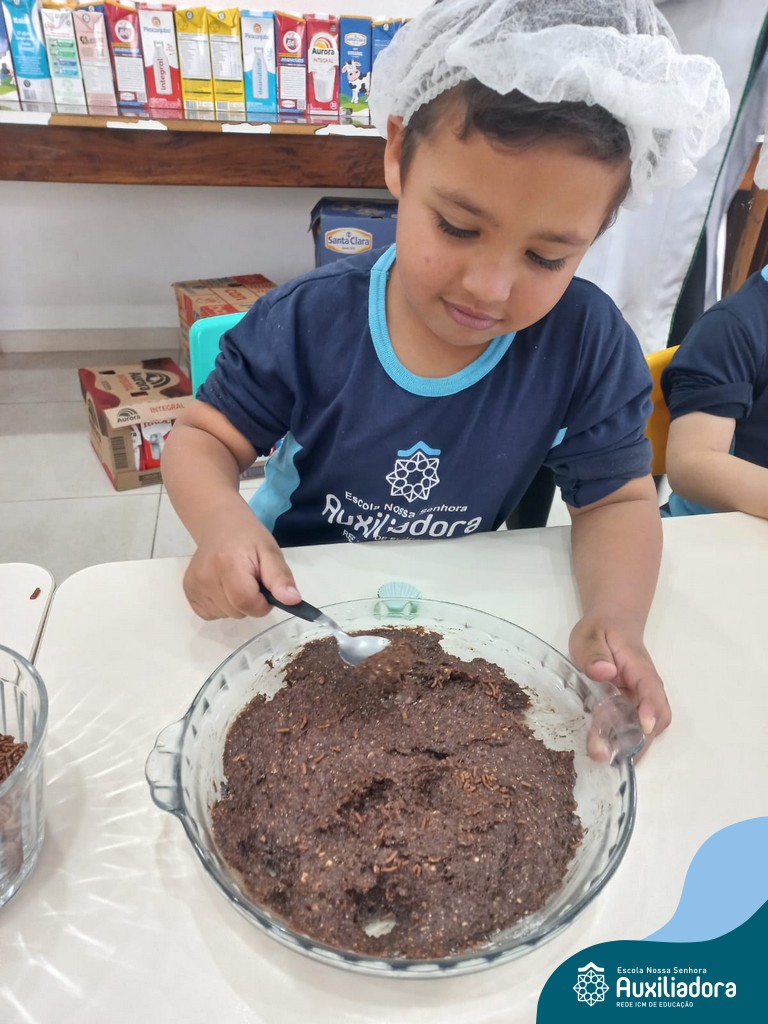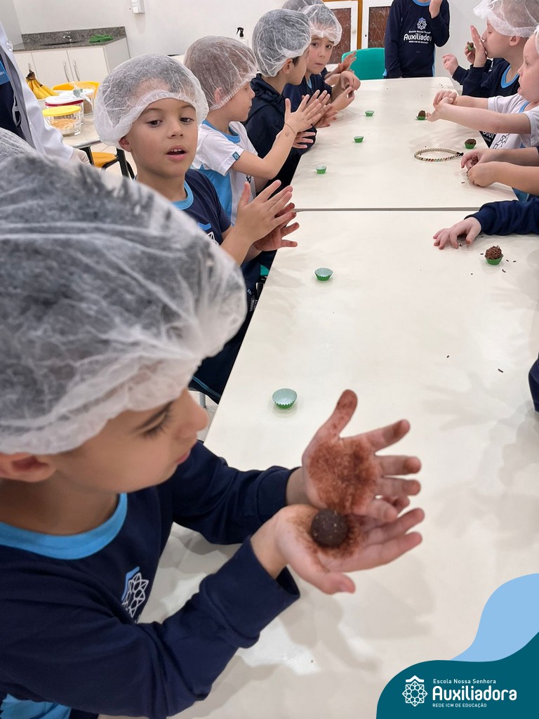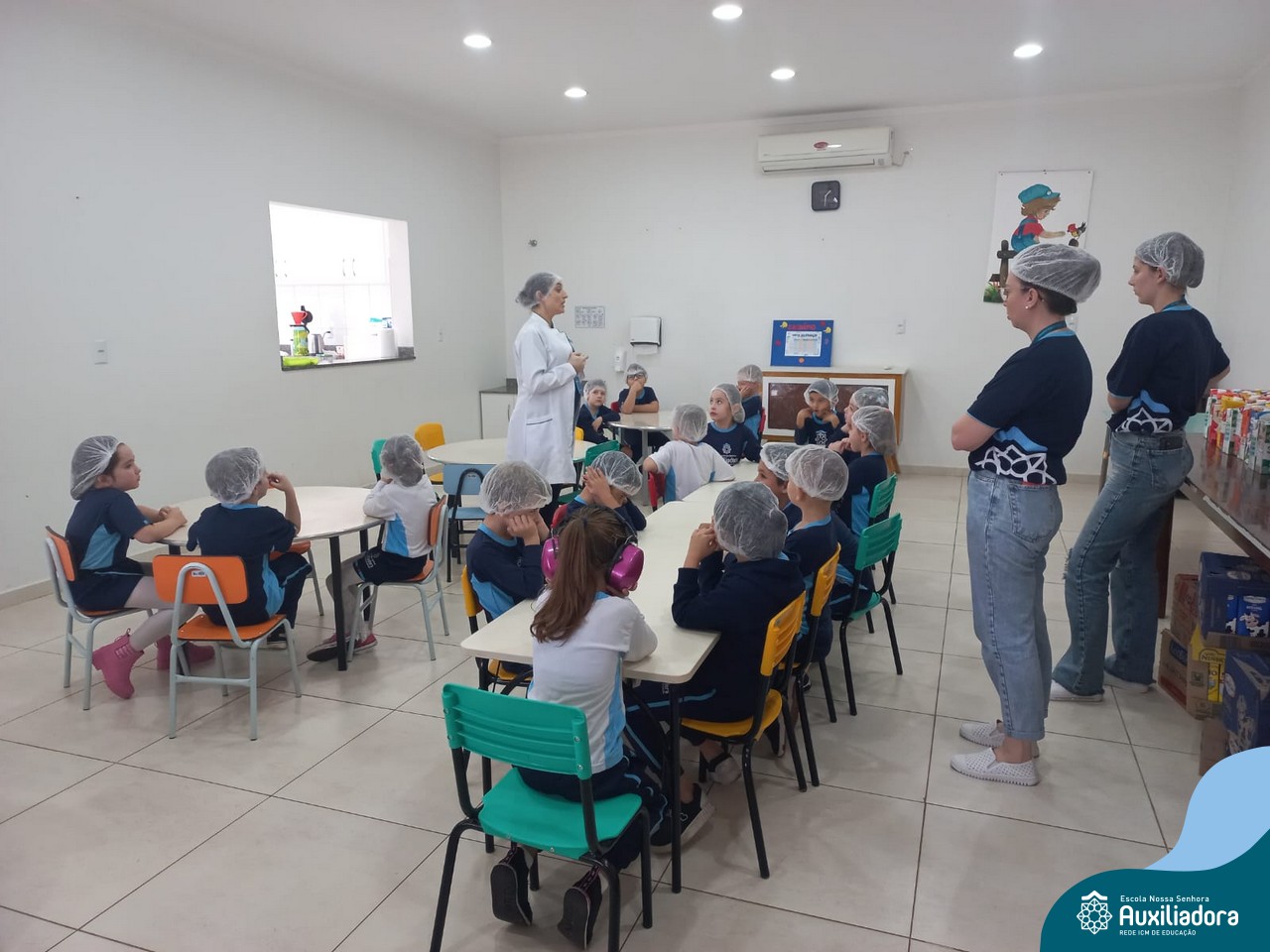 A nutricionista da escola, juntamente com as professoras do Pré 2, promoveram a atividade sobre alimentação saudável e envolveram as crianças no preparo da receita, aprendendo sobre os ingredientes e os benefícios nutricionais. Esse engajamento desperta o interesse por alimentos frescos e naturais, reduzindo a resistência a experimentar novos sabores e texturas. A nutricionista reforçou sobre hábitos alimentares saudáveis, e fomentou a importância de escolhas alimentares conscientes.