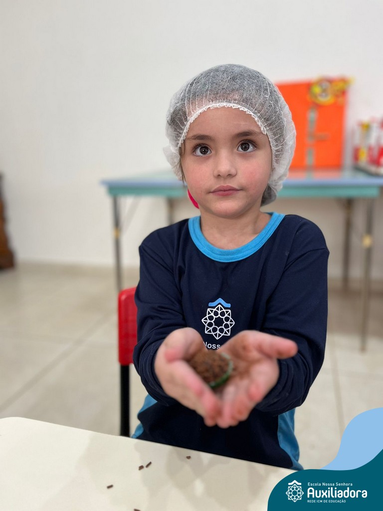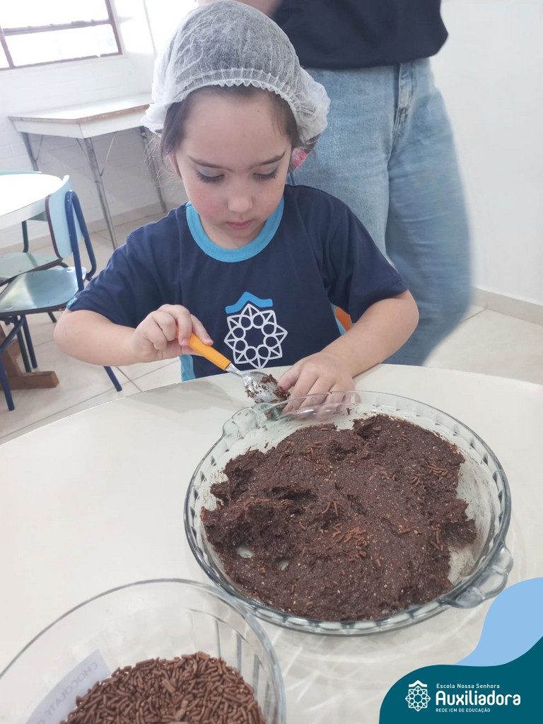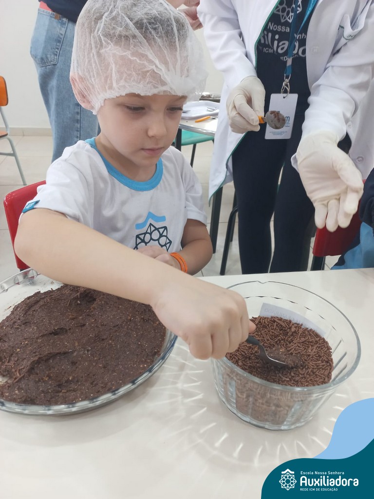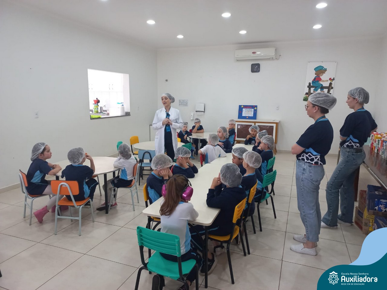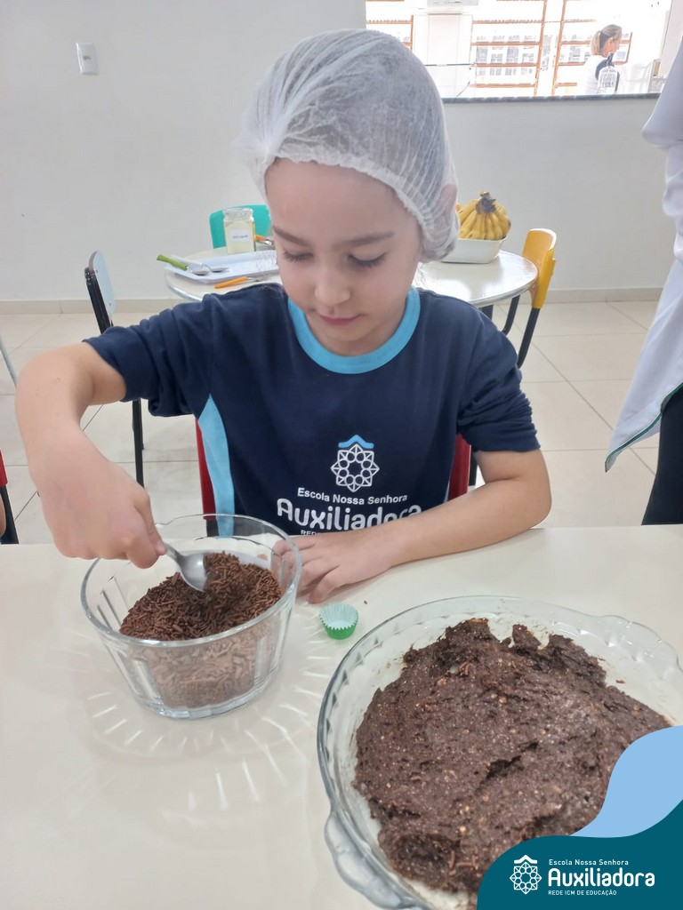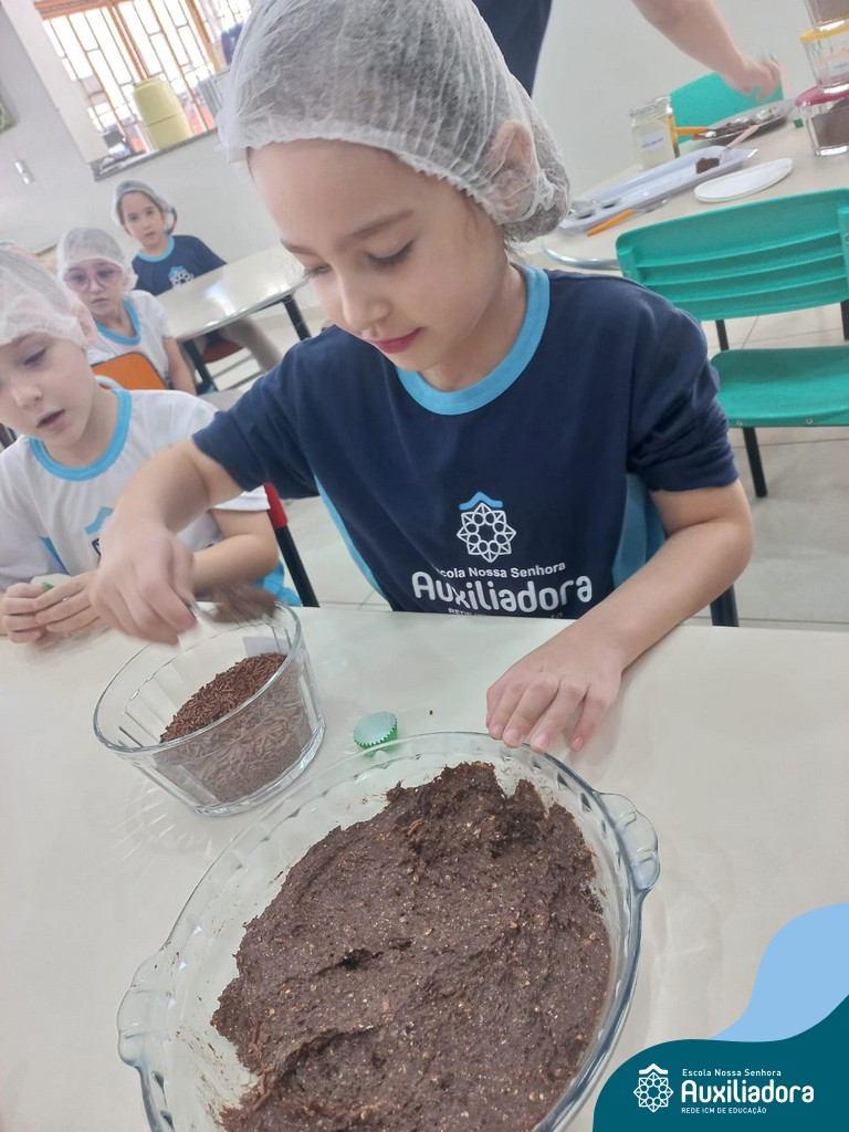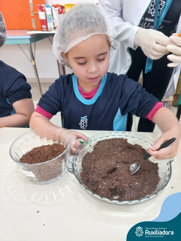 A nutricionista da escola, juntamente com as professoras do Pré 2, promoveram a atividade sobre alimentação saudável e envolveram as crianças no preparo da receita, aprendendo sobre os ingredientes e os benefícios nutricionais. Esse engajamento desperta o interesse por alimentos frescos e naturais, reduzindo a resistência a experimentar novos sabores e texturas. A nutricionista reforçou sobre hábitos alimentares saudáveis, e fomentou a importância de escolhas alimentares conscientes.
