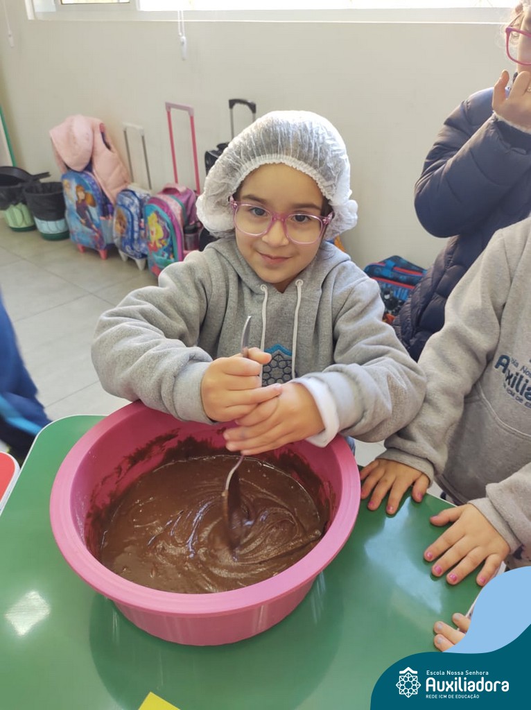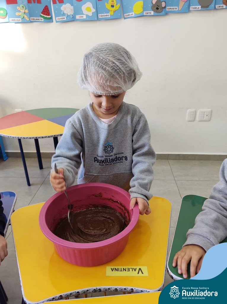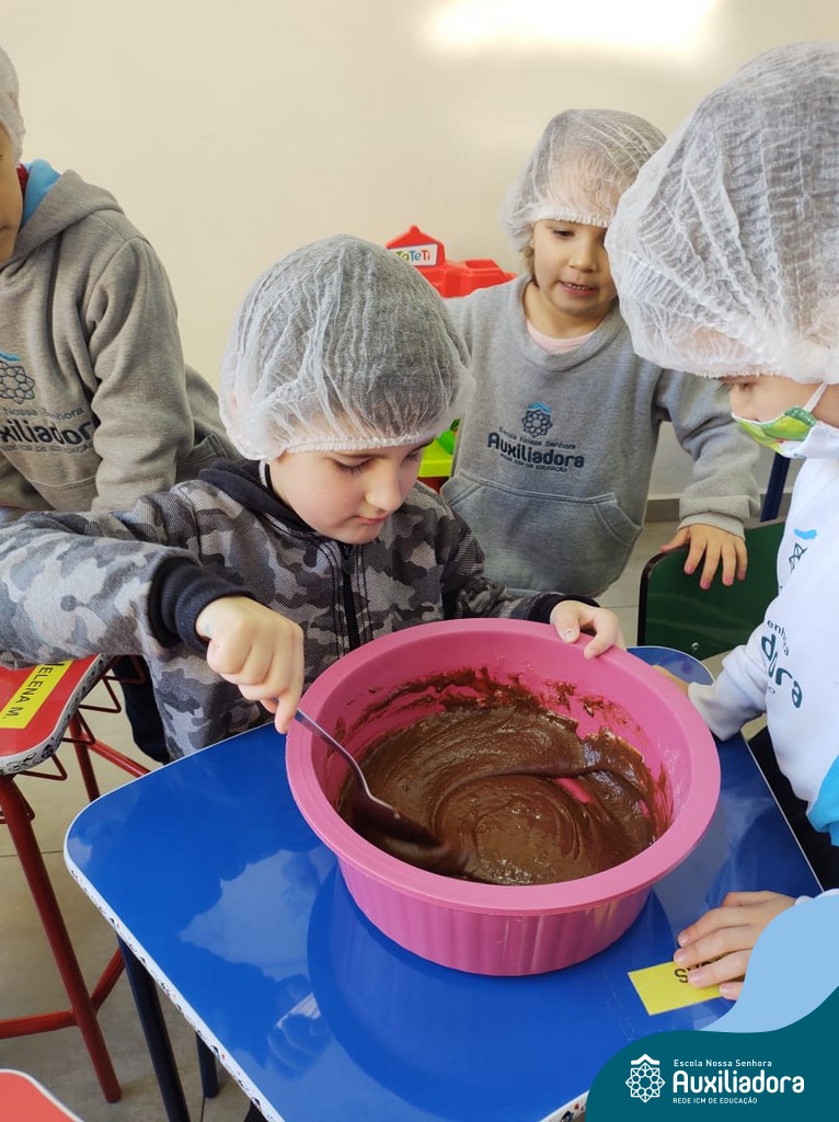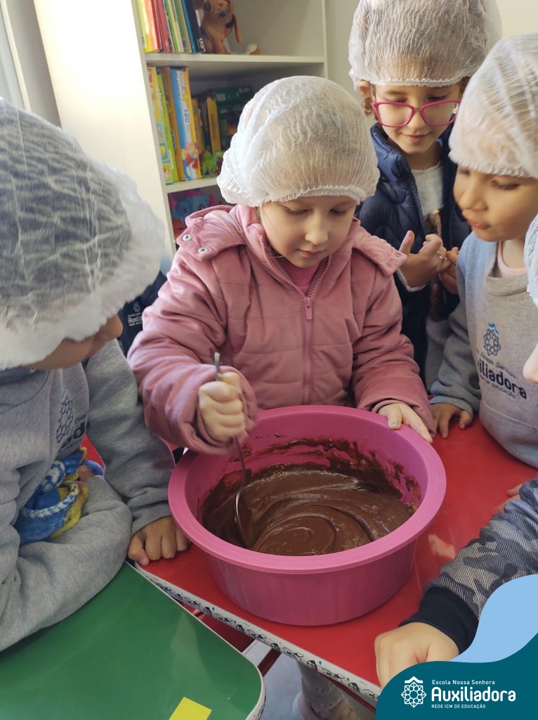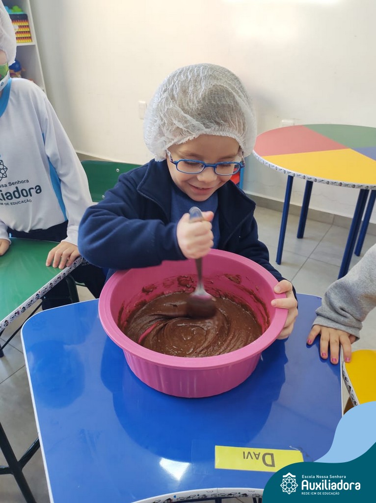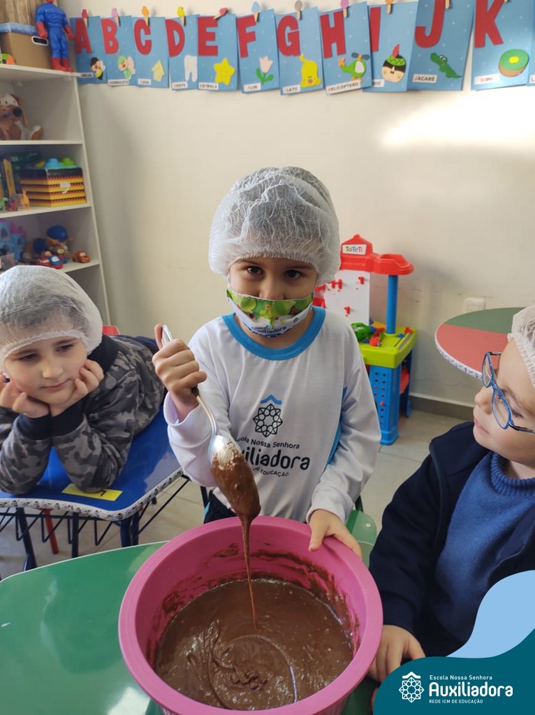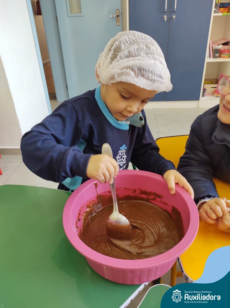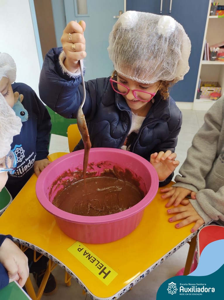 Após ouvir a história da “Chapeuzinho Vermelho”, a turma do Pré 1 colocou a mão na massa para preparar um delicioso cupcake de chocolate e presentear os avós que vieram para a escola. Os alunos participaram de todo o processo, aprenderam a receita, misturaram os ingredientes e enfeitaram com muito amor e carinho para adoçar a vida de seus avós.