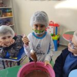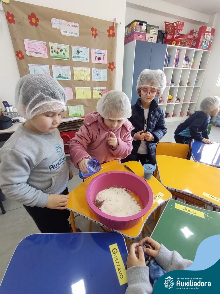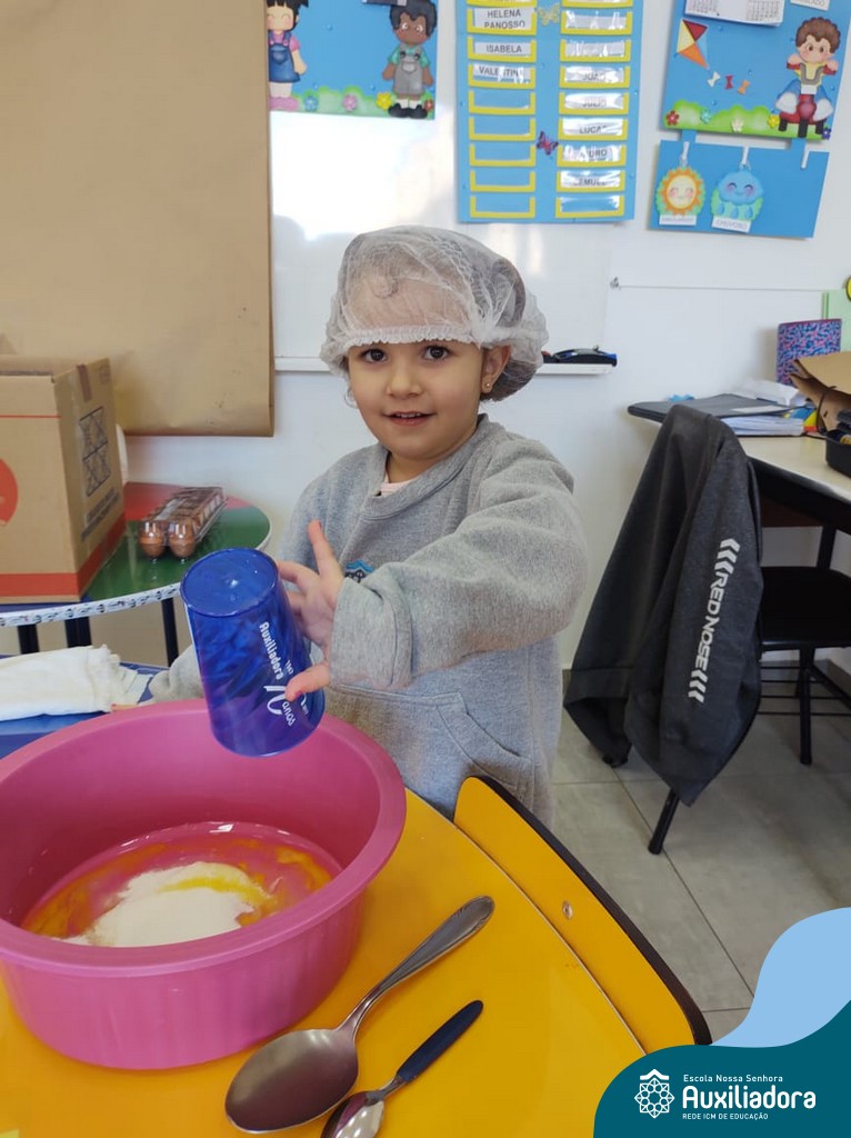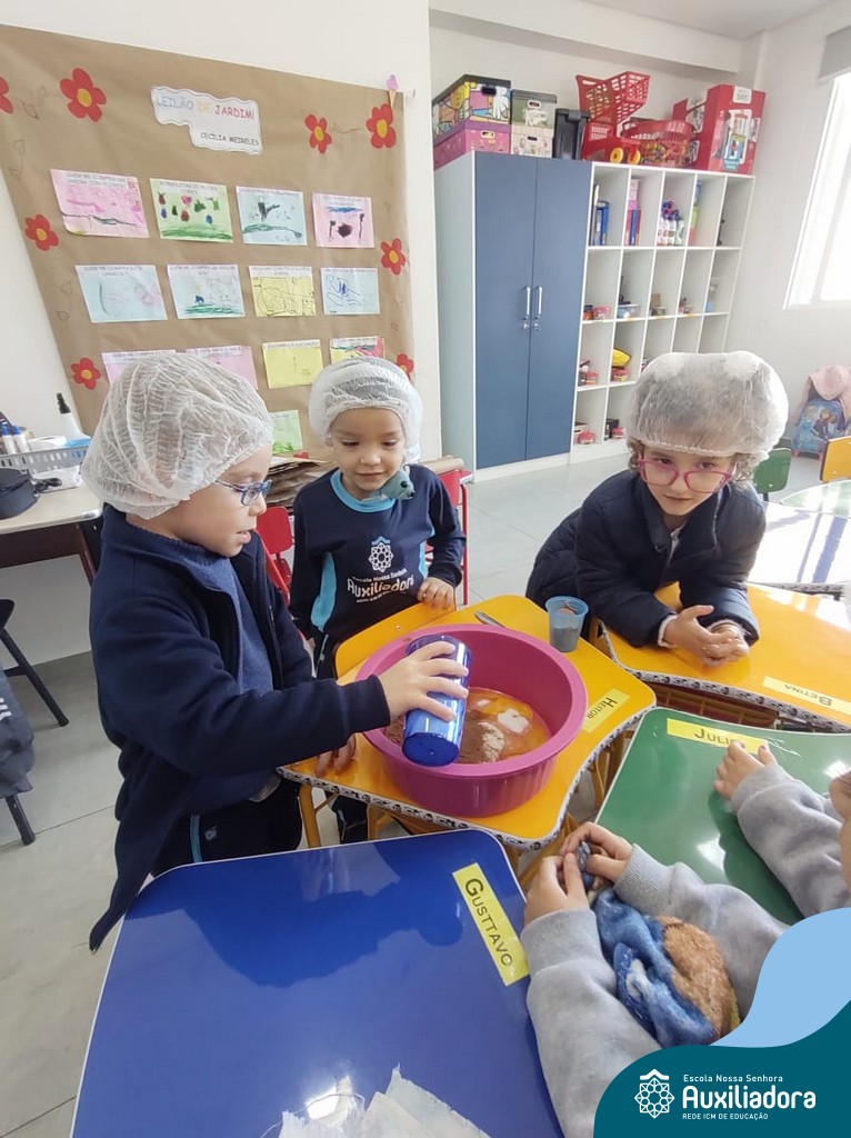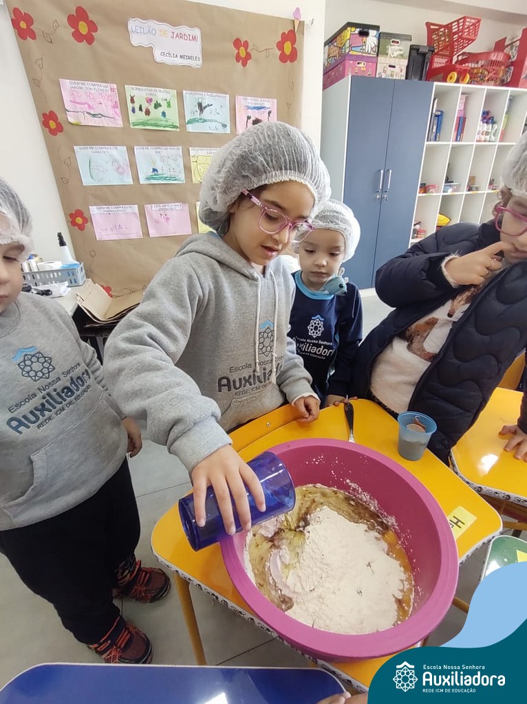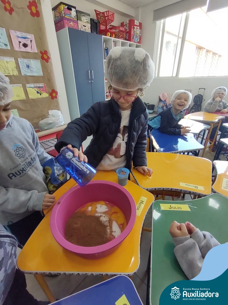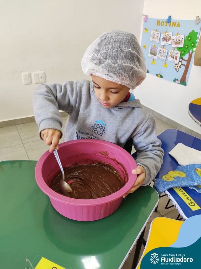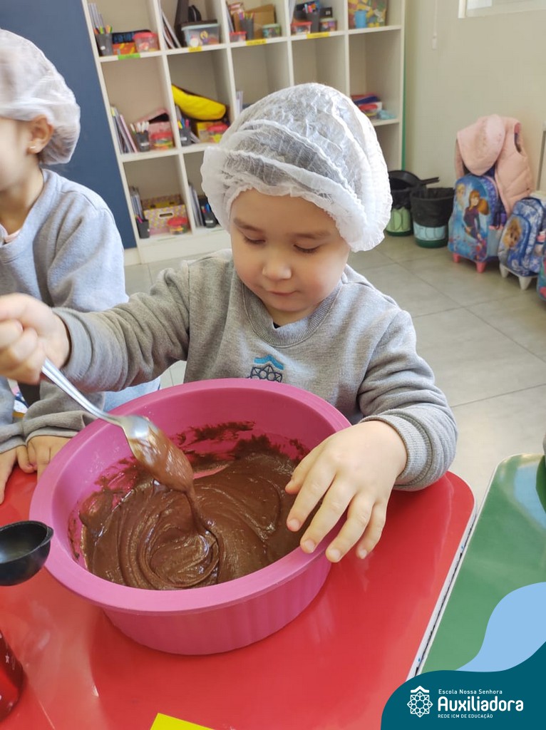 Após ouvir a história da “Chapeuzinho Vermelho”, a turma do Pré 1 colocou a mão na massa para preparar um delicioso cupcake de chocolate e presentear os avós que vieram para a escola. Os alunos participaram de todo o processo, aprenderam a receita, misturaram os ingredientes e enfeitaram com muito amor e carinho para adoçar a vida de seus avós.