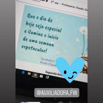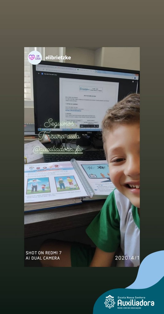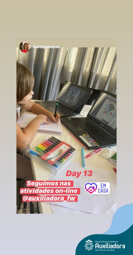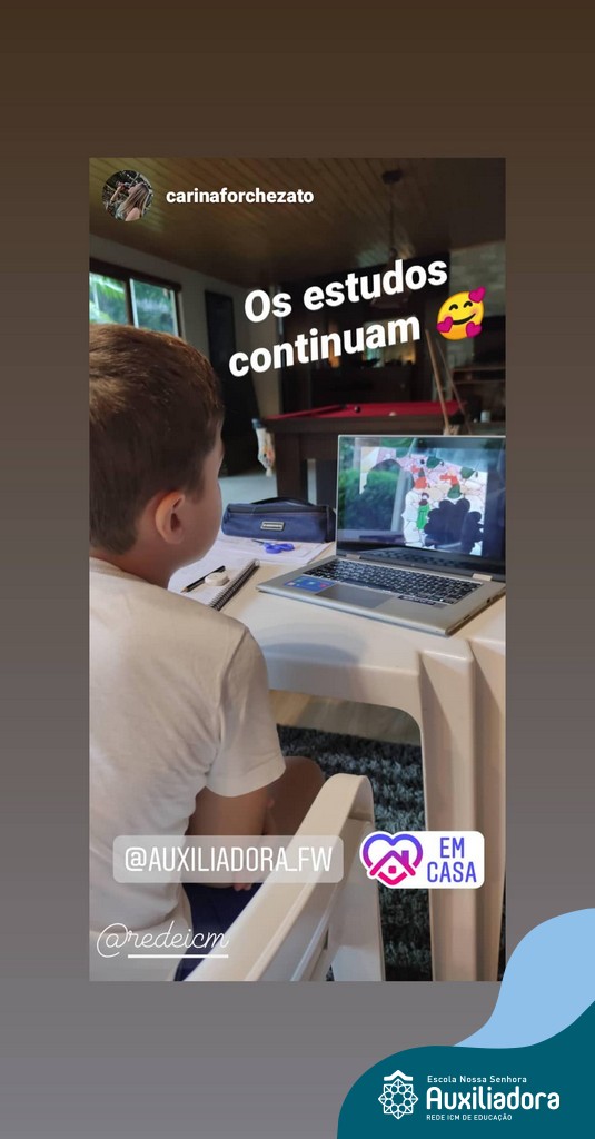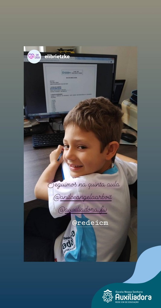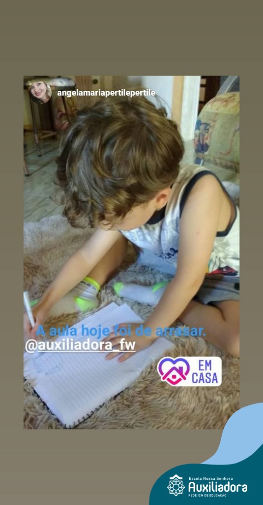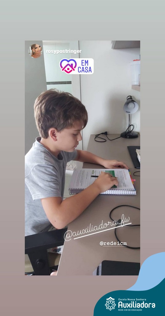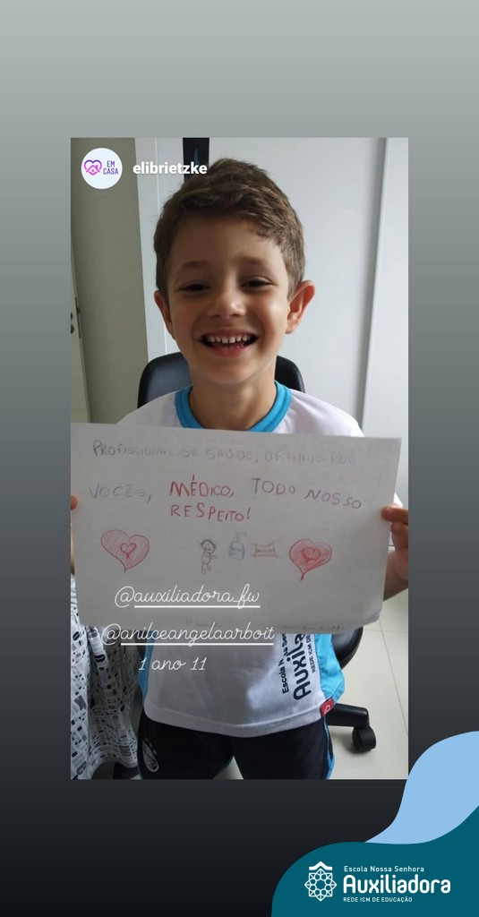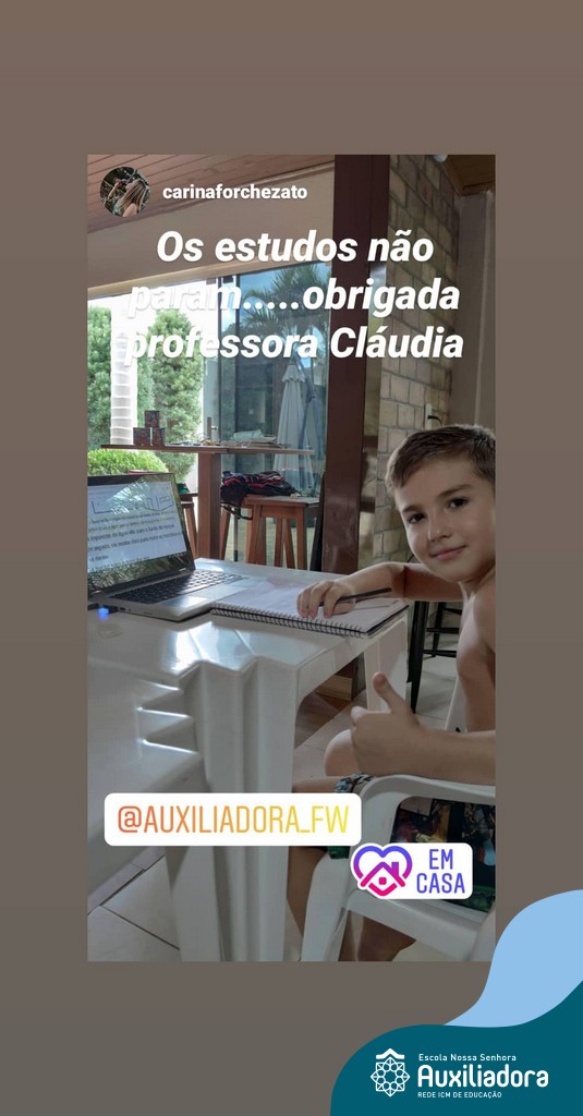 Gratidão às famílias pelo apoio e comprometimento ao acompanhar, fotografar, filmar, postar e marcar a escola as atividades domiciliares.