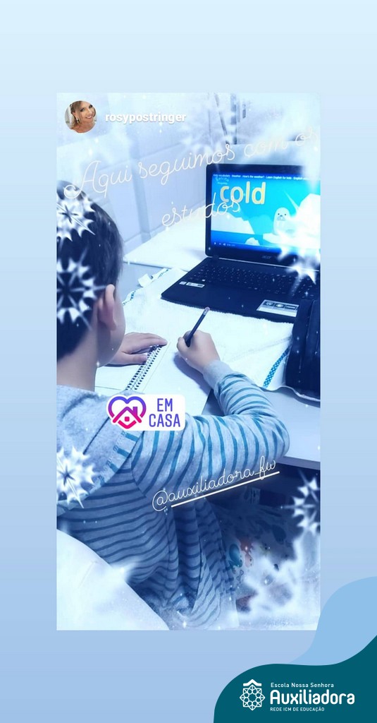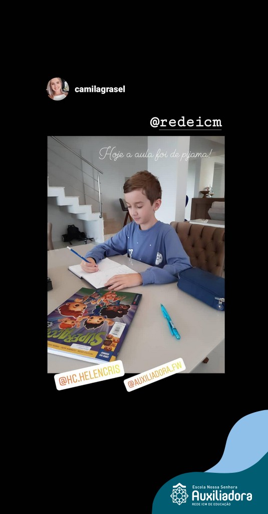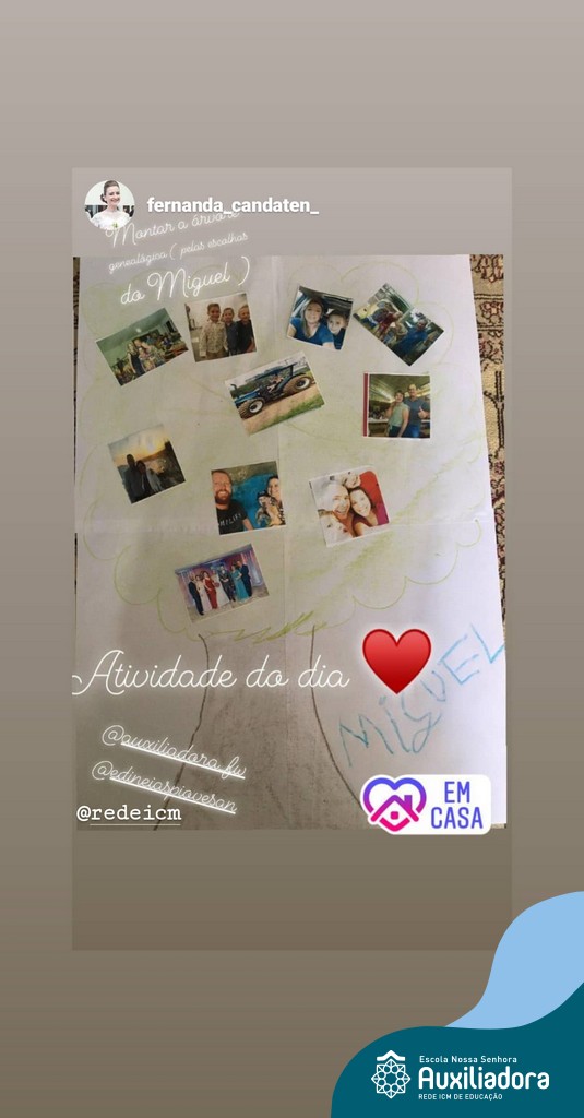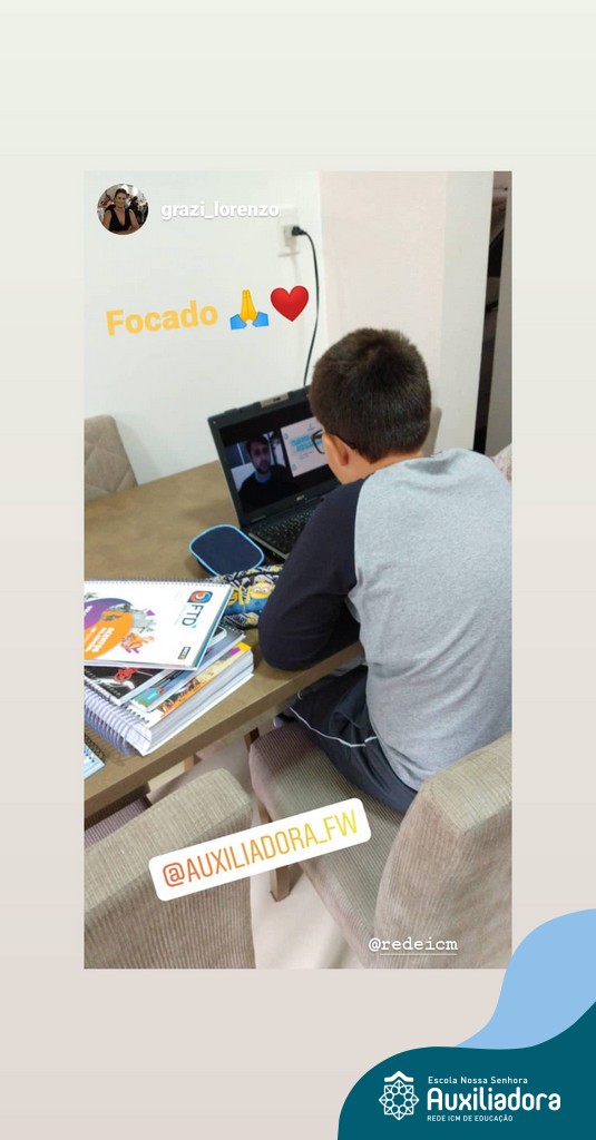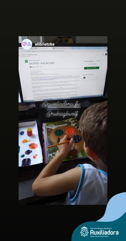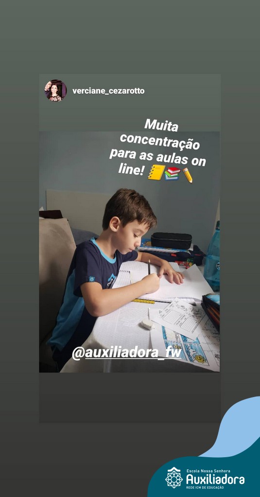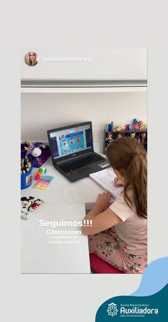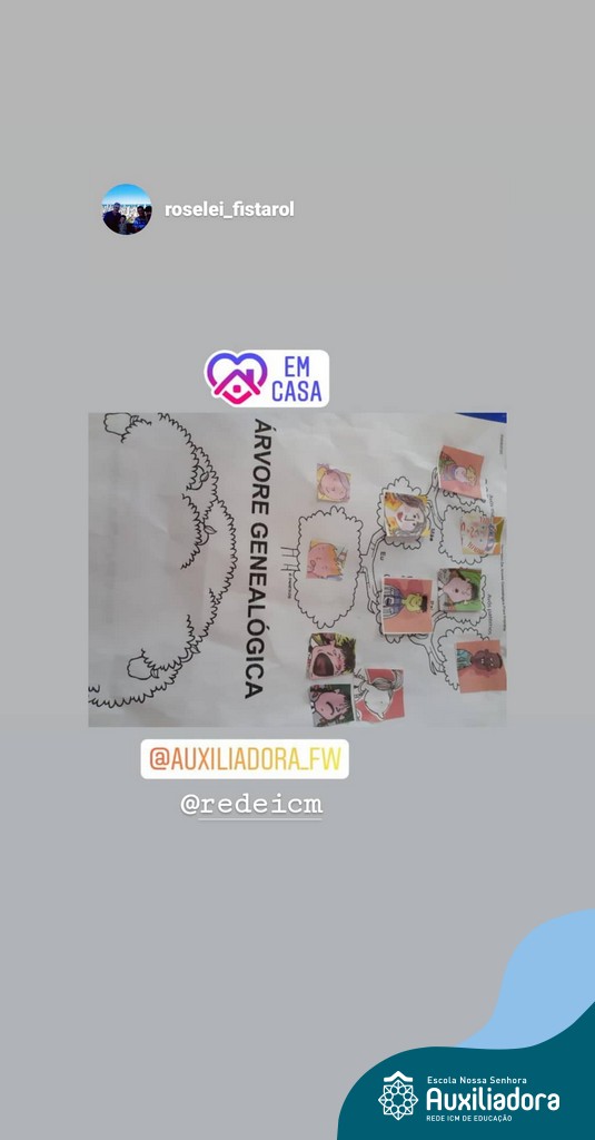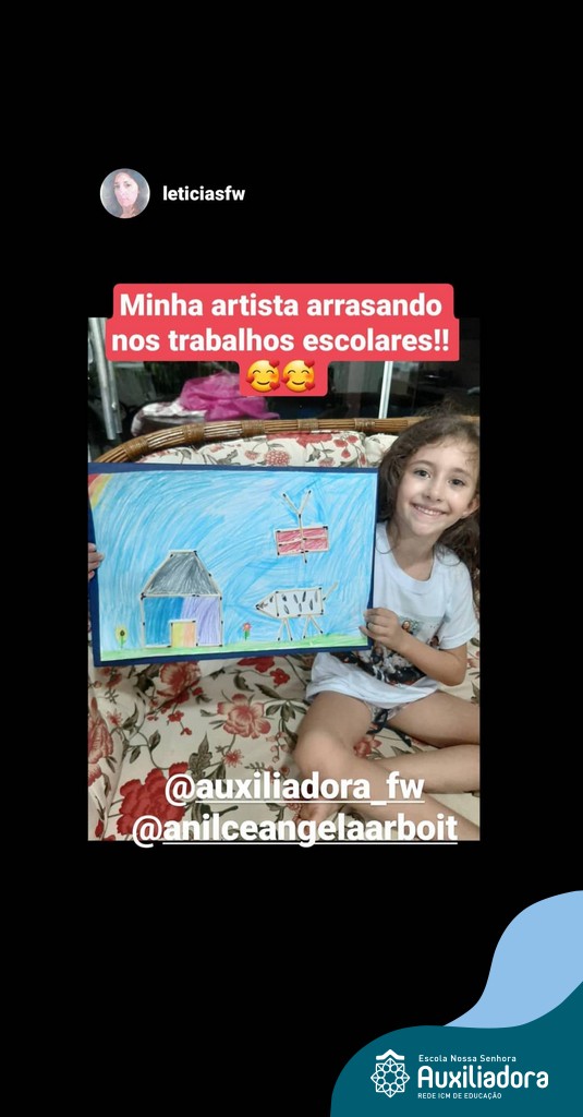 Gratidão às famílias pelo apoio e comprometimento ao acompanhar, fotografar, filmar, postar e marcar a escola as atividades domiciliares.