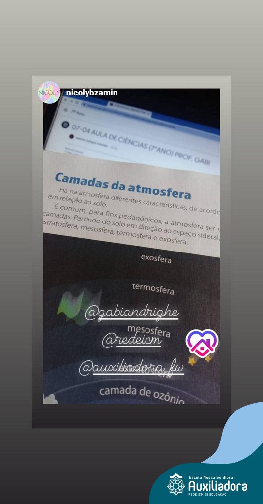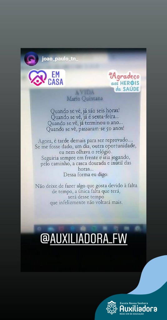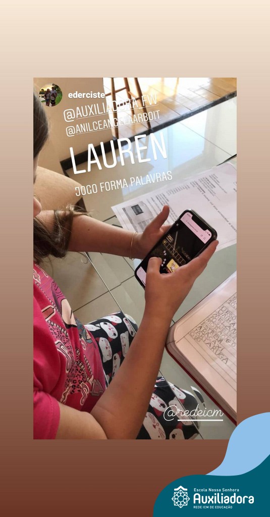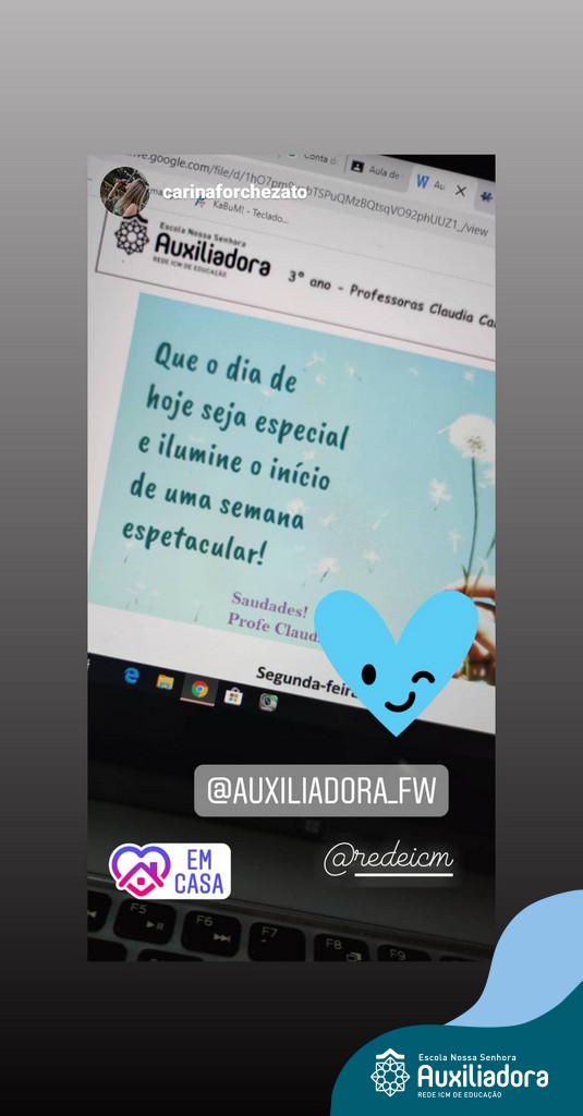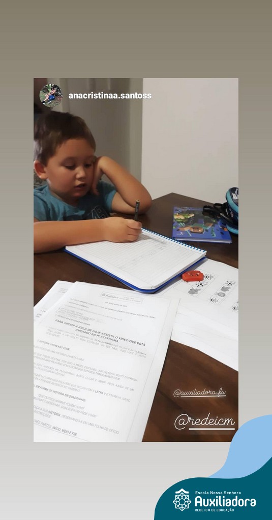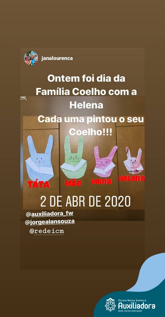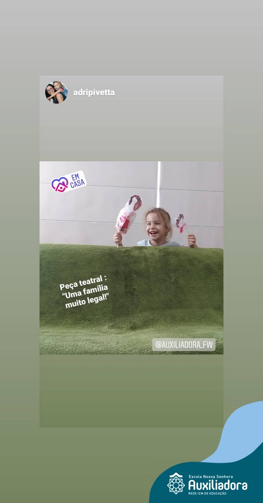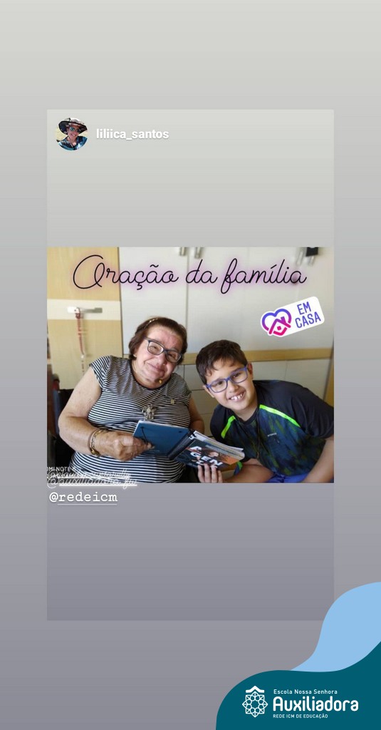 Gratidão às famílias pelo apoio e comprometimento ao acompanhar, fotografar, filmar, postar e marcar a escola as atividades domiciliares.