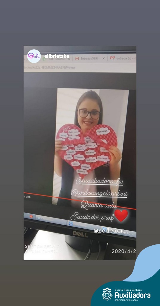 Os tempos não têm sido fáceis, mas com união, empatia, calma e discernimento estamos conseguindo dar conta. A escola de um lado e alunos e famílias do outro lado. Conectados através do sinal WI-FI, mas também pela vontade de aprender e por acreditarmos que ao nos distanciarmos estamos nos protegendo.