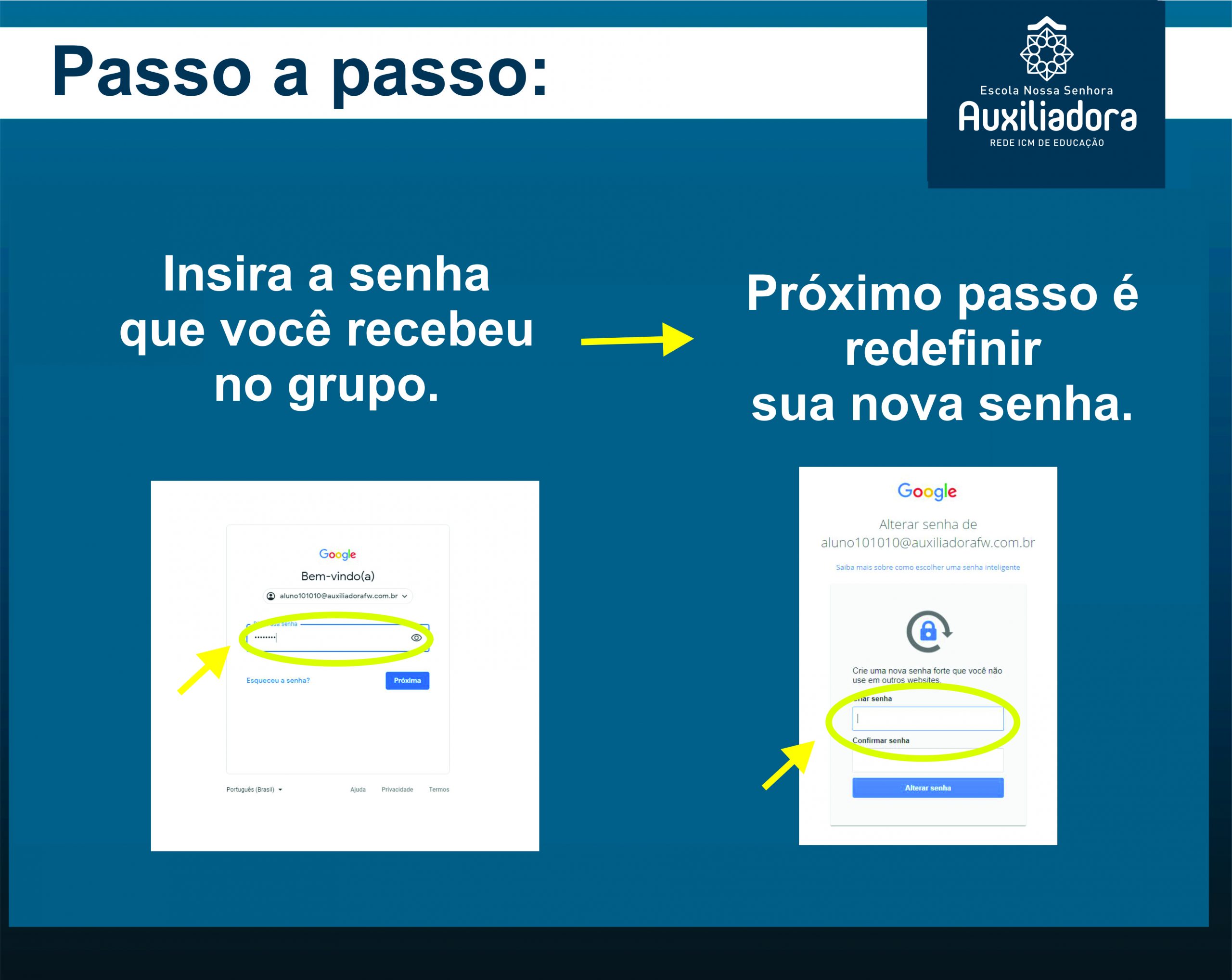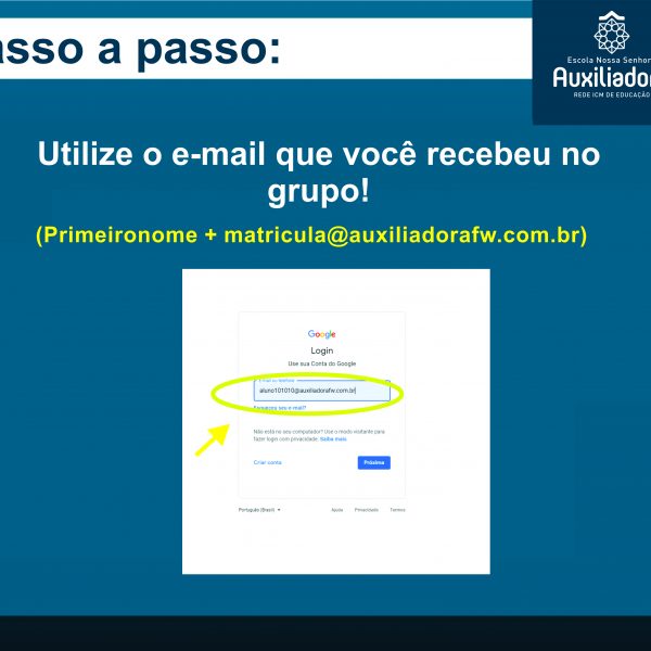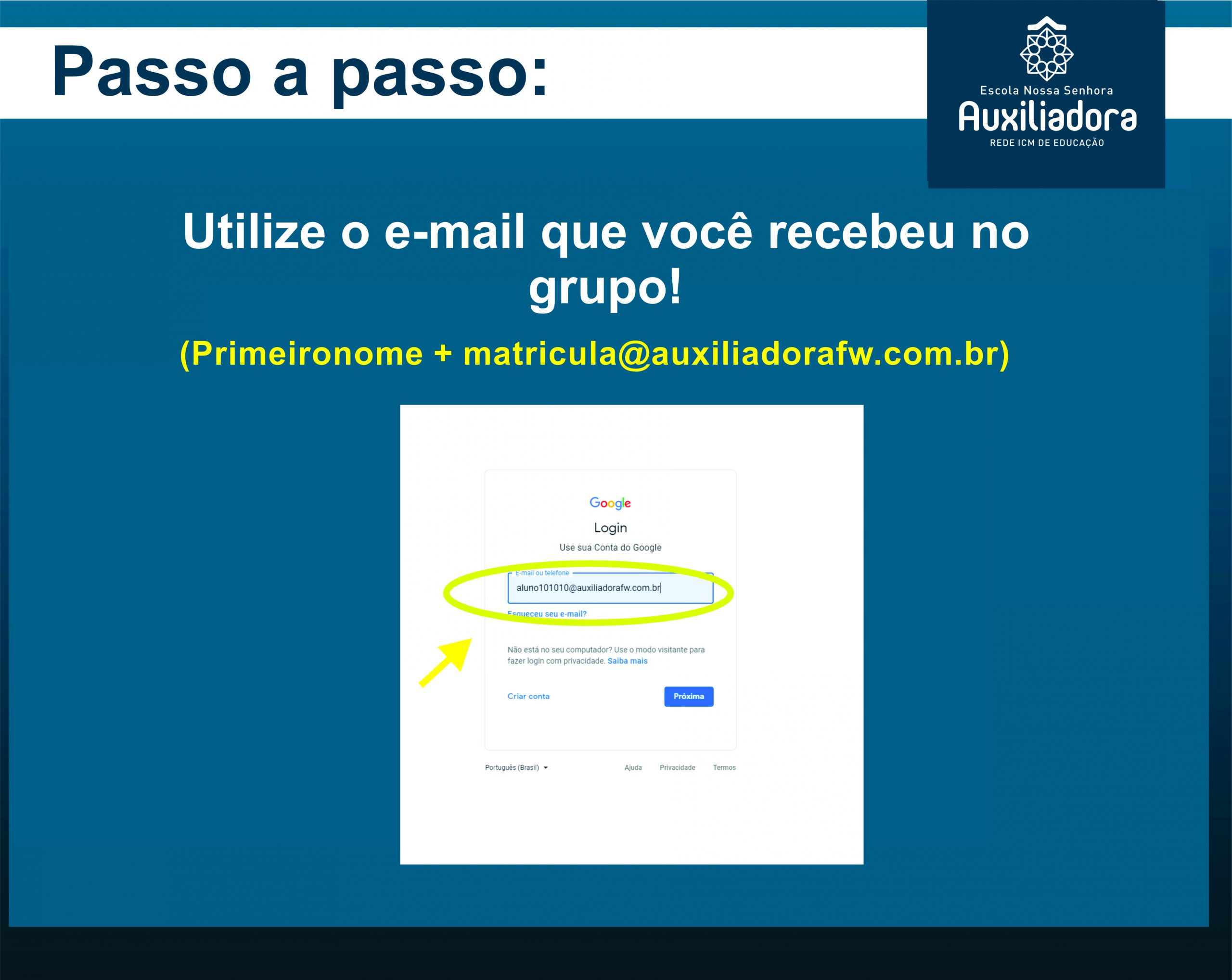Acesso: Os responsáveis receberão via WhatsApp da Escola o e-mail do seu filho. Após acessar o e-mail é preciso aceitar o convite para participar da turma.