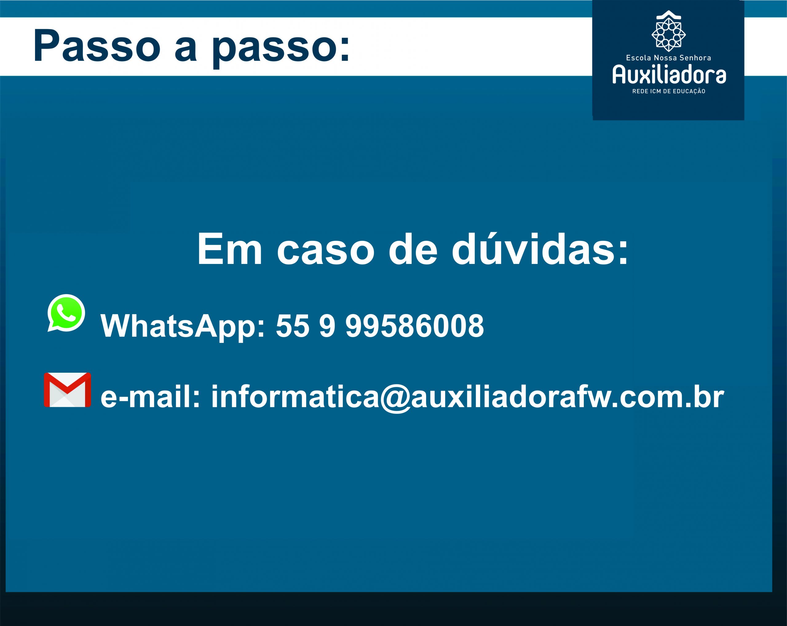 Solicitamos que fiquem atentos aos canais de comunicação oficiais da Escola (Facebook, Site e Instagram), pois no decorrer desta semana, os alunos e seus familiares receberão orientações e tutoriais de acesso à plataforma e as atividades de aula.