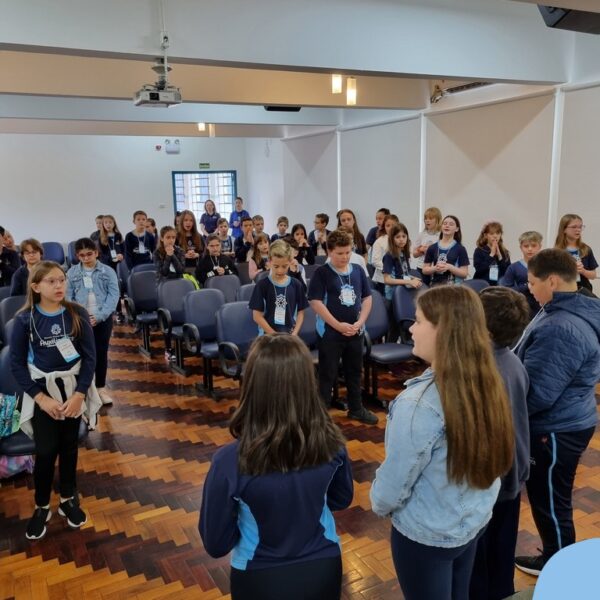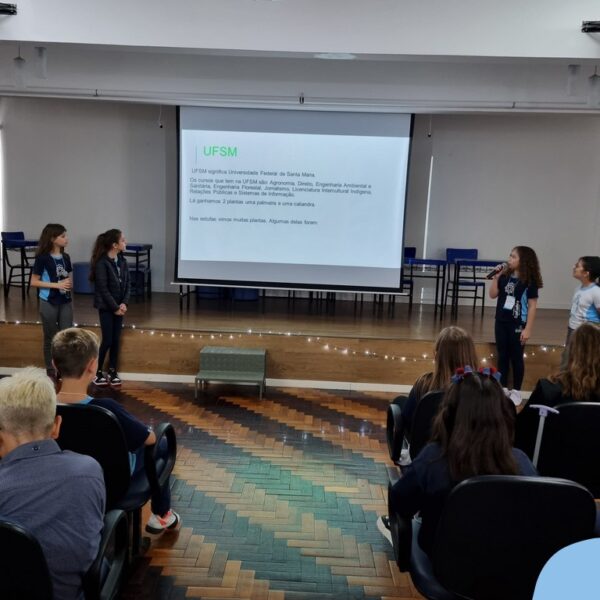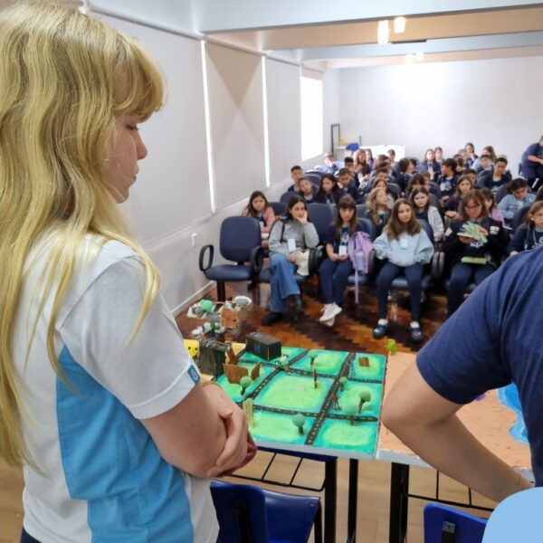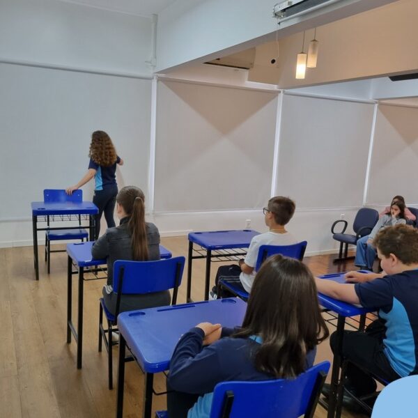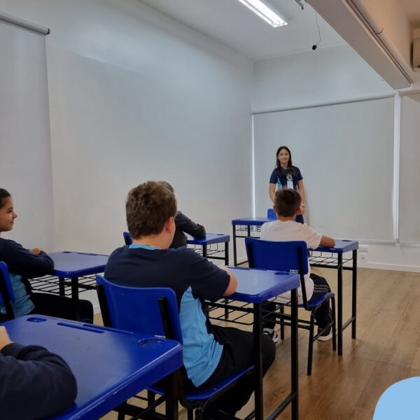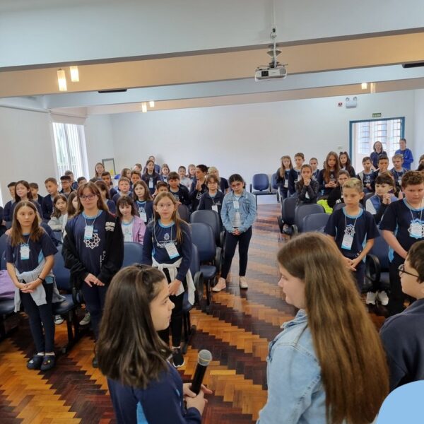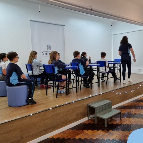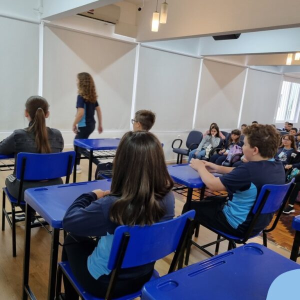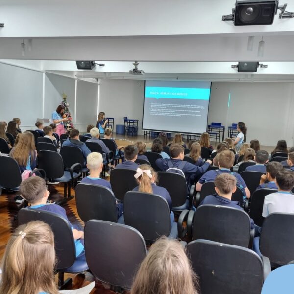 Realizada no auditório da escola, a atividade incluiu momentos de aprendizado dinâmico, onde os estudantes mais velhos compartilharam seus conhecimentos de forma educativa e divertida.