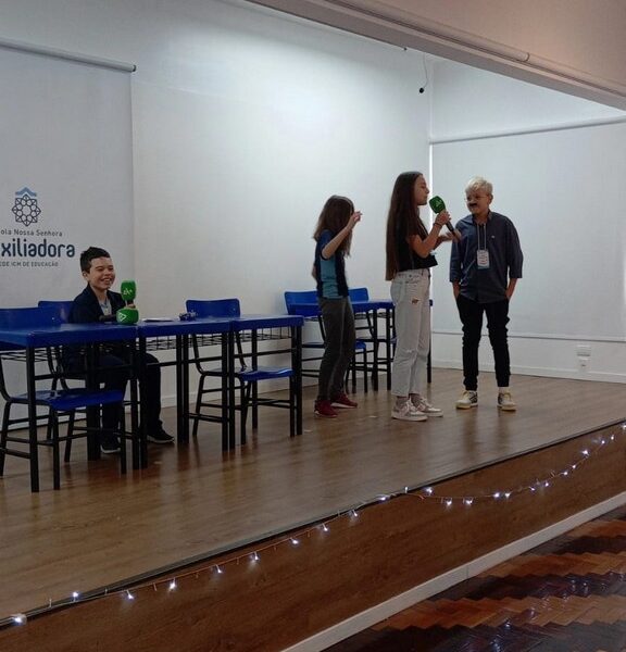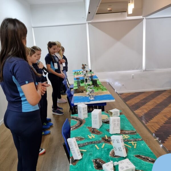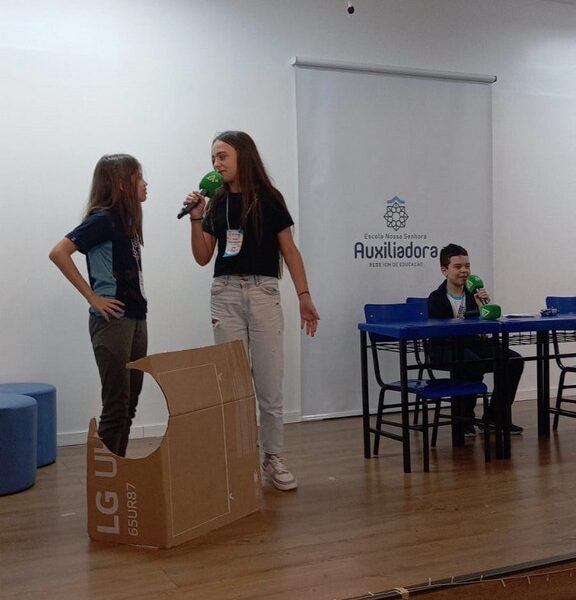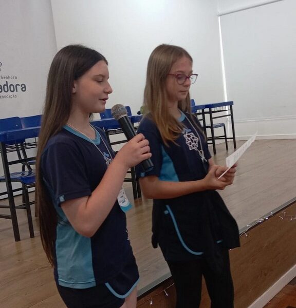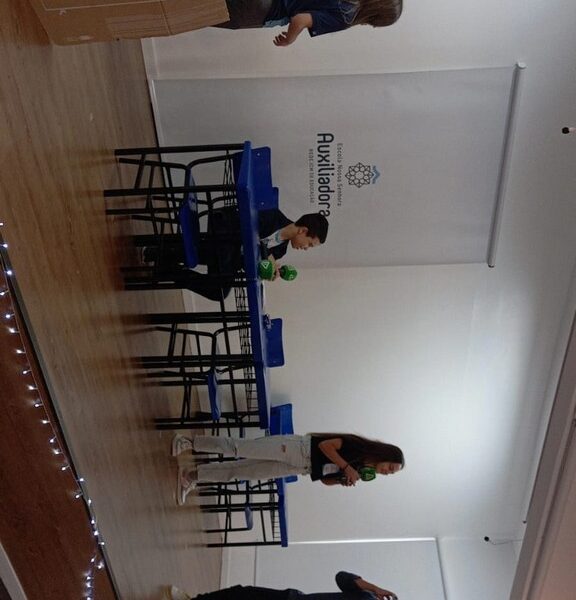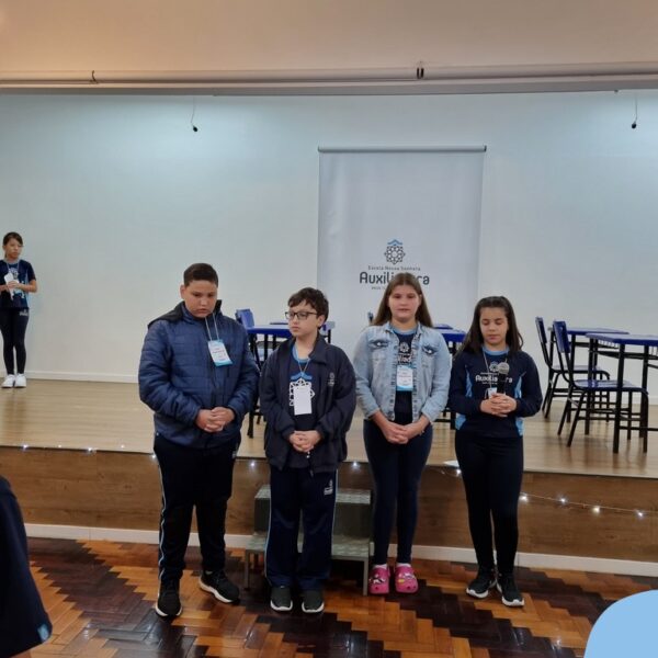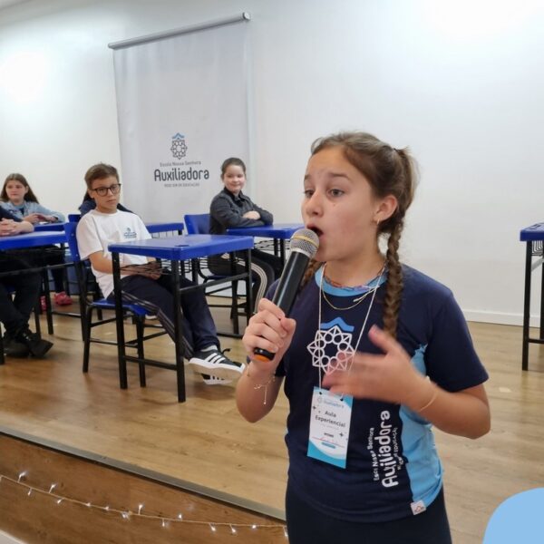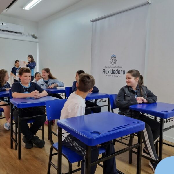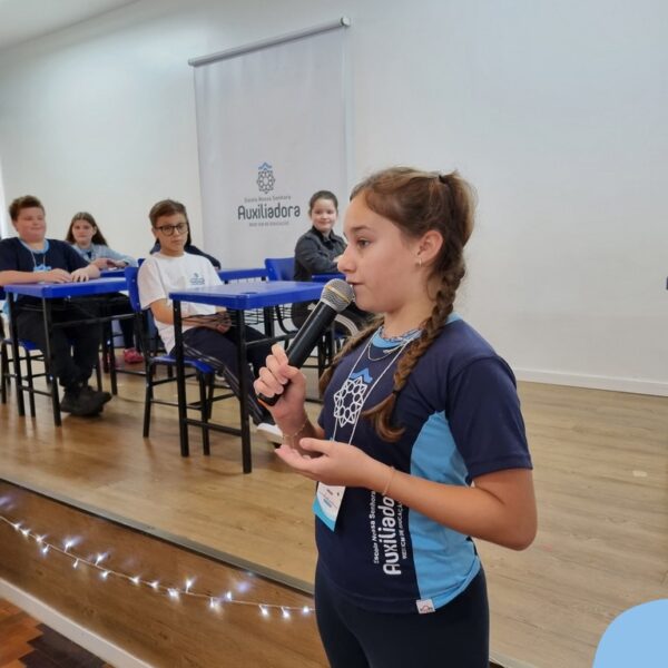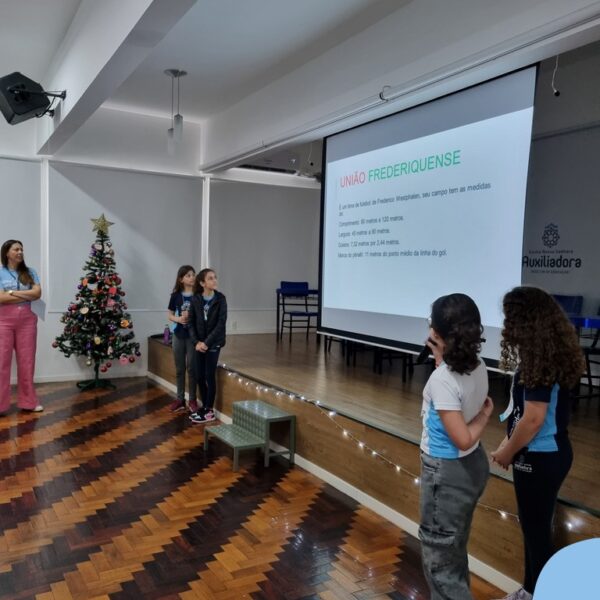 Realizada no auditório da escola, a atividade incluiu momentos de aprendizado dinâmico, onde os estudantes mais velhos compartilharam seus conhecimentos de forma educativa e divertida.