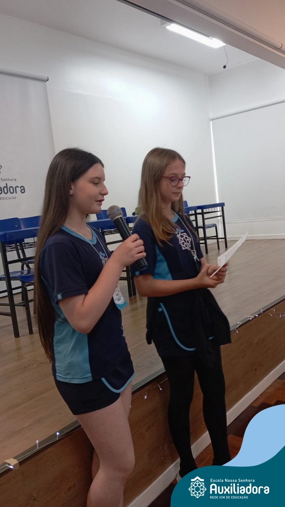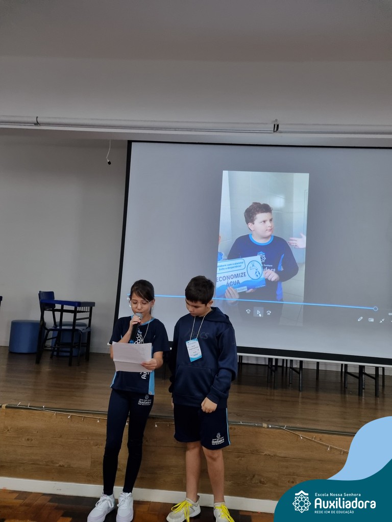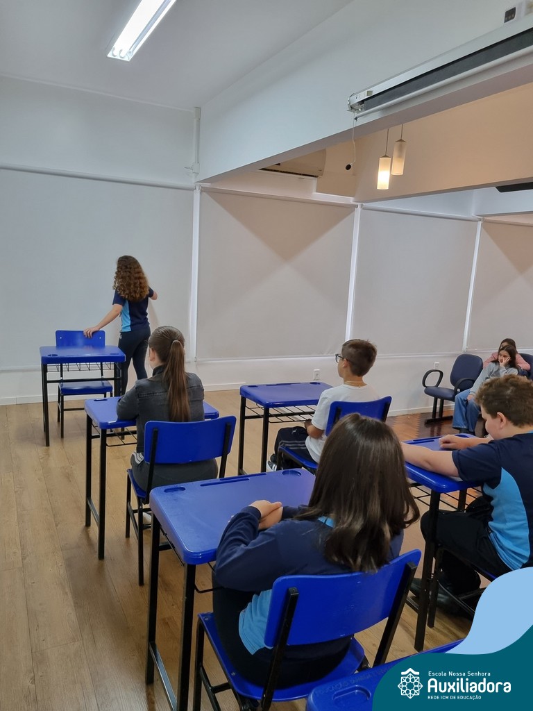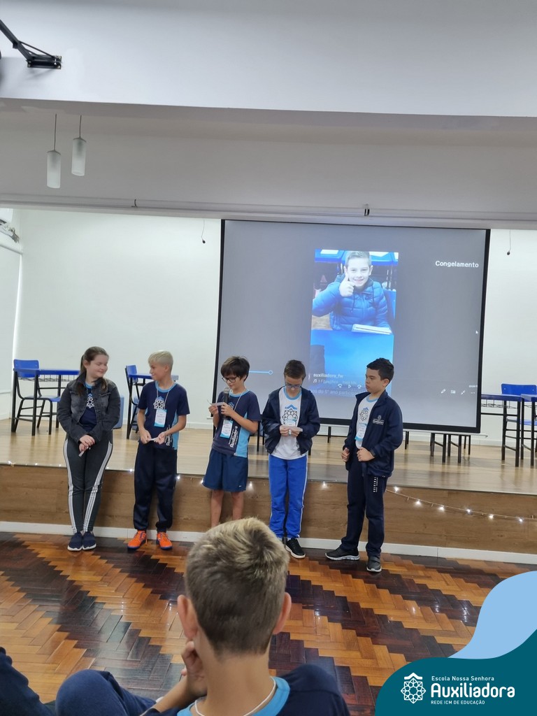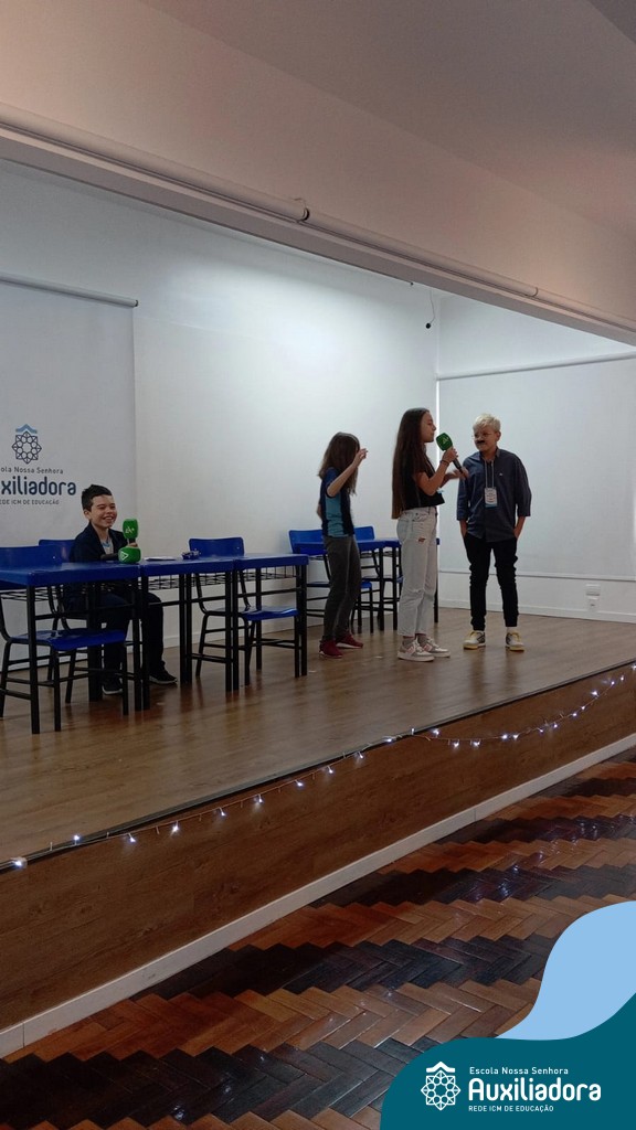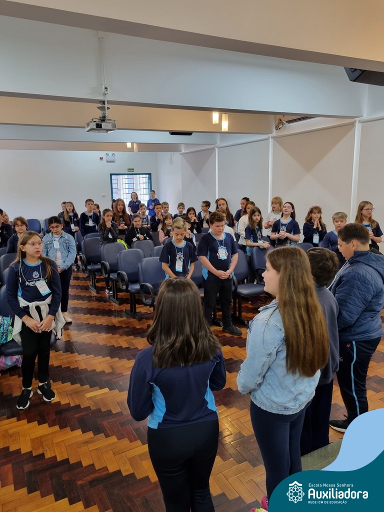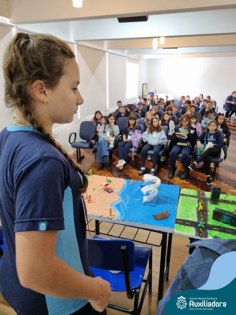 Realizada no auditório da escola, a atividade incluiu momentos de aprendizado dinâmico, onde os estudantes mais velhos compartilharam seus conhecimentos de forma educativa e divertida.