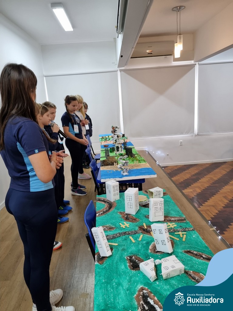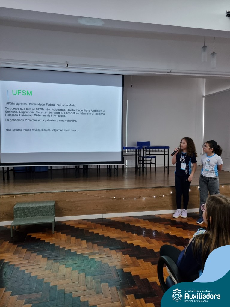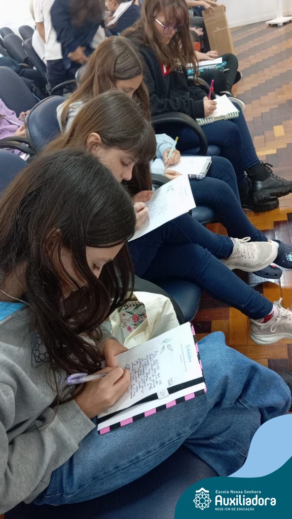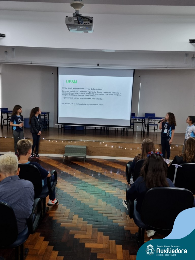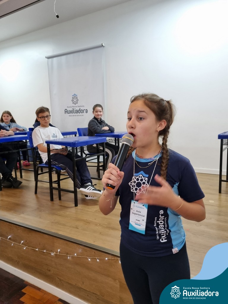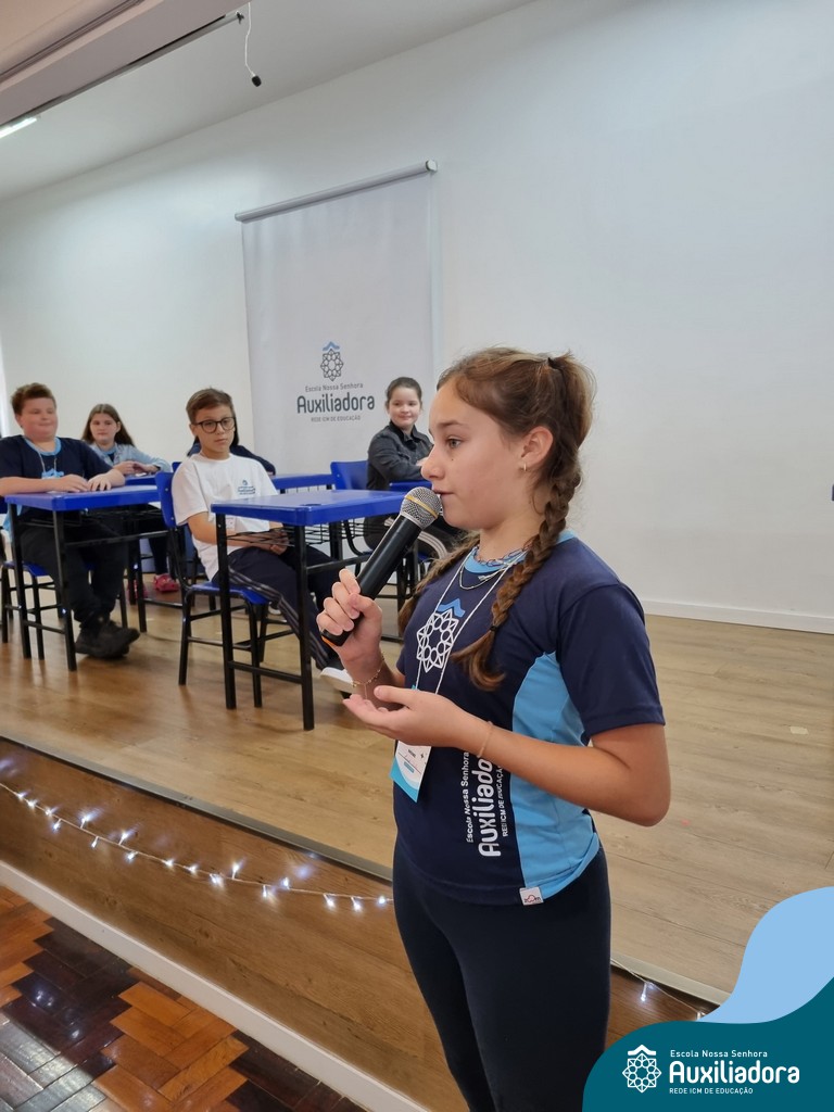 Realizada no auditório da escola, a atividade incluiu momentos de aprendizado dinâmico, onde os estudantes mais velhos compartilharam seus conhecimentos de forma educativa e divertida.